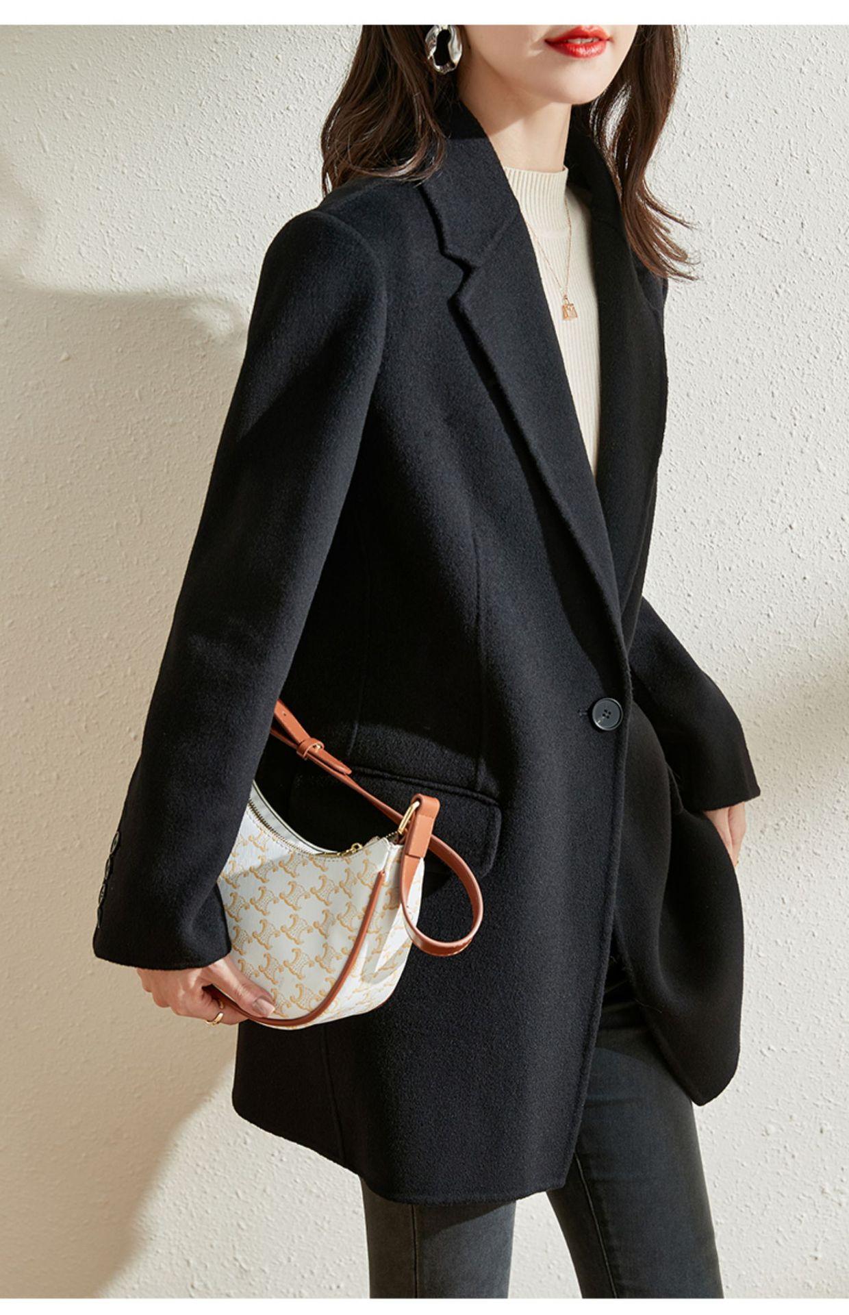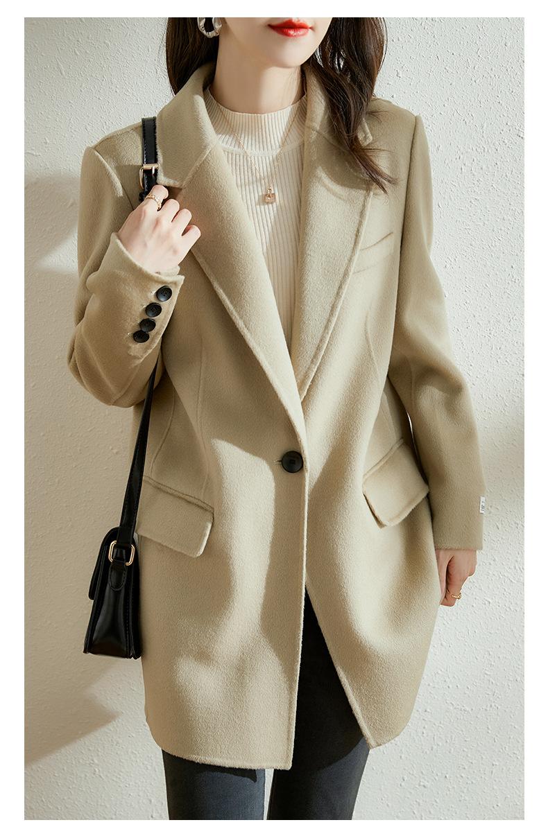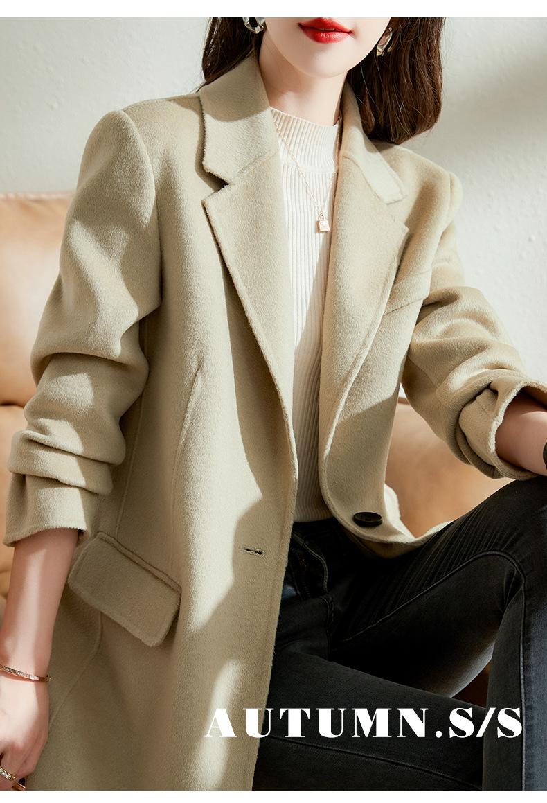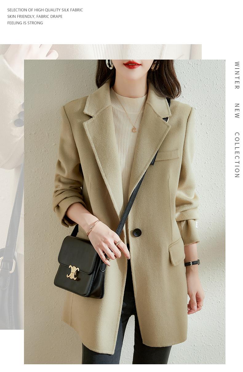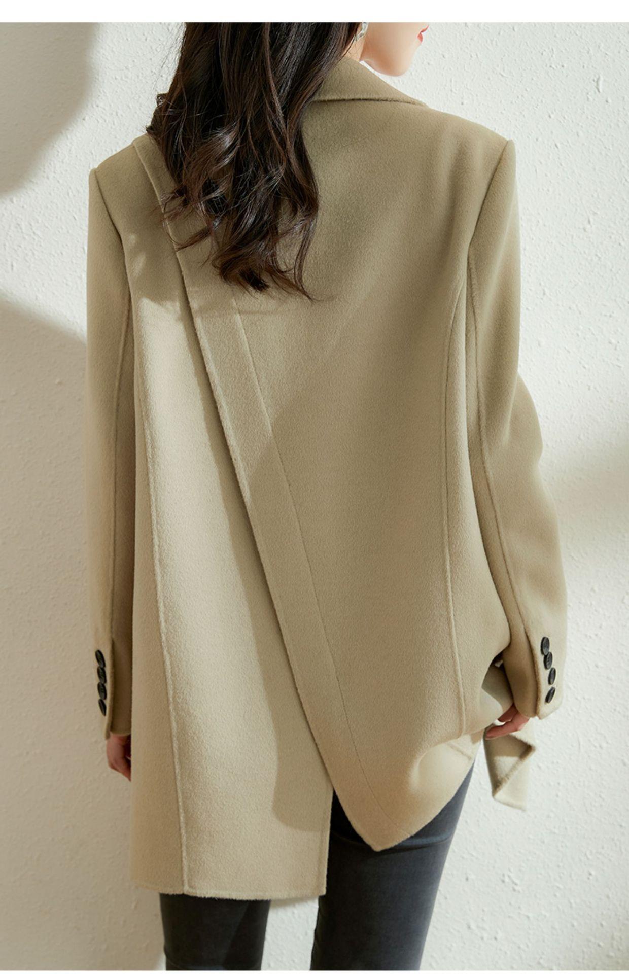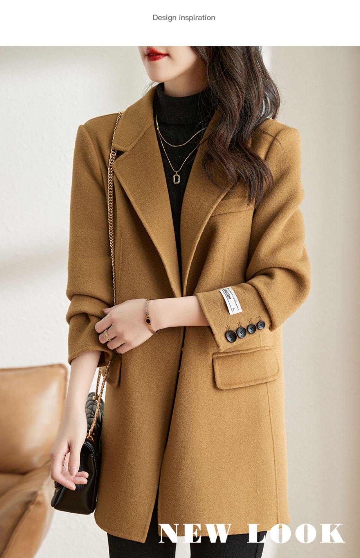 Ropa Exterior de Lana de Alta Gama para Mujer Otoño e Invierno 2024 Nuevo Estilo Coreano Largo Medio Diseño de Espalda de Traje Ropa Exterior de Lana Elegante