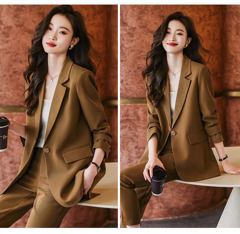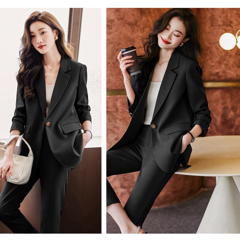 2023 primavera nuevo estilo coreano ropa de negocios traje de pantalón para mujer corte ajustado traje pequeño ropa de trabajo para empleada traje de manga larga