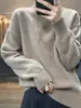 Suéter de cuello alto medio de otoño e invierno para mujer, suéter de punto de primera línea de color sólido retorcido, suéter de manga larga que combina con todo, moda