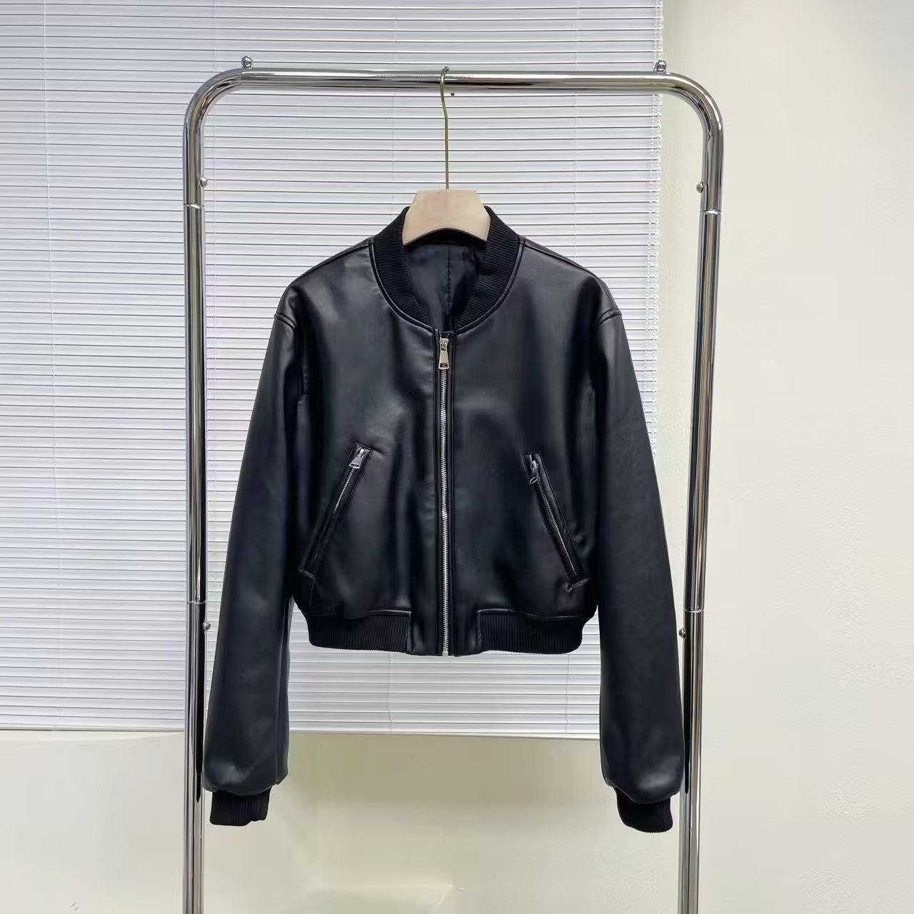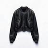 Chaqueta bomber de piel sintética de estilo urbano europeo y americano para mujer, otoño 2023, W027 9291