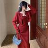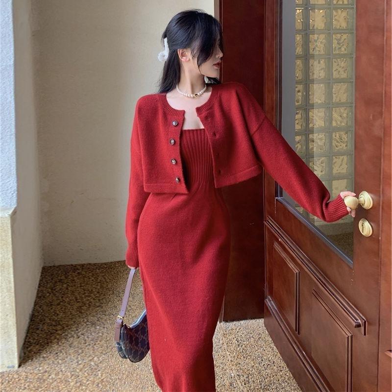2024 Nuevo Cárdigan de Otoño Suéter Moda Elegante Estilo Occidental Traje de Vestido de Punto Conjunto de Dos Piezas para Mujer