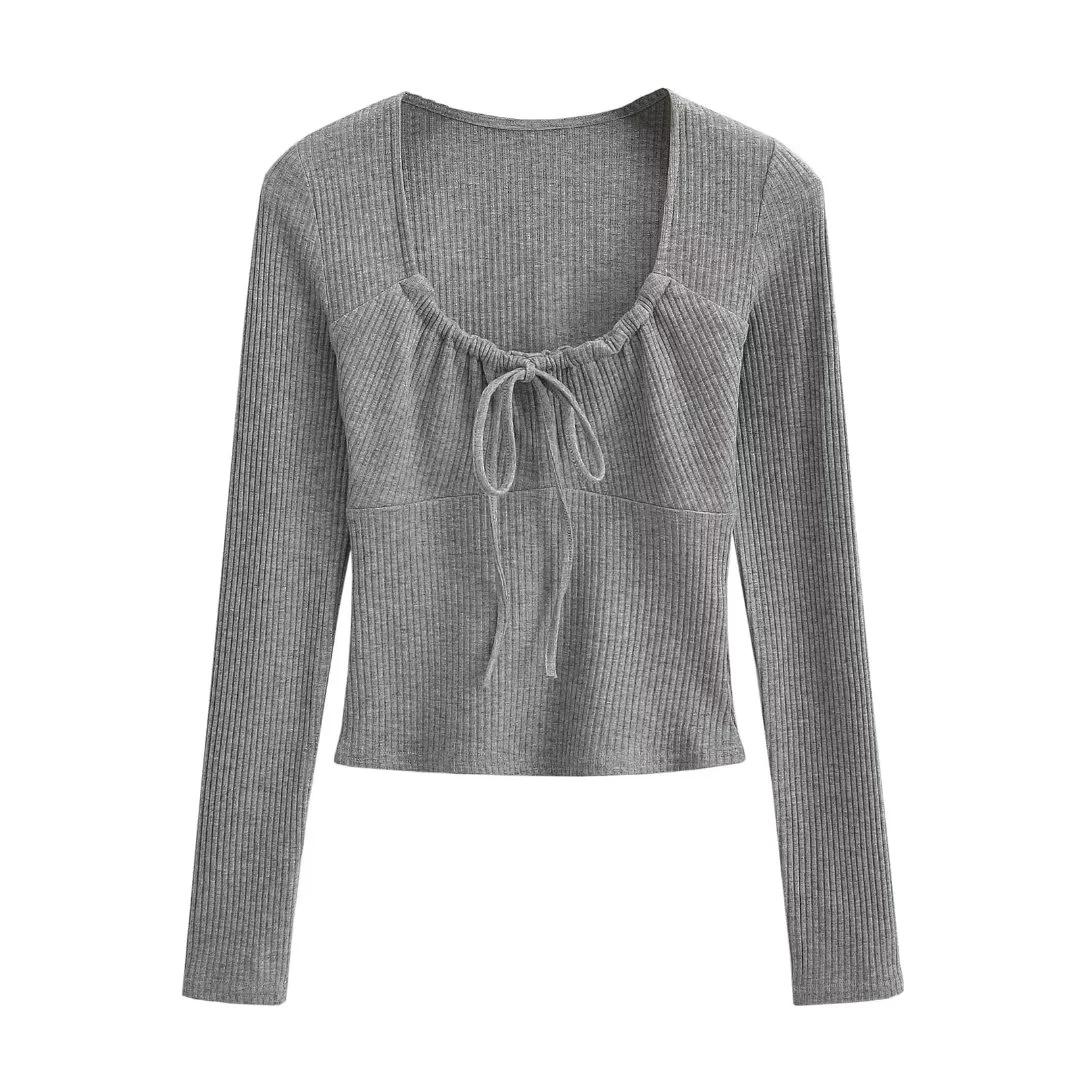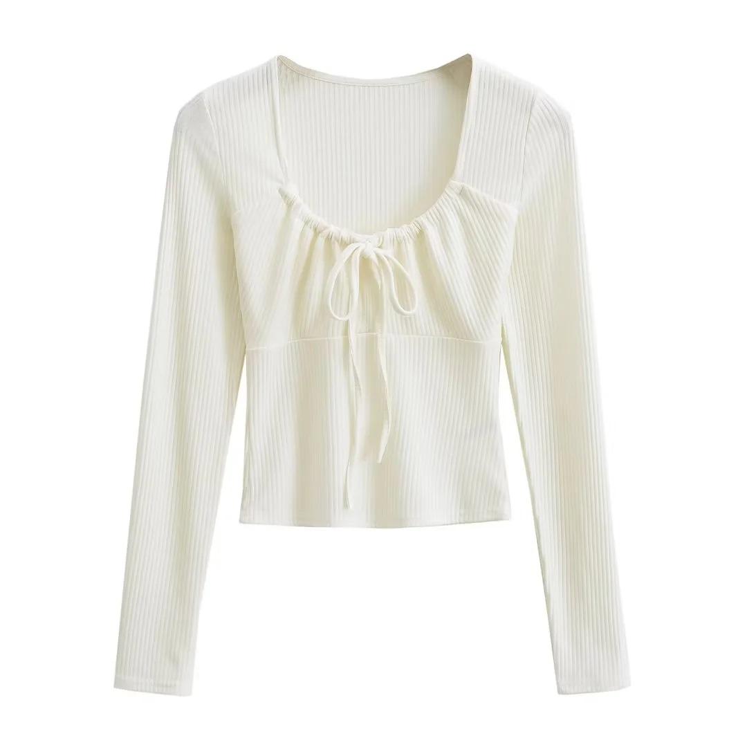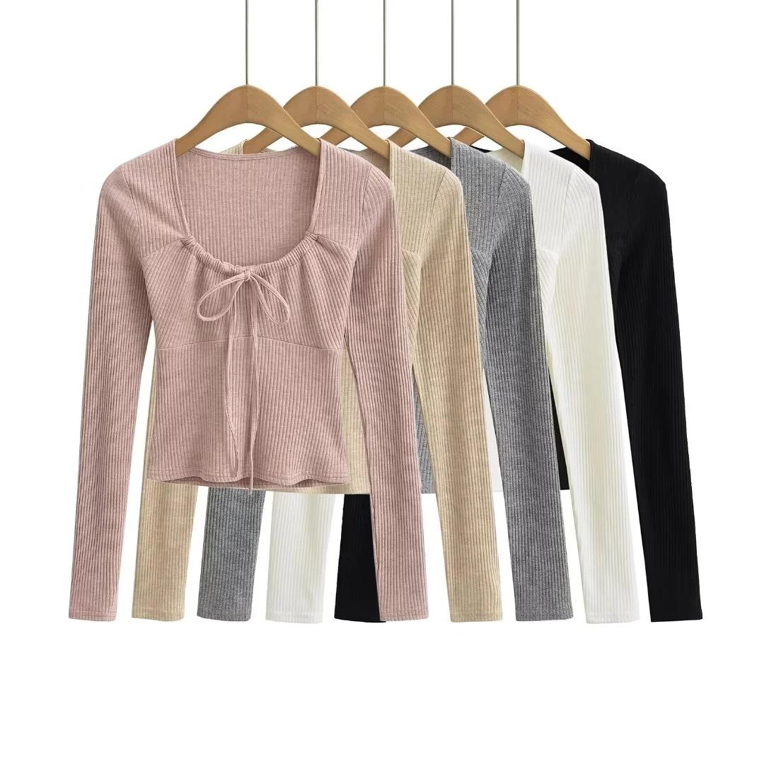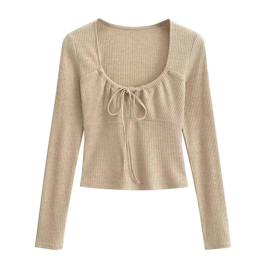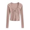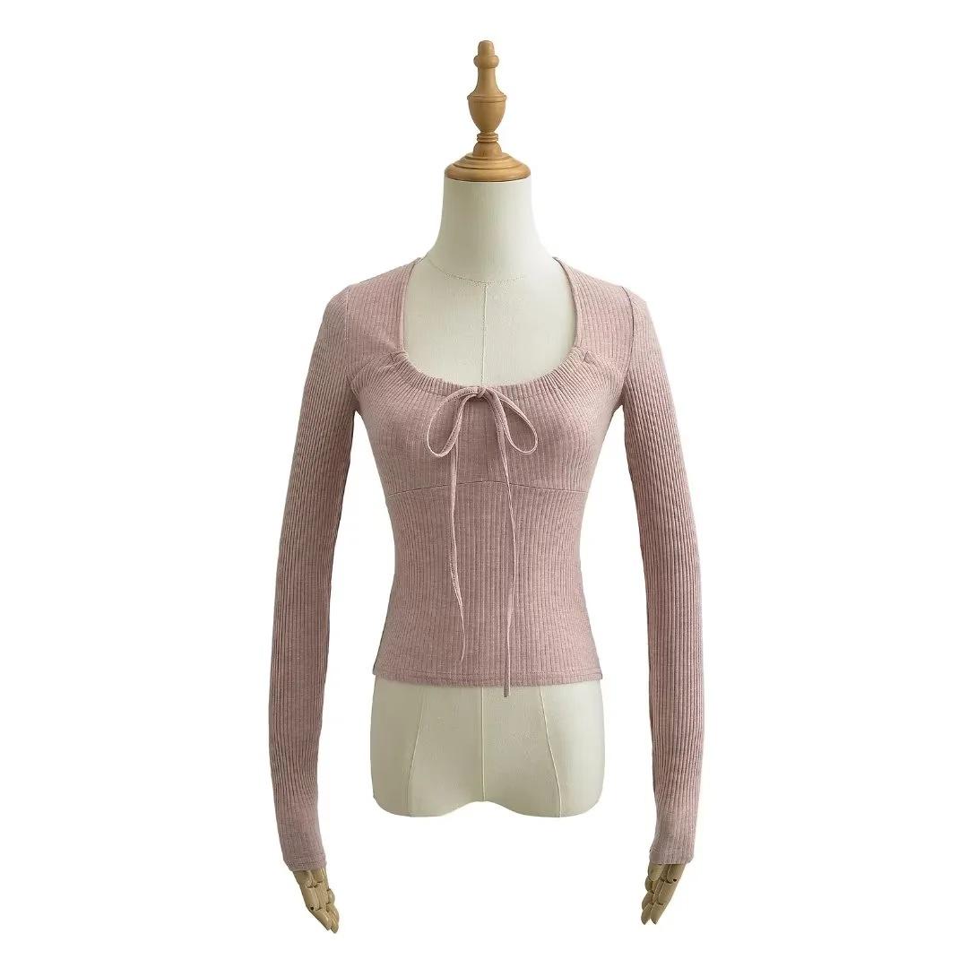 Chica sexy estilo deseo puro cuello cuadrado con cordones camiseta básica de tirantes manga larga camiseta para mujer otoño ajuste ceñido adelgazante top de temperamento interior