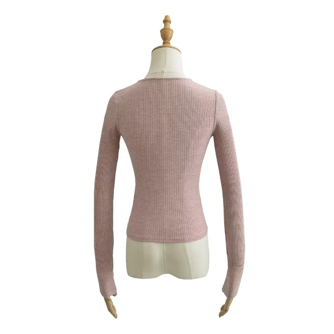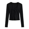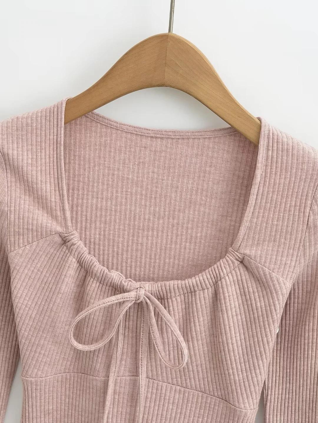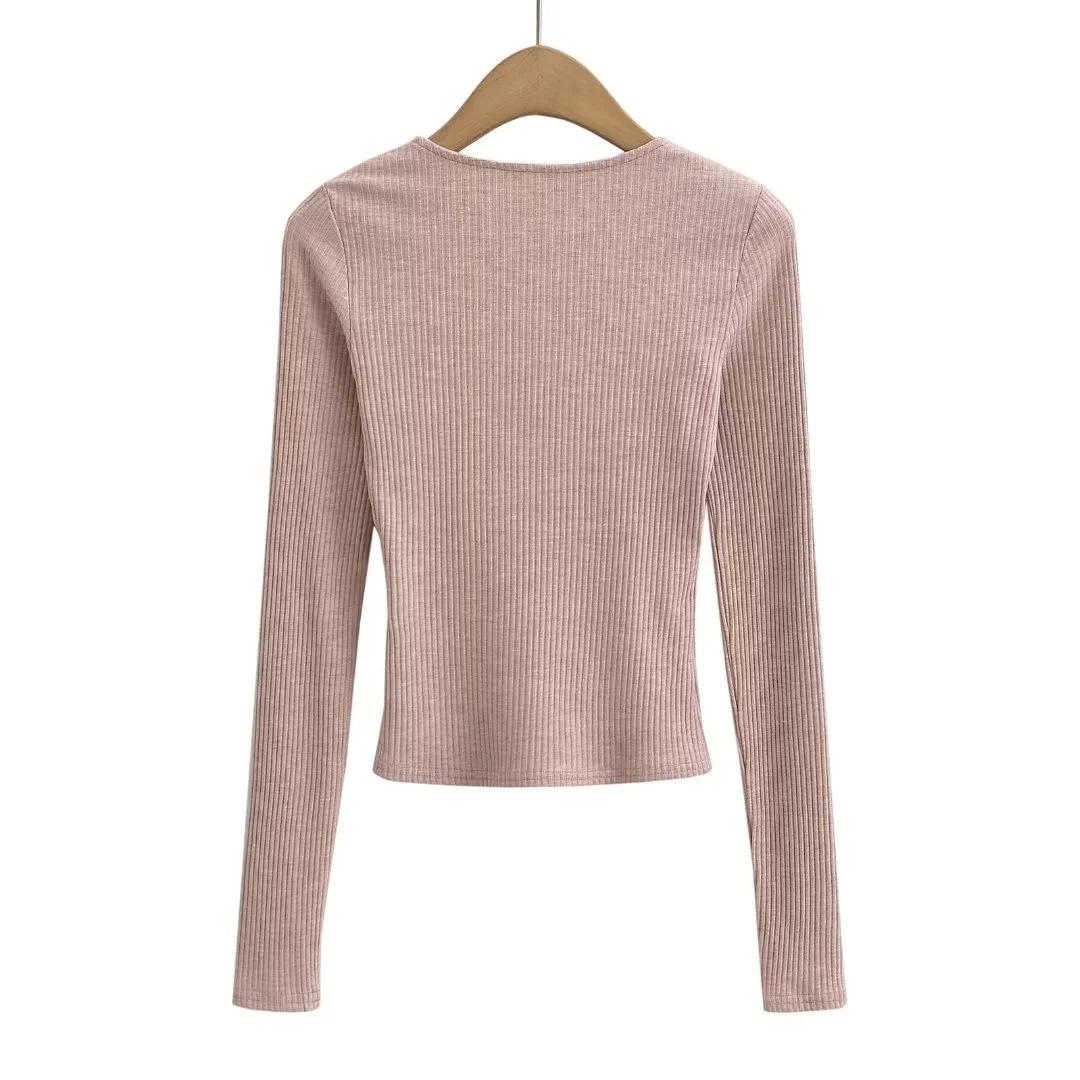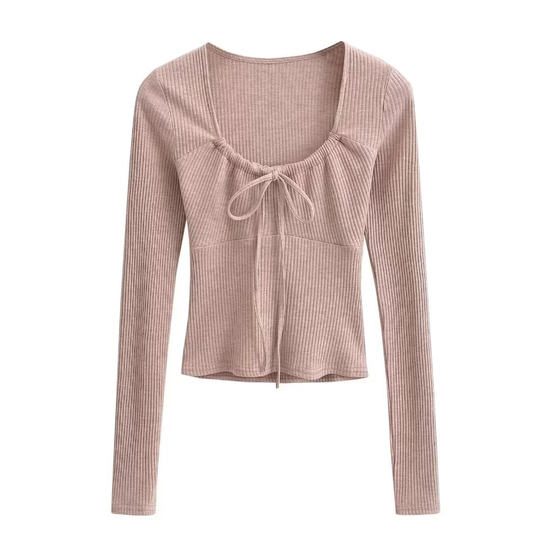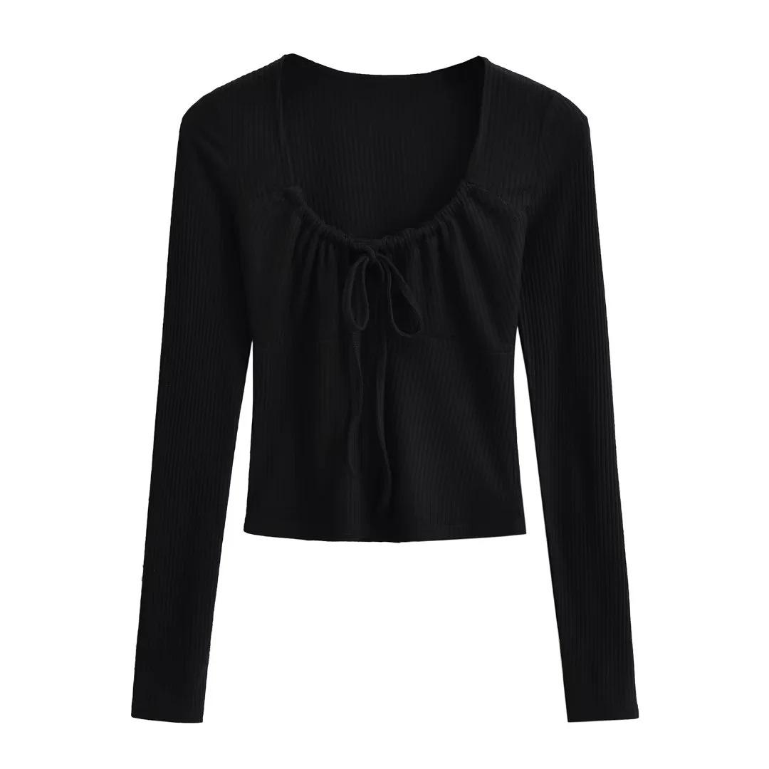 Chica sexy estilo deseo puro cuello cuadrado con cordones camiseta básica de tirantes manga larga camiseta para mujer otoño ajuste ceñido adelgazante top de temperamento interior