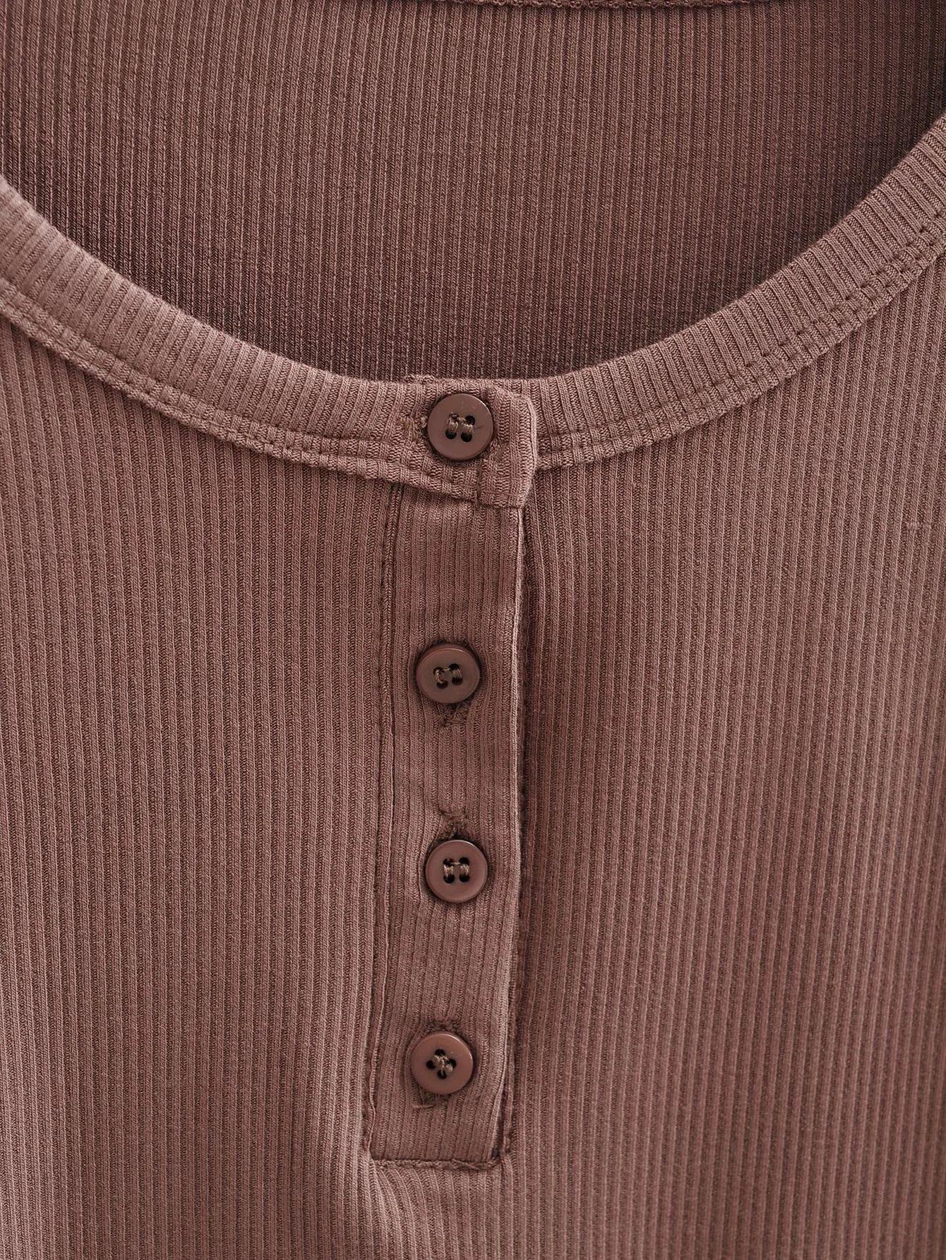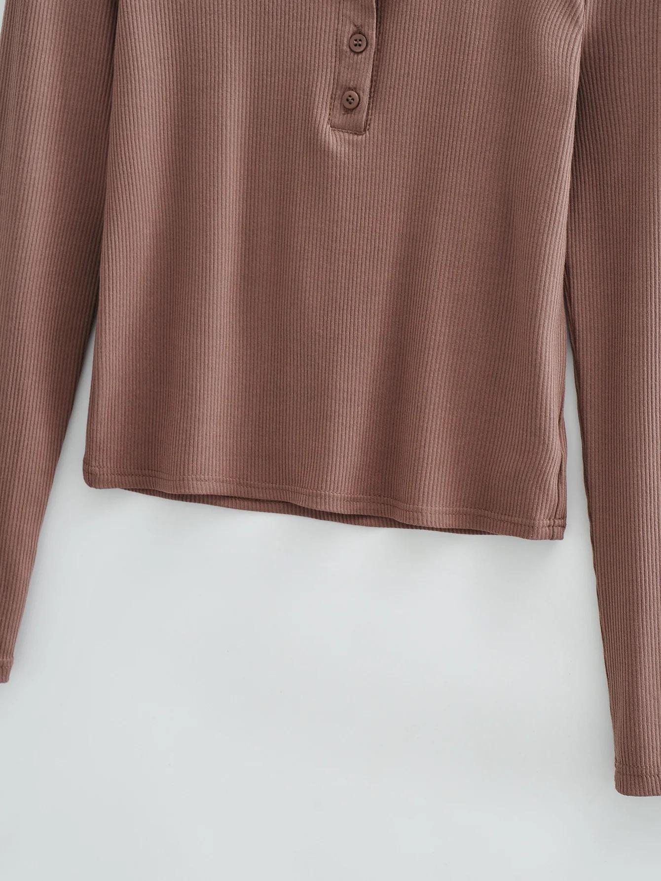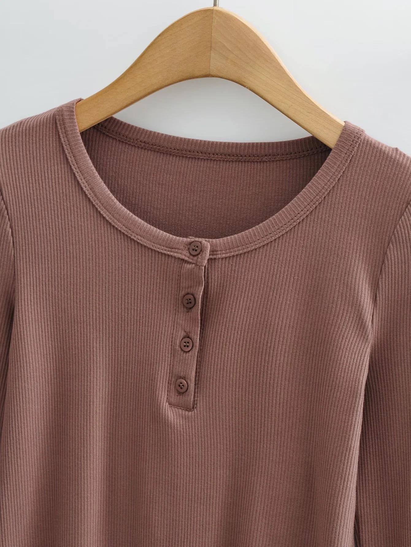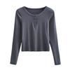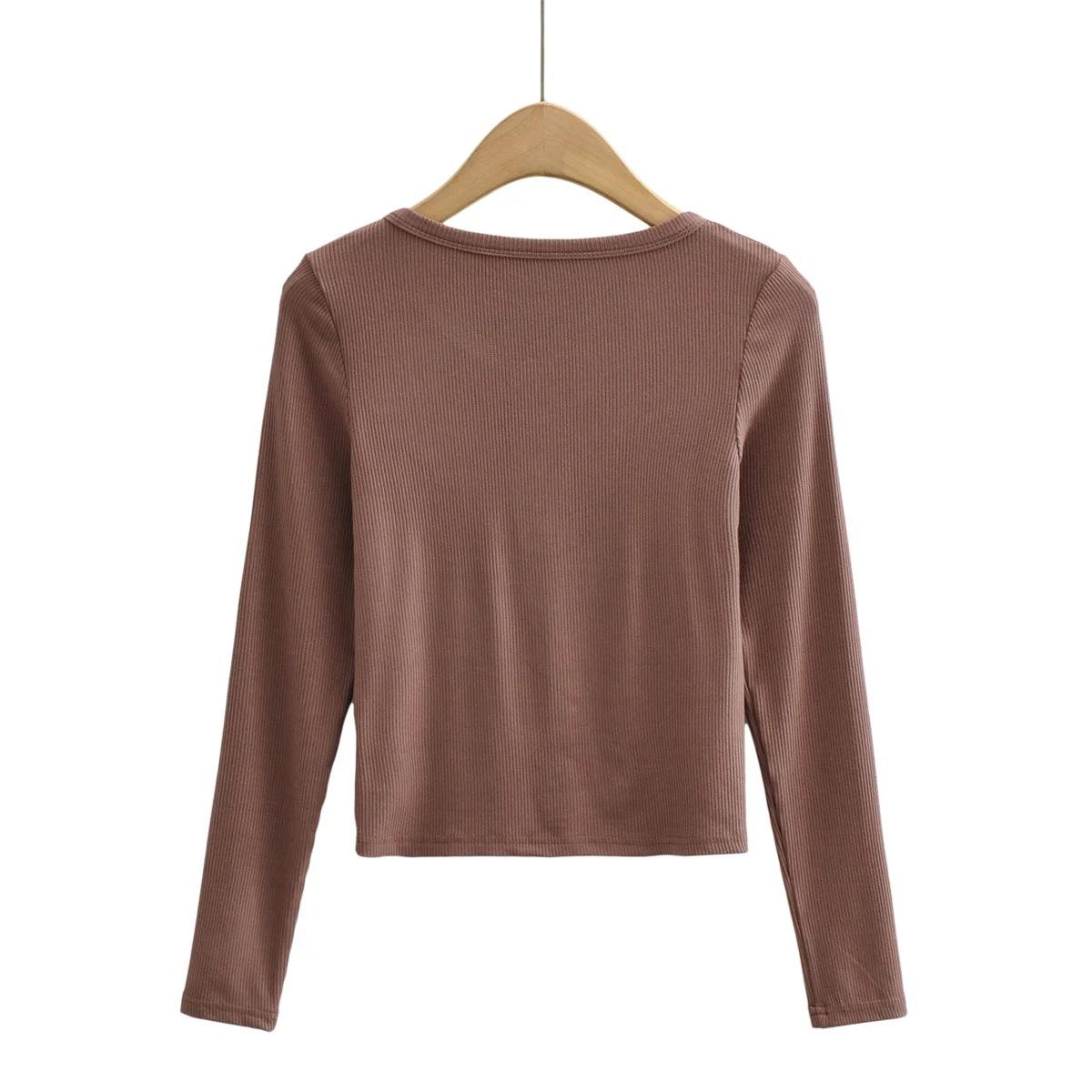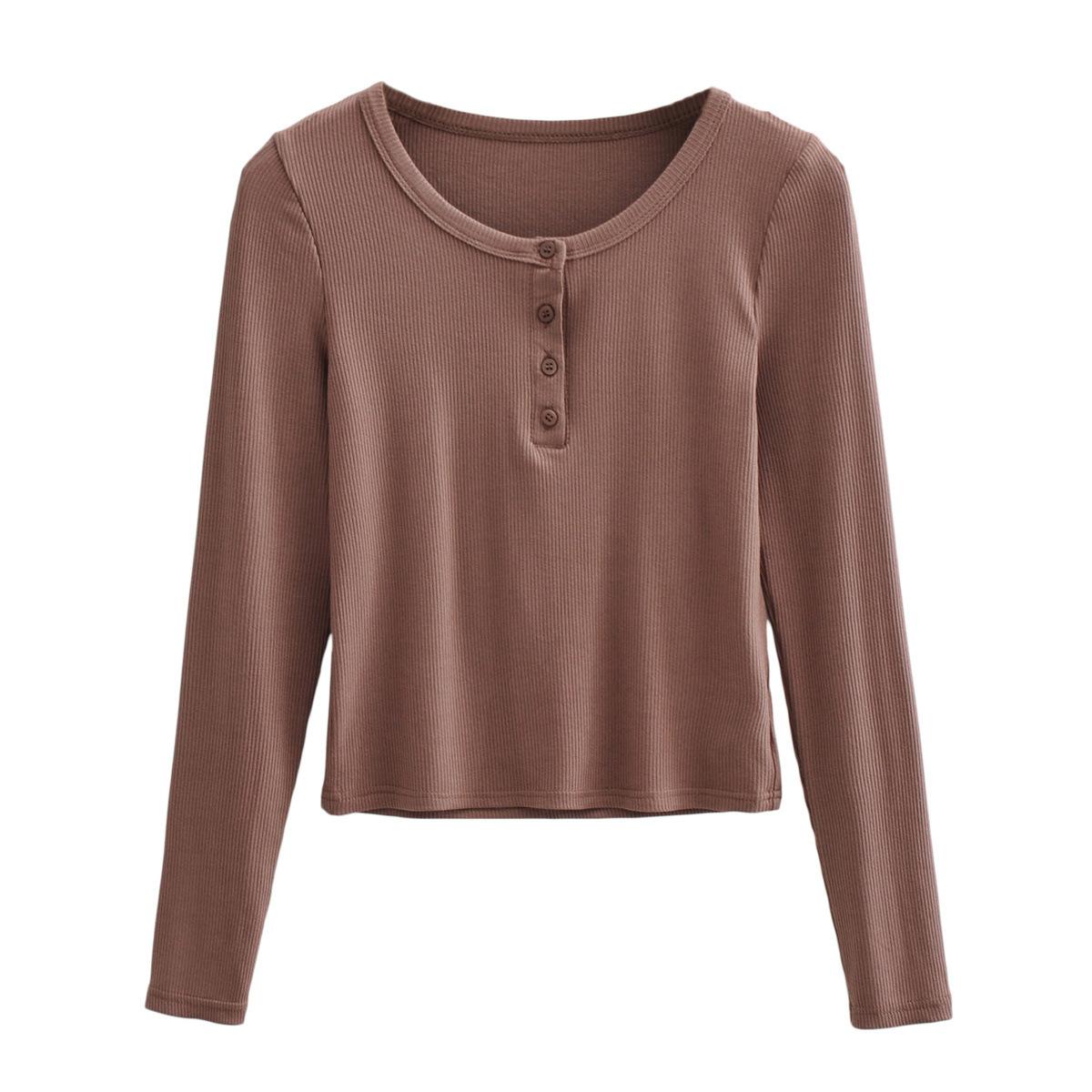 Camiseta sexy de manga larga con cuatro botones para mujer, estilo europeo y americano, de corte corto, entallada, con cuello redondo pequeño, básica, de color liso