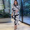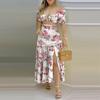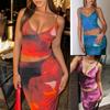 2025 Nuevo Traje Pequeño Estampado Patchwork Bicolor Transfronterizo Sexy Escote en V Profundo Casual Banquete Fiesta Falda