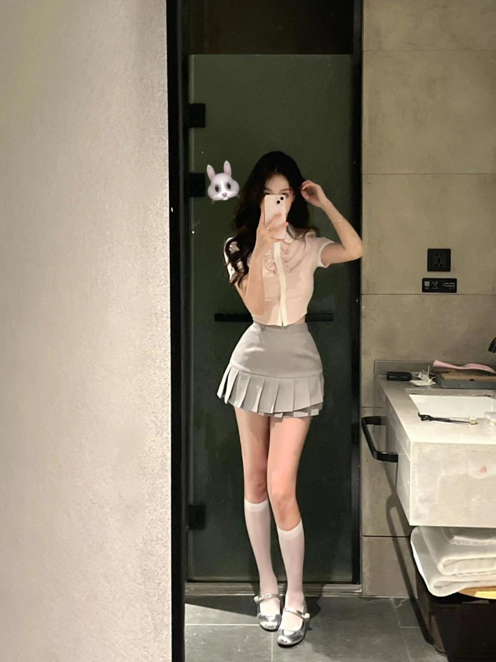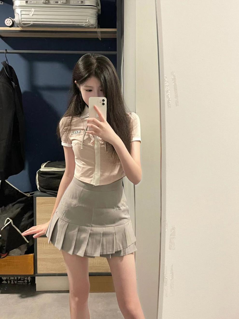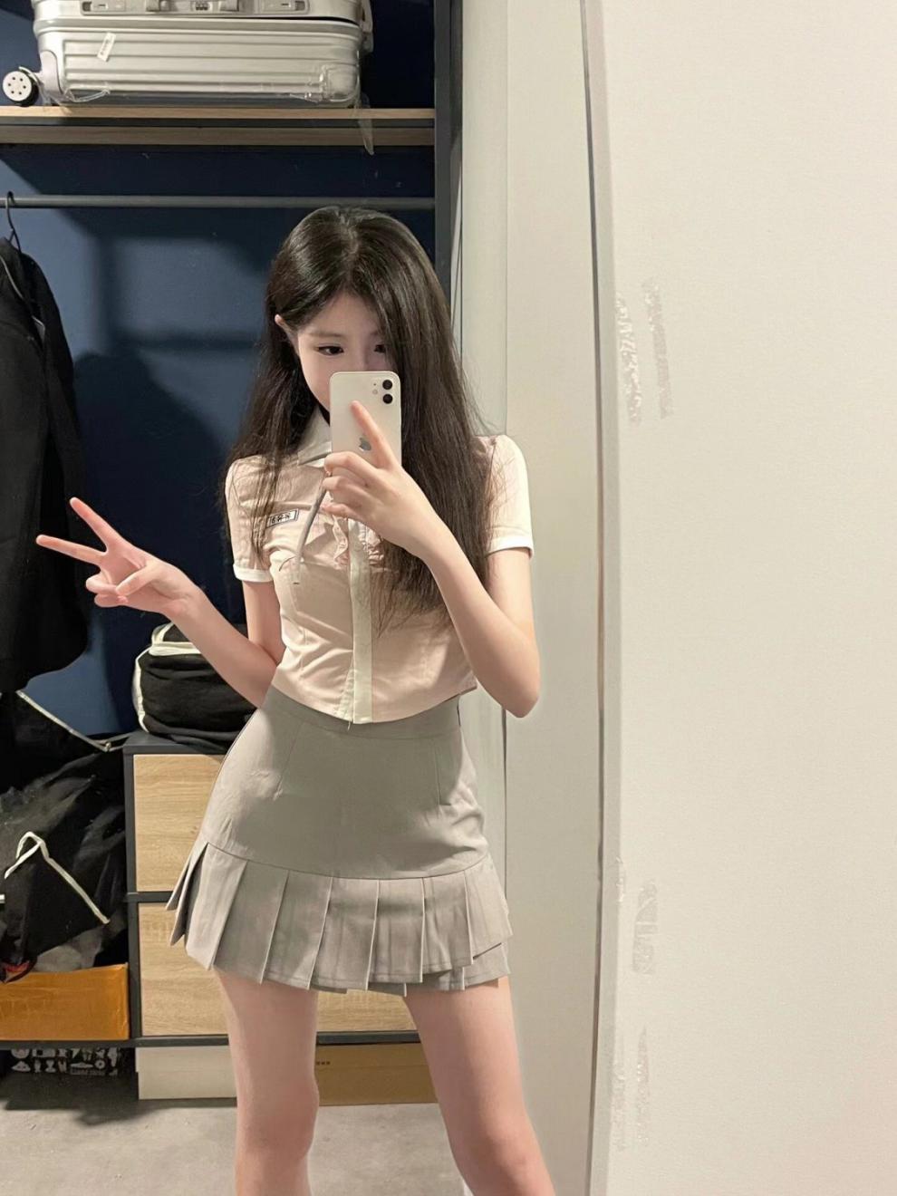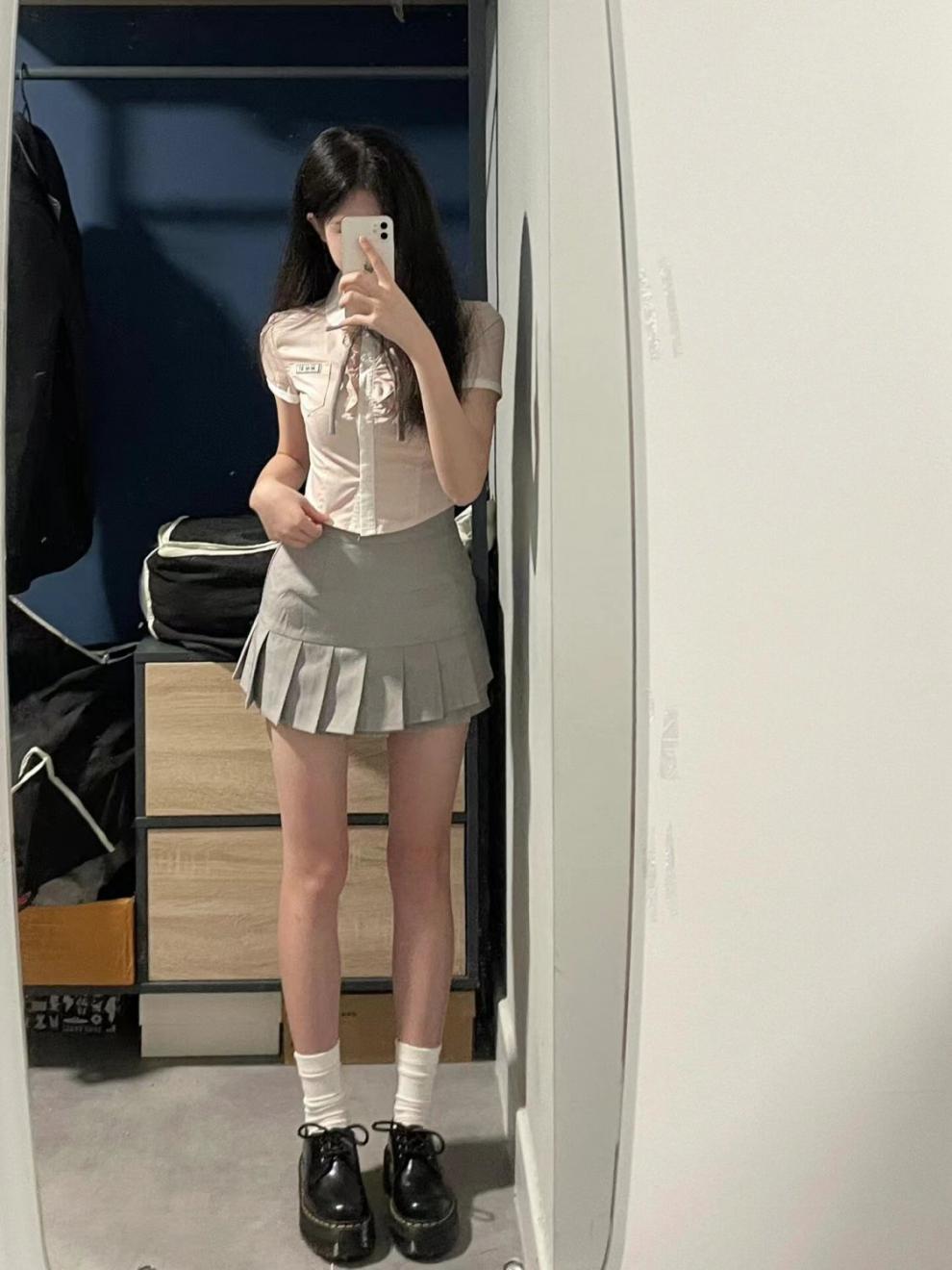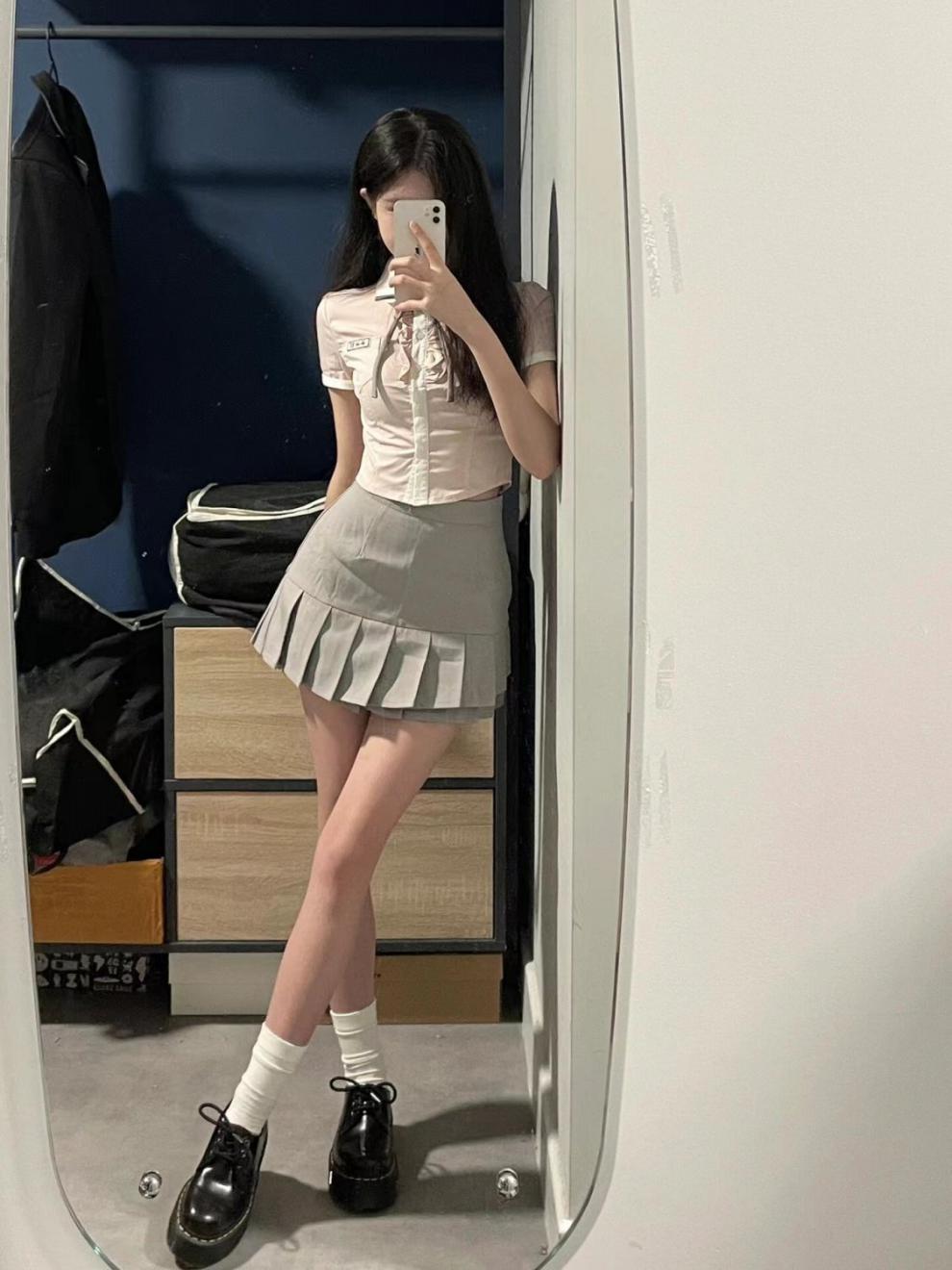 Falda Plisada Gris para Mujer Primavera y Verano Nueva Falda Irregular Cintura Alta Adelgazante Antiestática Falda JK de Chica Linda