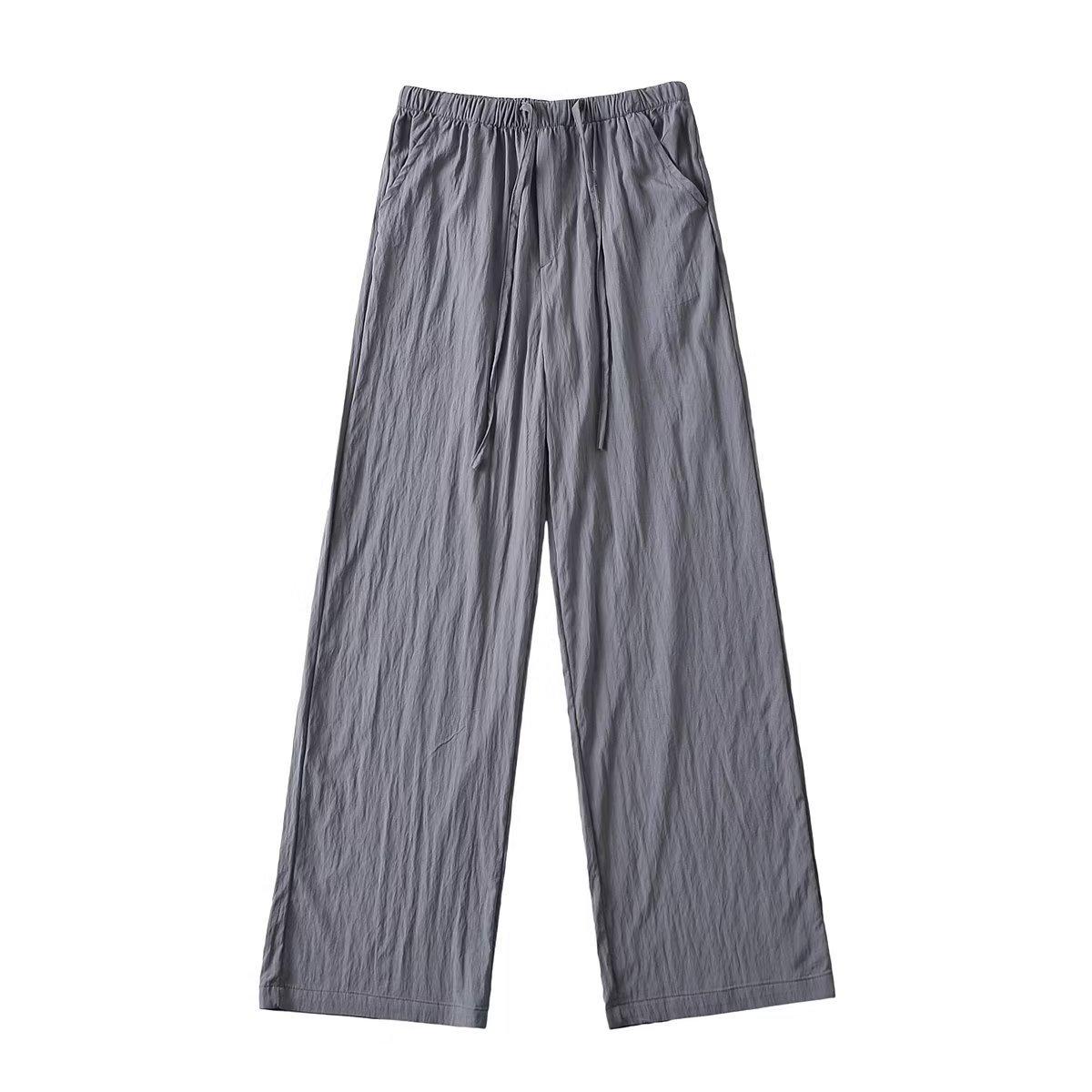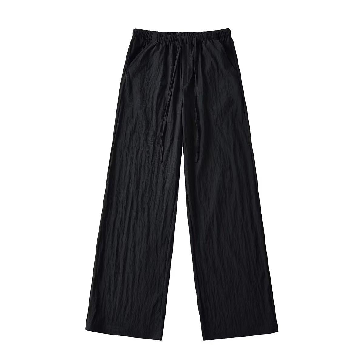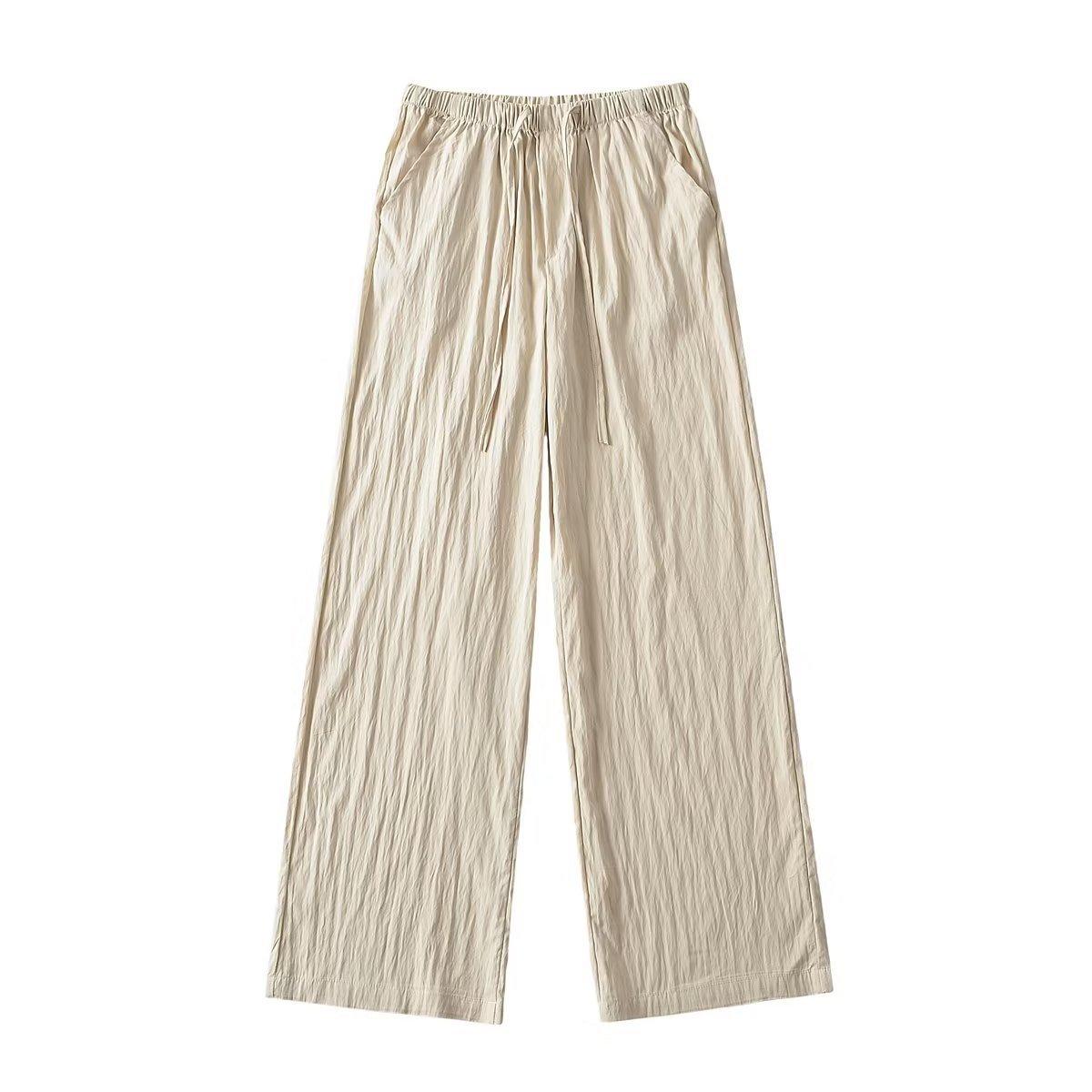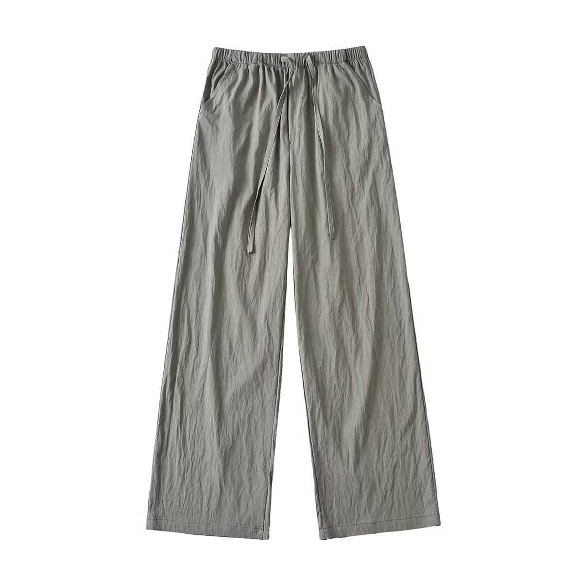 Pantalones rectos holgados de cintura alta y fina de estilo europeo y americano para mujer, nuevos pantalones casuales de verano con cintura holgada y drapeada.