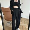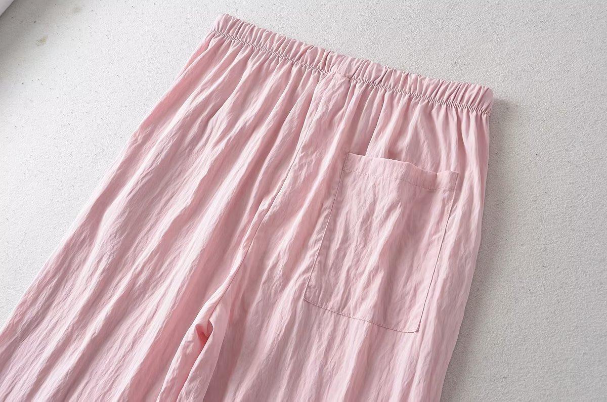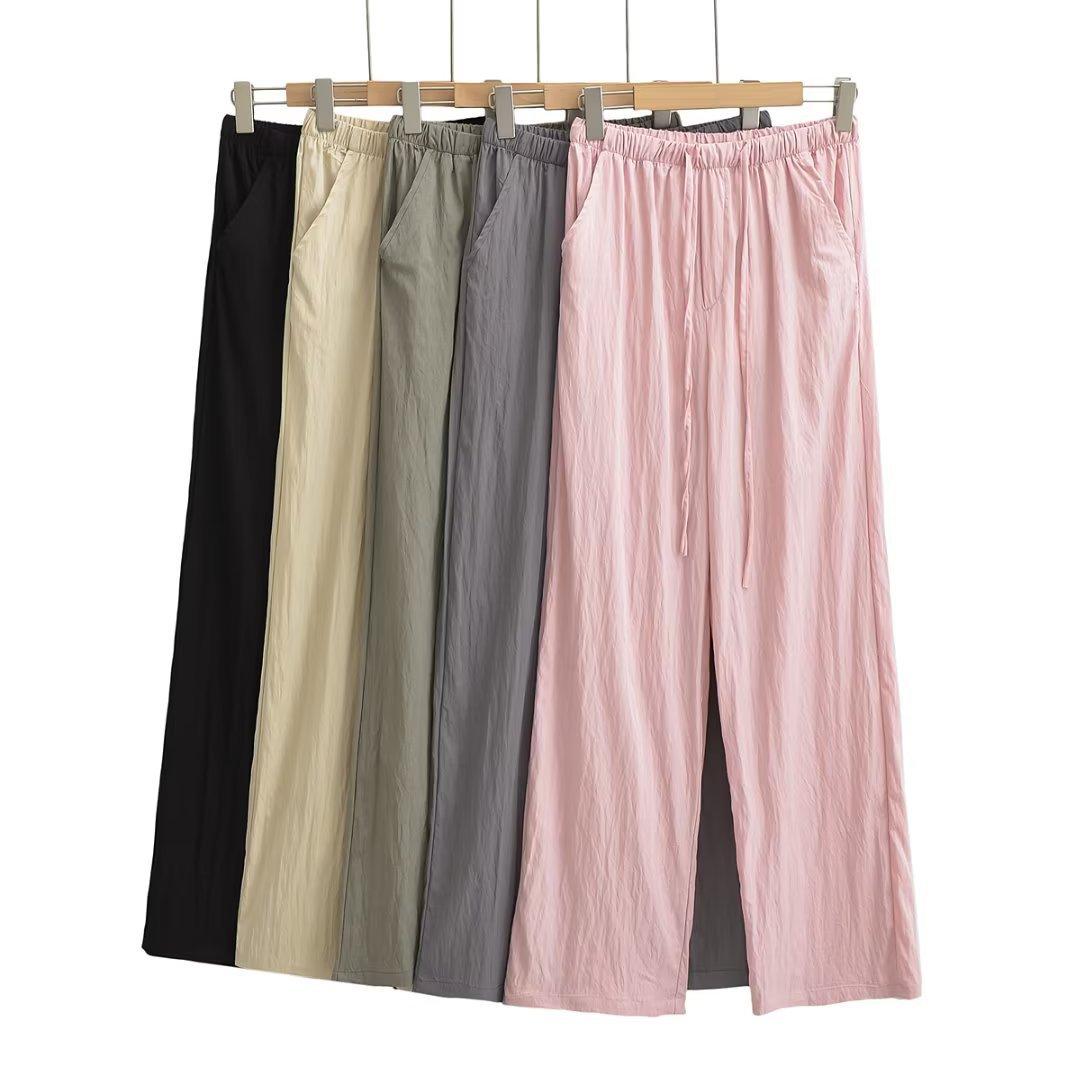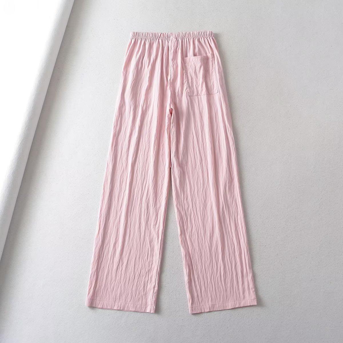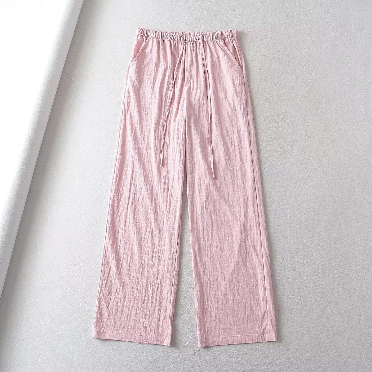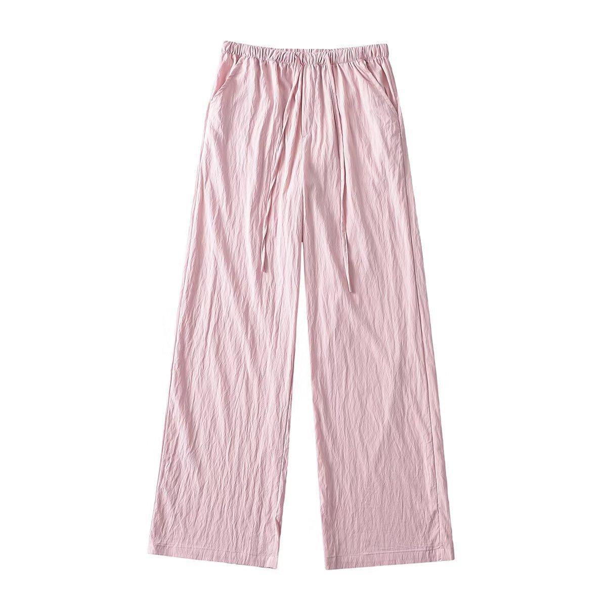 Pantalones rectos holgados de cintura alta y fina de estilo europeo y americano para mujer, nuevos pantalones casuales de verano con cintura holgada y drapeada.