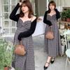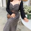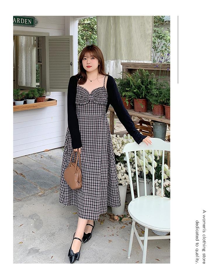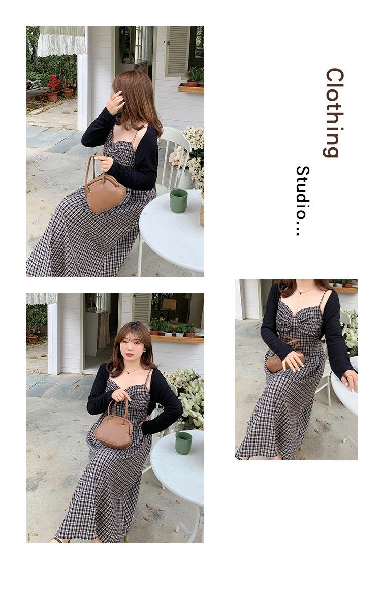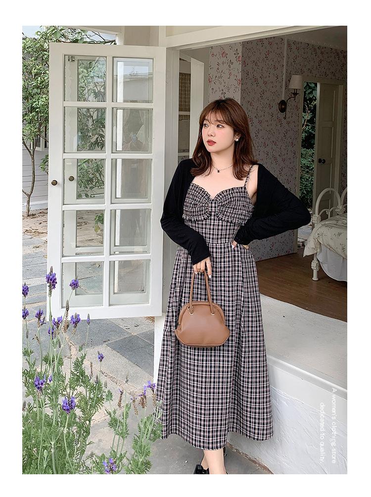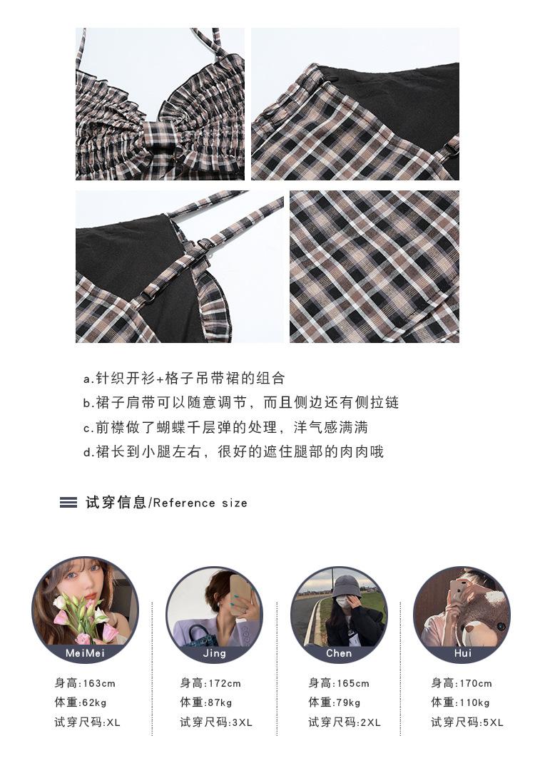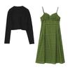 La falda de tirantes a cuadros a juego es muy retro y elegante.