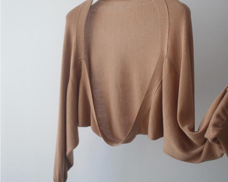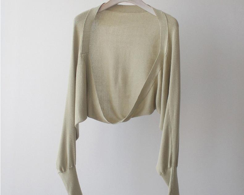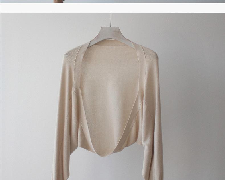 Cárdigan de punto con protector solar de seda de hielo para mujer, fino, de verano, con tirantes y chal pequeño, suéter con aire acondicionado, blusa de manga murciélago