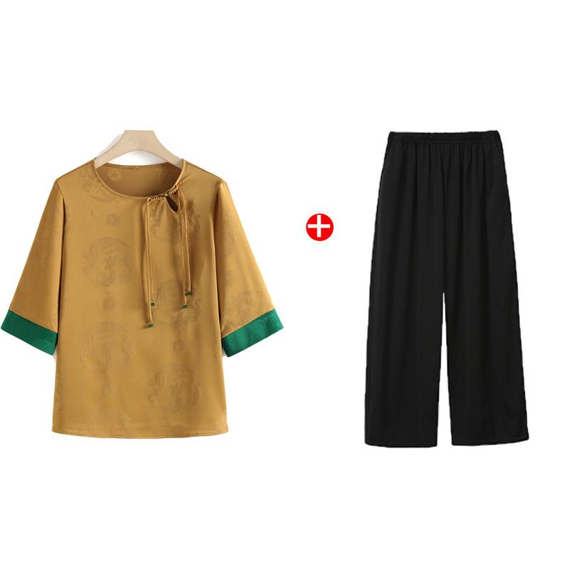 Traje de madre de mediana edad verano estilo occidental top chino 2024 nuevo mujeres de mediana edad y ancianas verano ocio traje de dos piezas