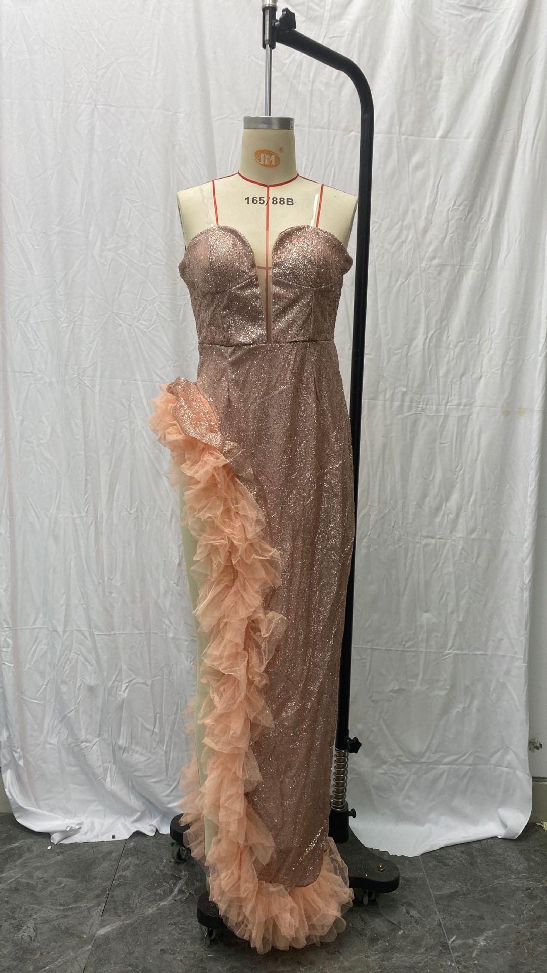 2025 Verano Transfronterizo Amazon Nuevo Reunión Anual Ropa Europea y Americana Flecos Cola Sexy Vestido Tubo Top Dorado Salpicado