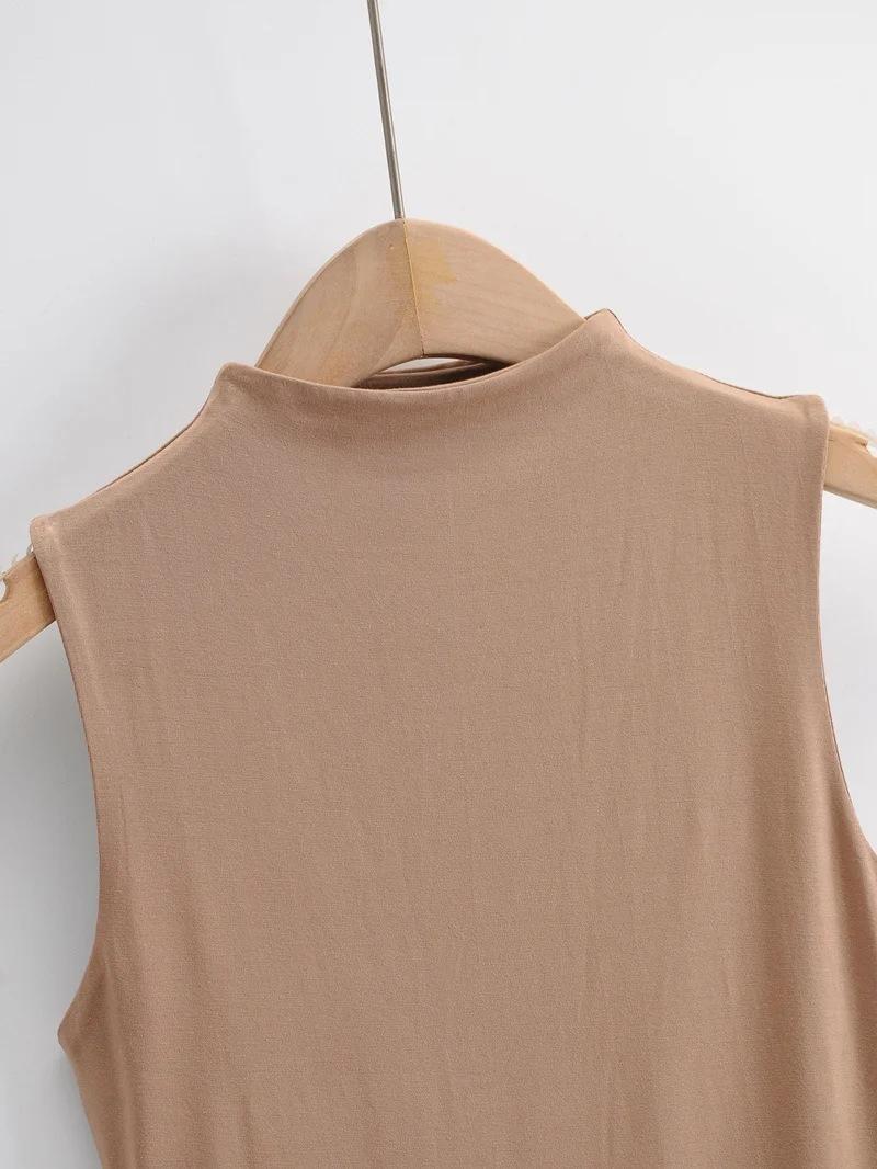 Mono ajustado de doble capa con cuello redondo estilo europeo y americano ins AliExpress ebay sexy sin mangas ajustado camisa básica 21119