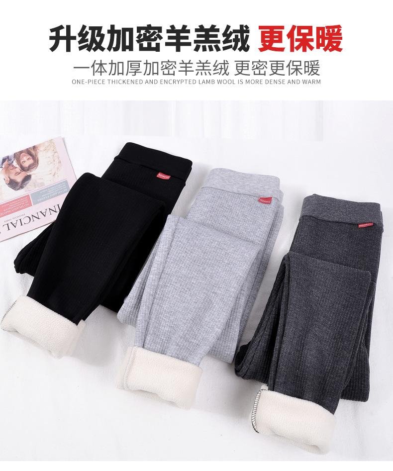 Leggings de lana de cordero extra gruesos para mujer, ropa exterior adelgazante, pantalones cálidos de cintura alta con hilo grueso de terciopelo para otoño e invierno