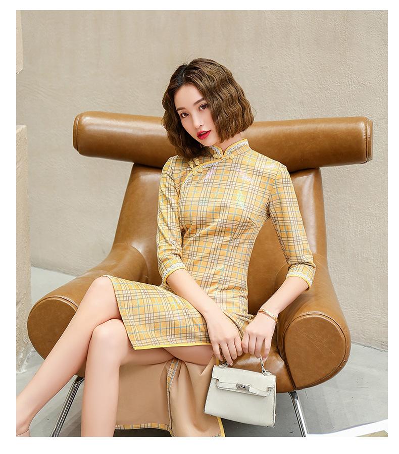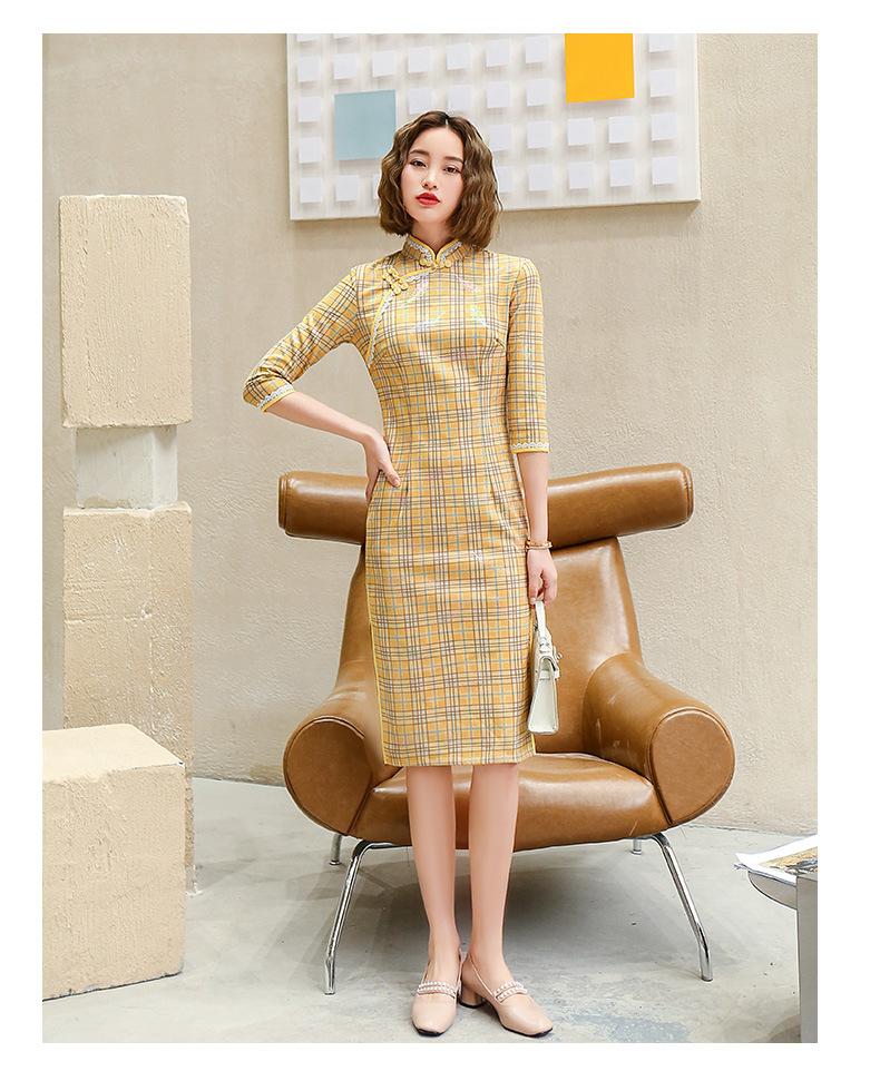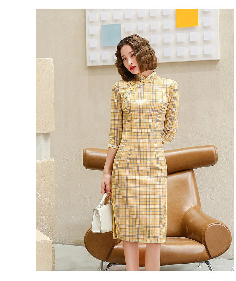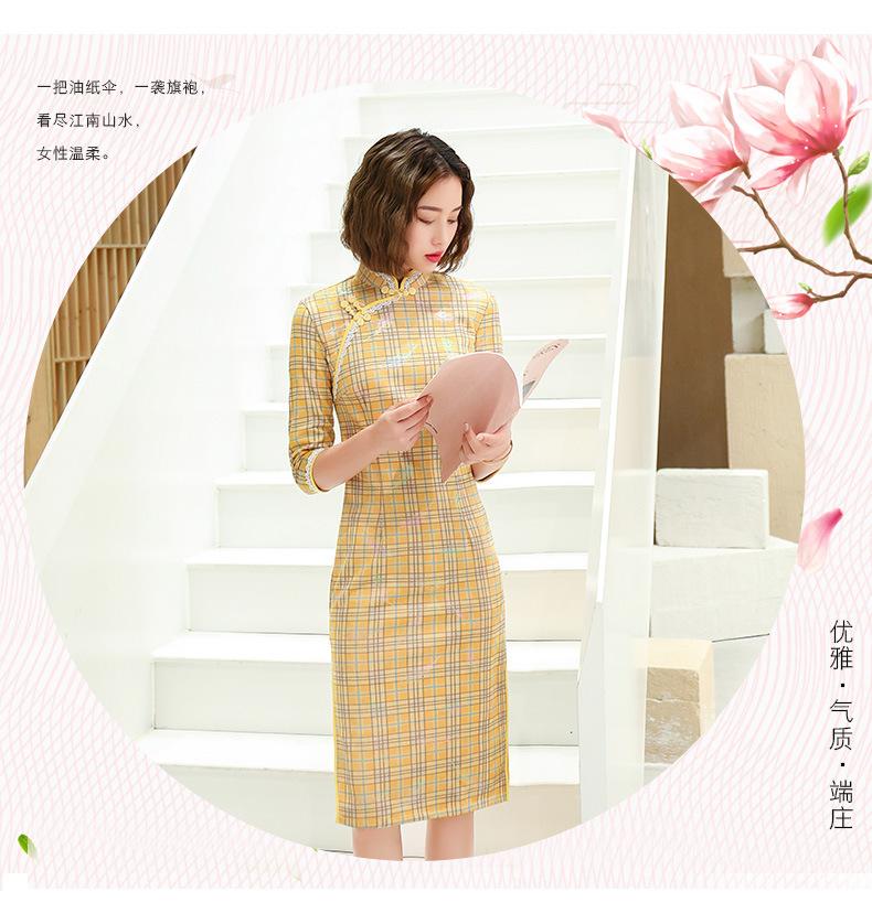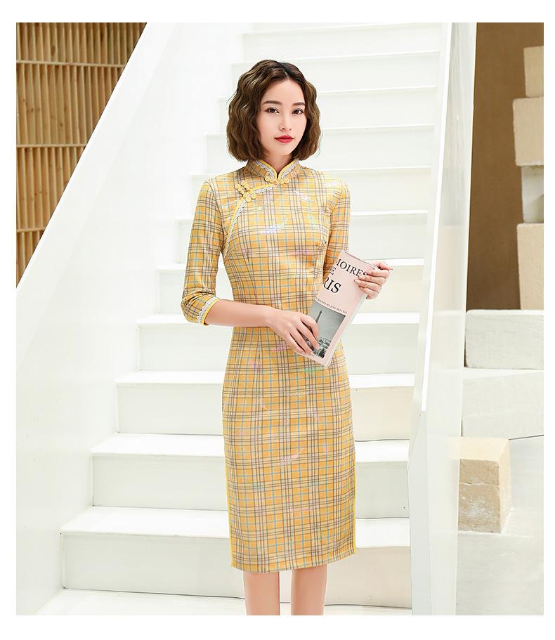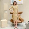 Cheongsam de Gamuza Estampado en Oro 2025 Primavera Retro Versión Mejorada Vestido Estilo Chino Largo Medio Nuevo Estilo Chino