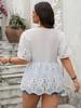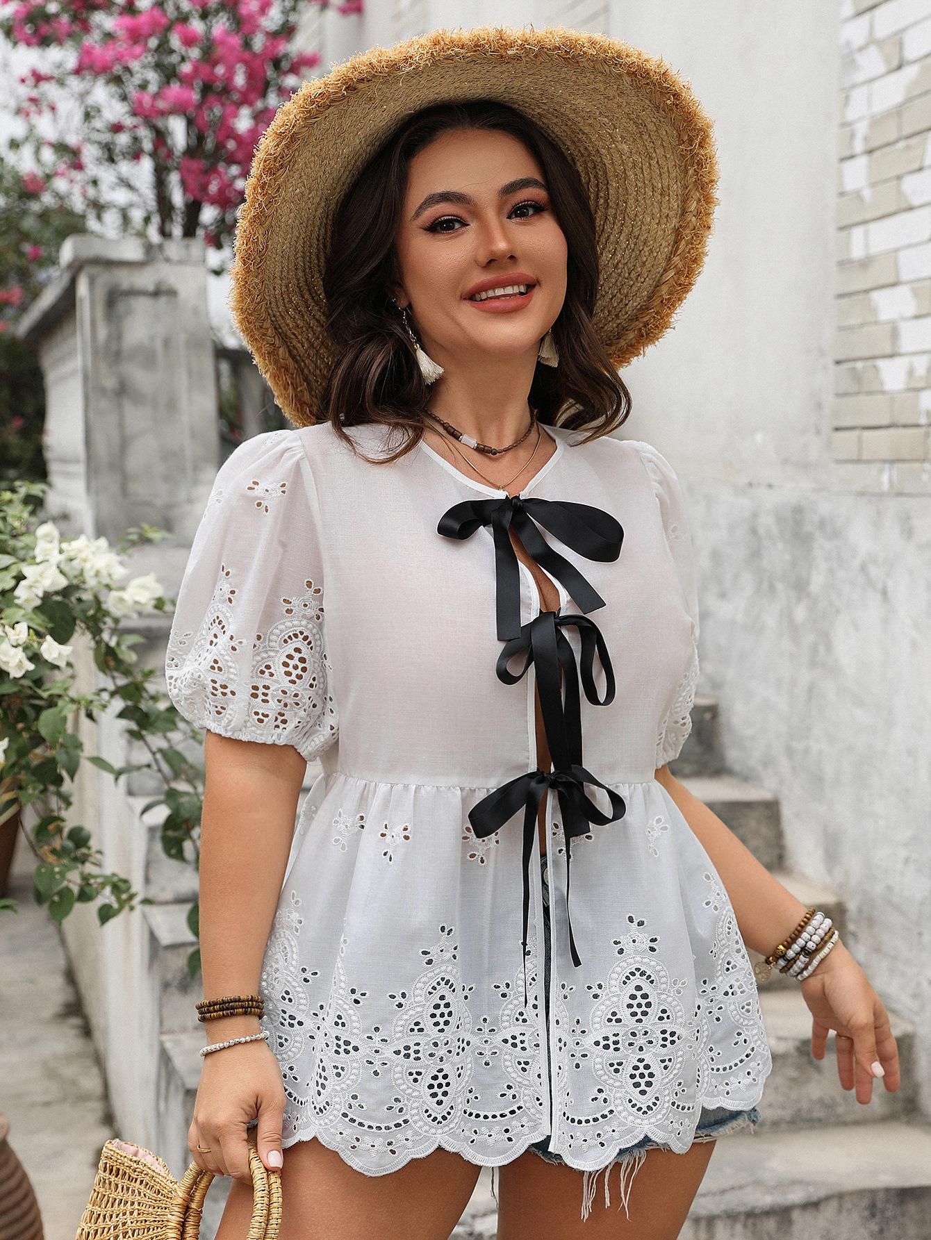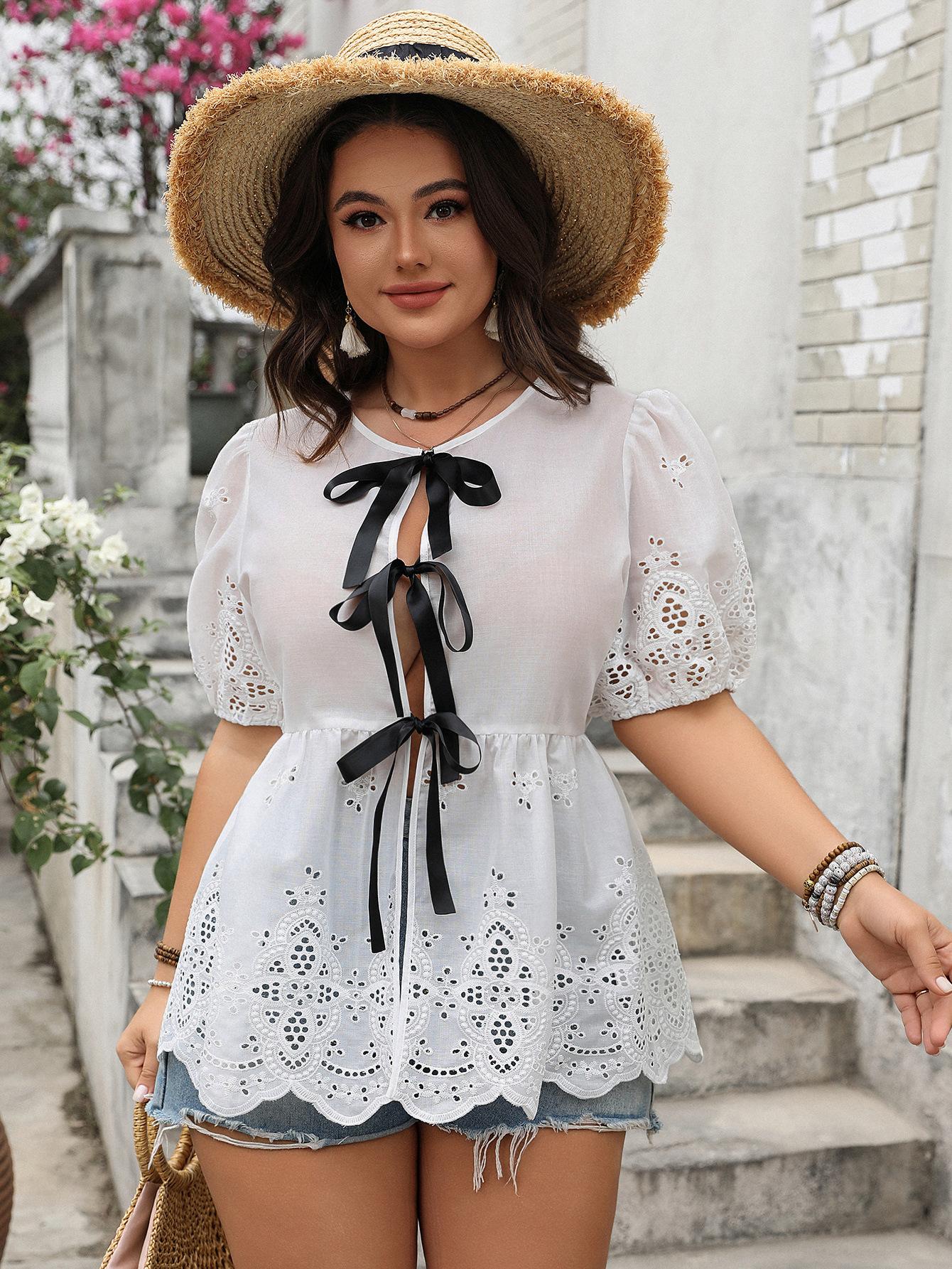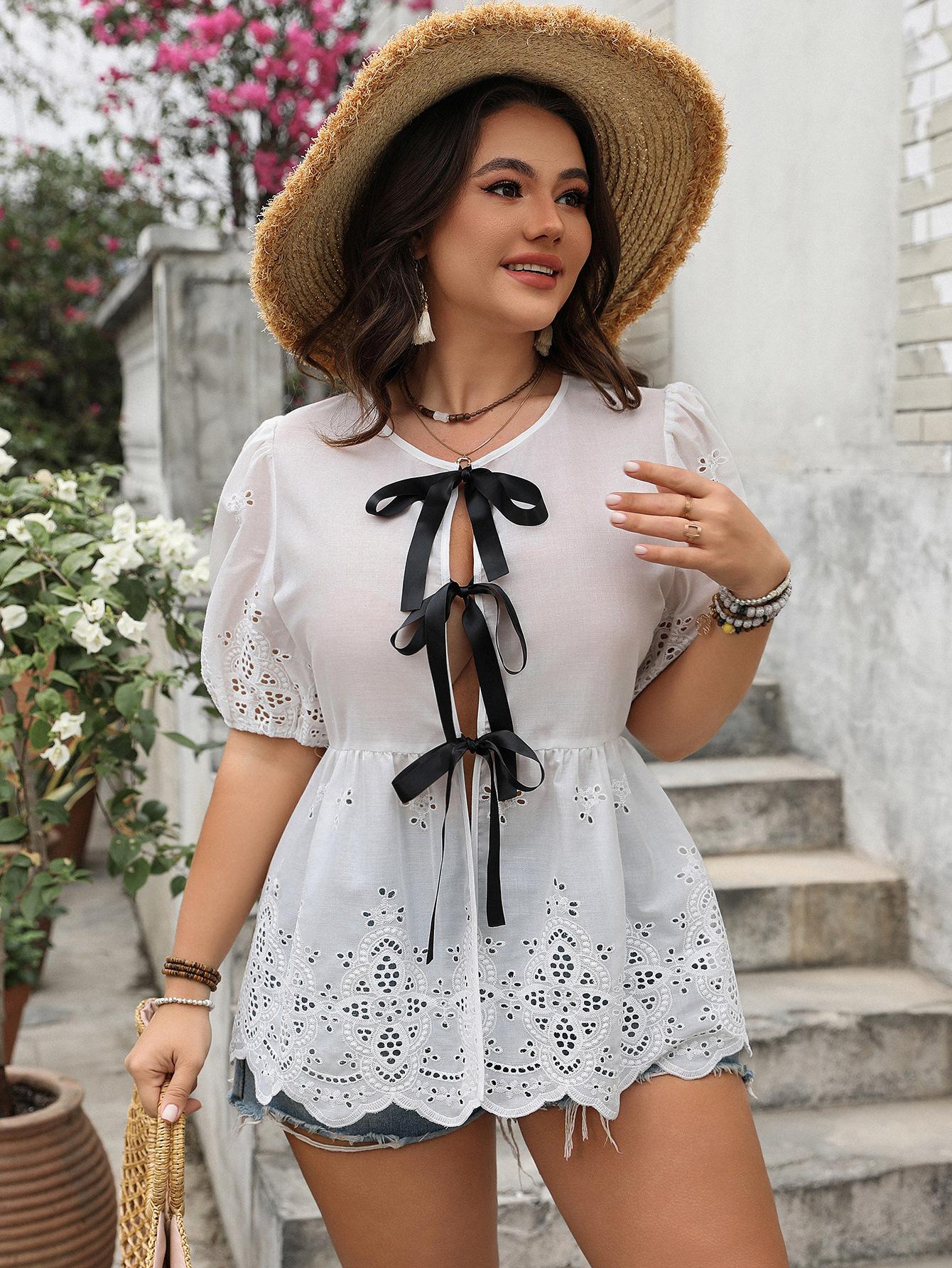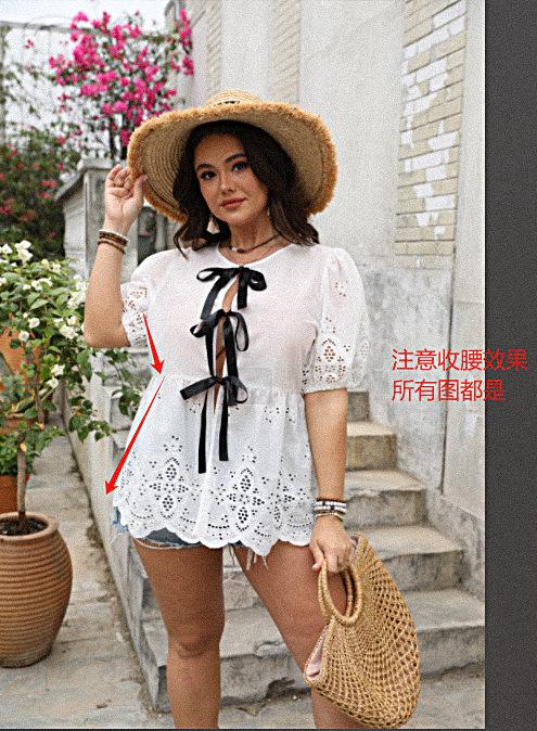 Ropa transfronteriza para mujer, Amazon, primavera y verano 2025, comercio exterior, temperamento informal, color sólido, escote en V, cintura hueca, manga corta, top para mujer