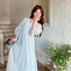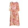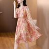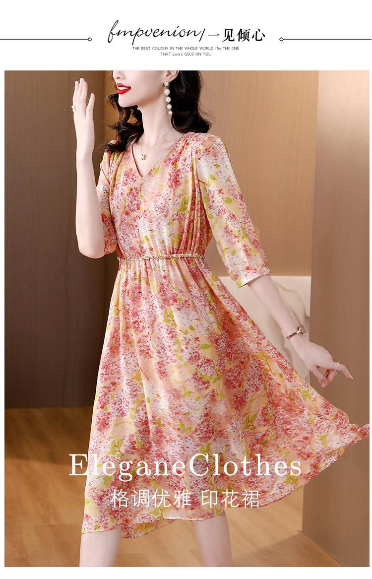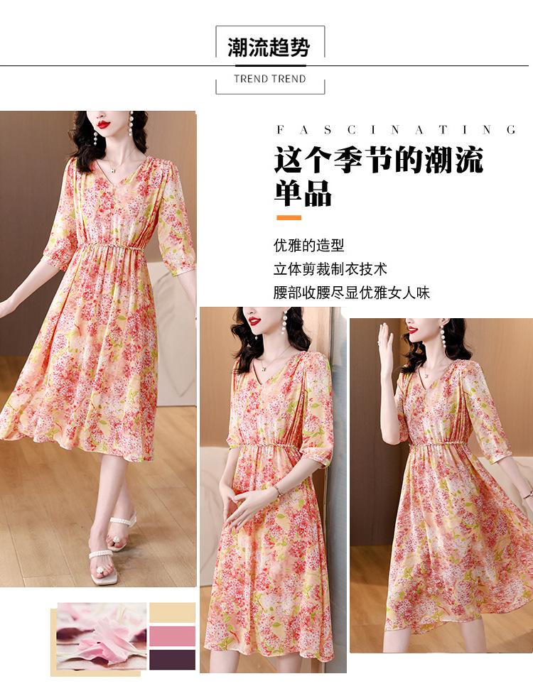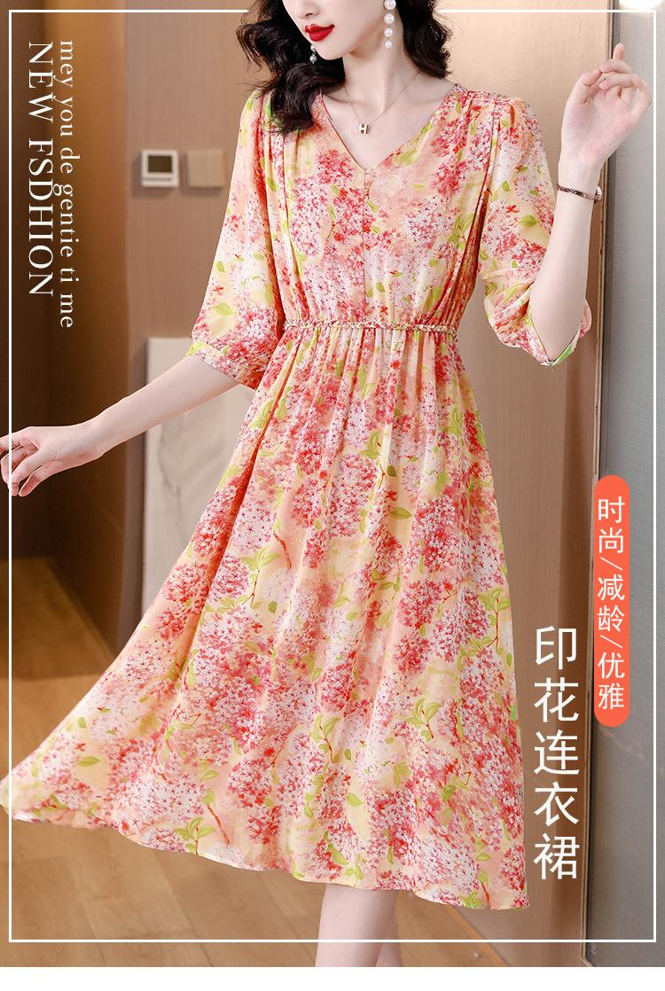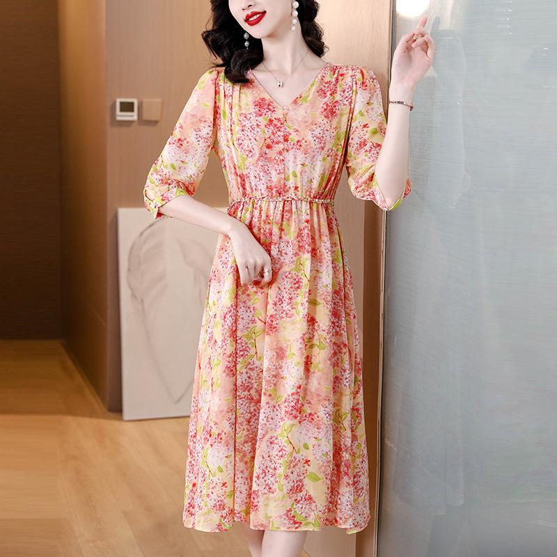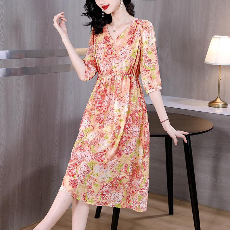 Vestido de seda sintética con escote en V francés para mujer, novedad de verano 2024, vestido rosa dulce antiedad con cintura de longitud media