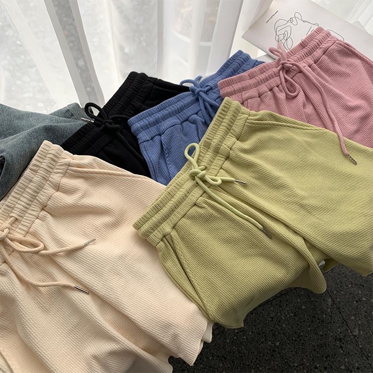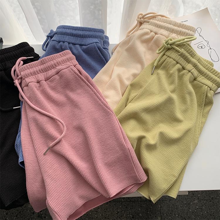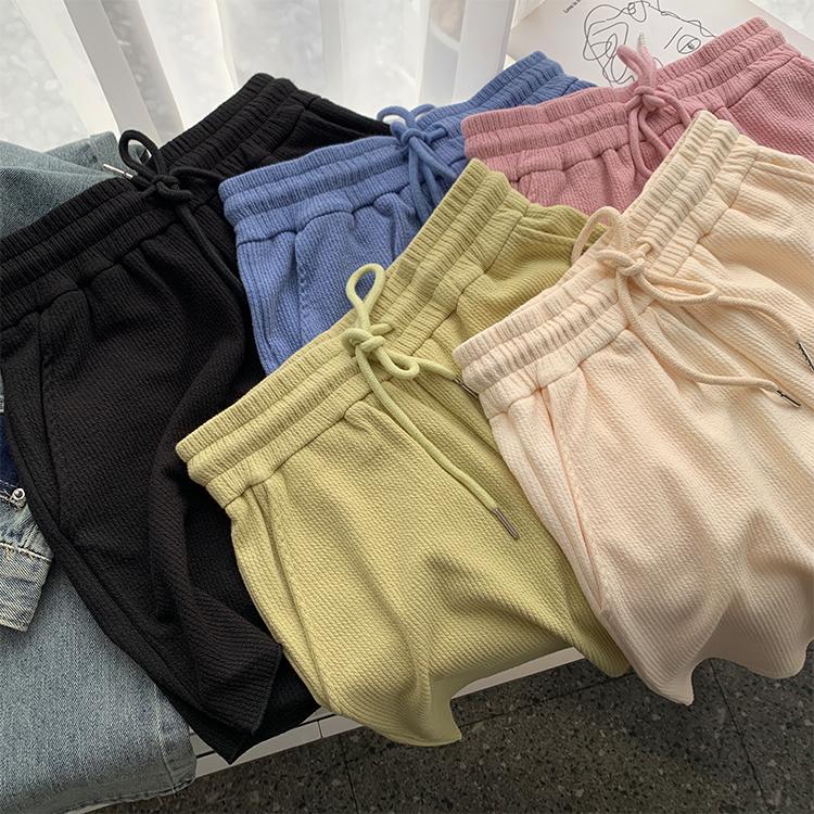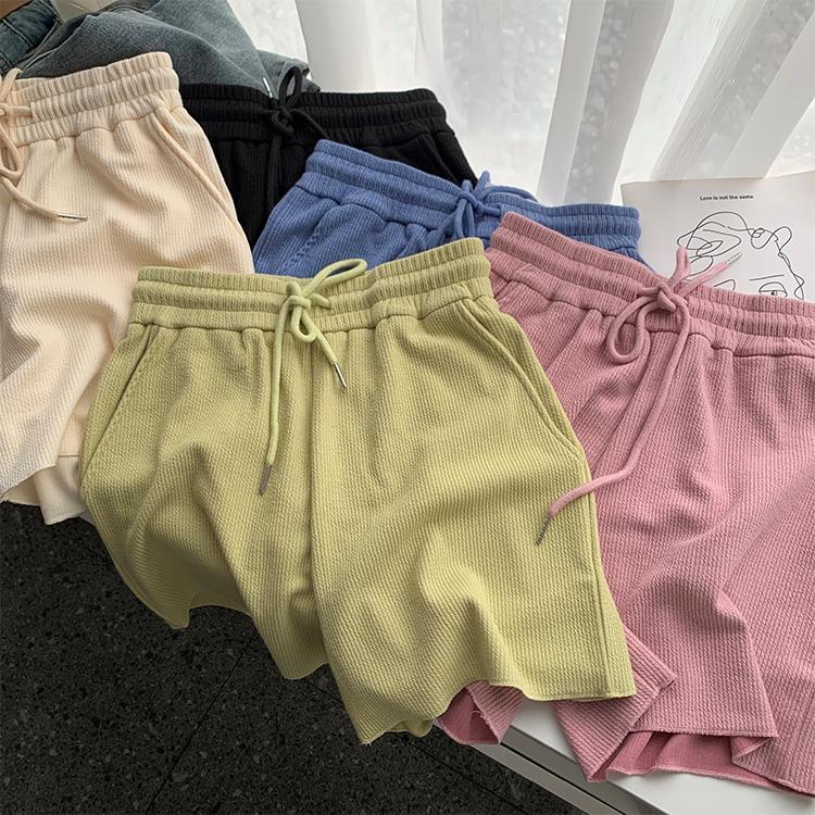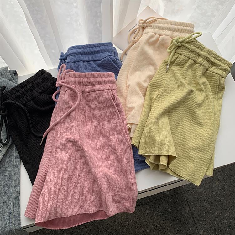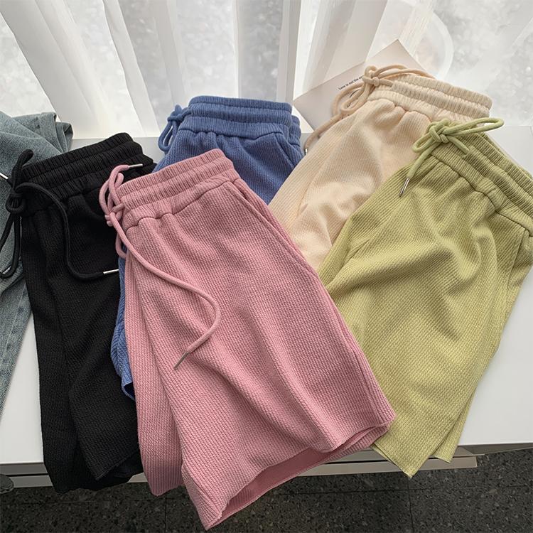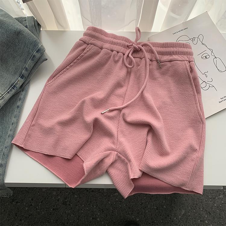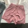 Pantalones cortos deportivos casuales con cordón rosa para mujer, de verano, con cintura elástica fina, de color sólido, holgados, adelgazantes, de pierna ancha para el hogar.