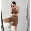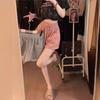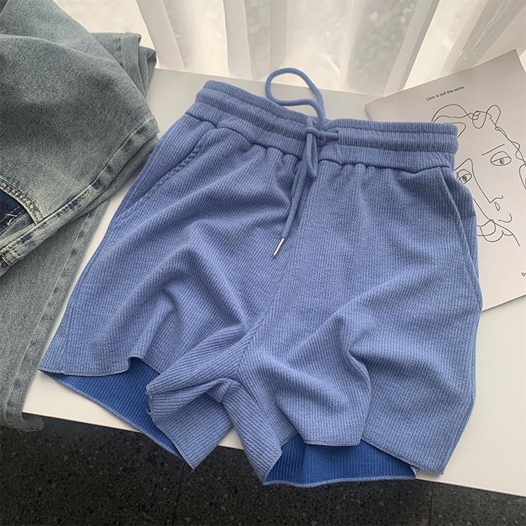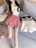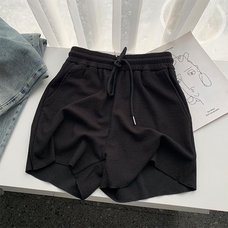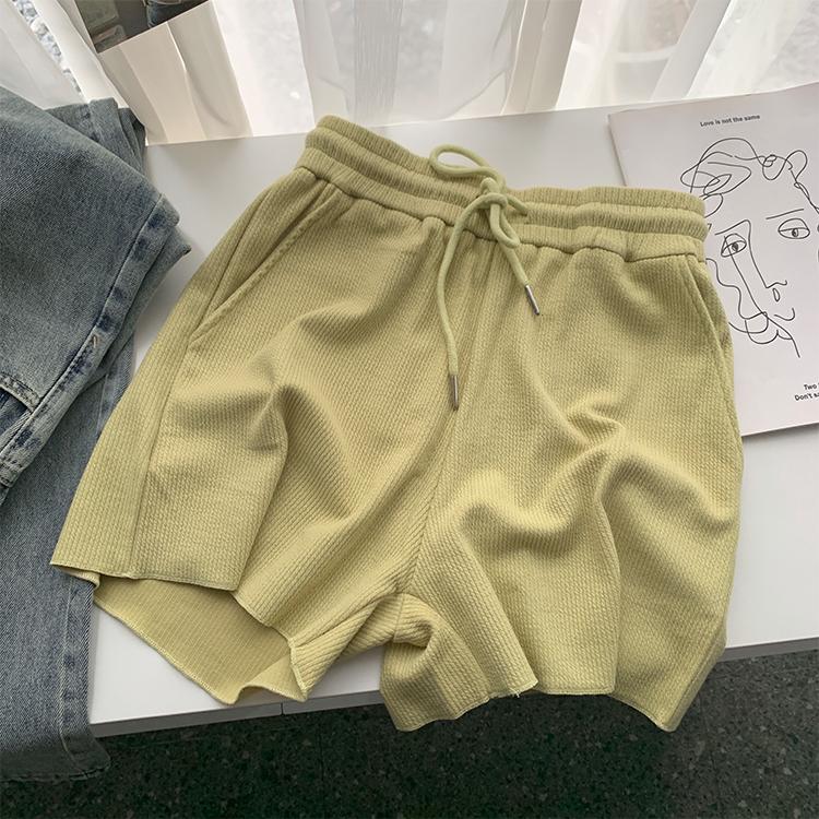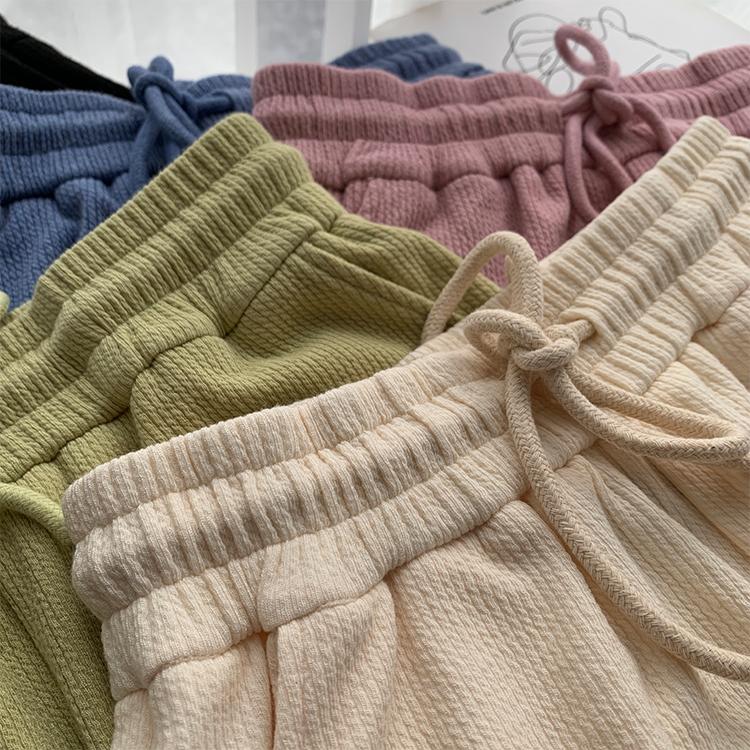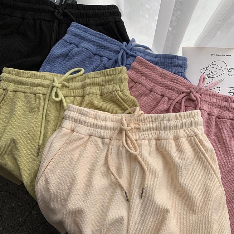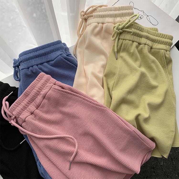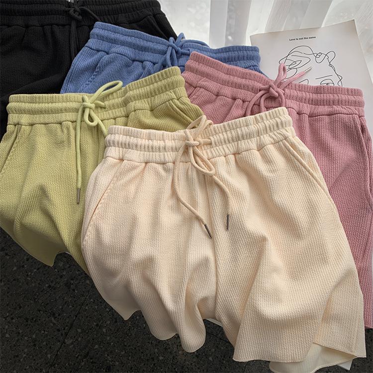 Pantalones cortos deportivos casuales con cordón rosa para mujer, de verano, con cintura elástica fina, de color sólido, holgados, adelgazantes, de pierna ancha para el hogar.