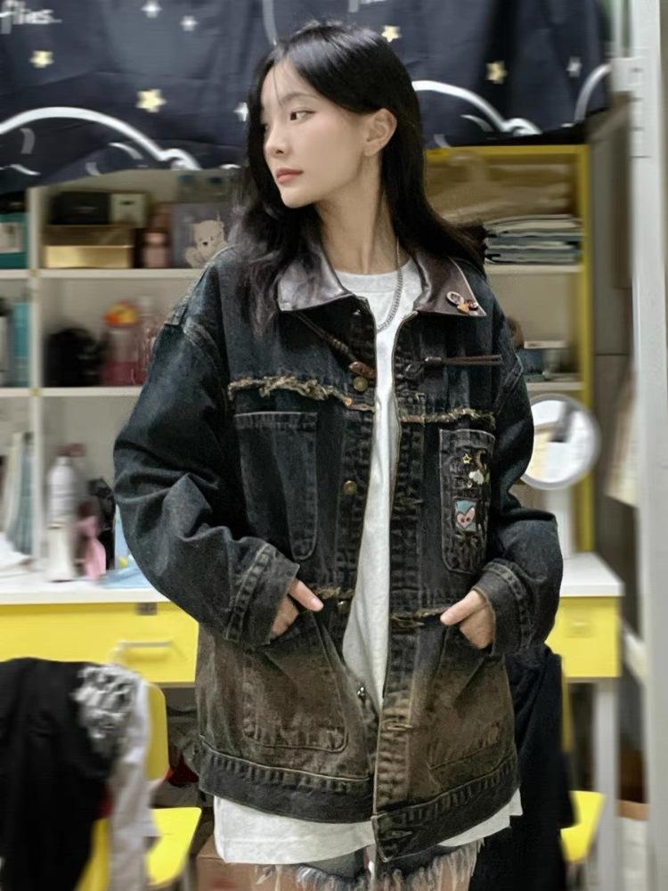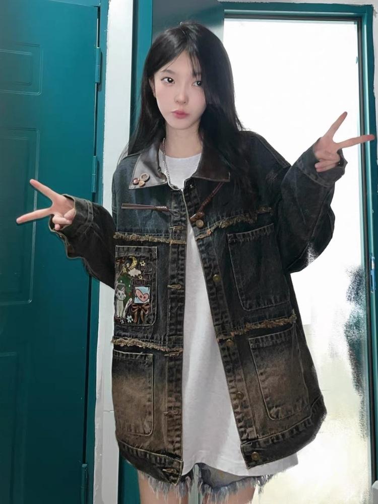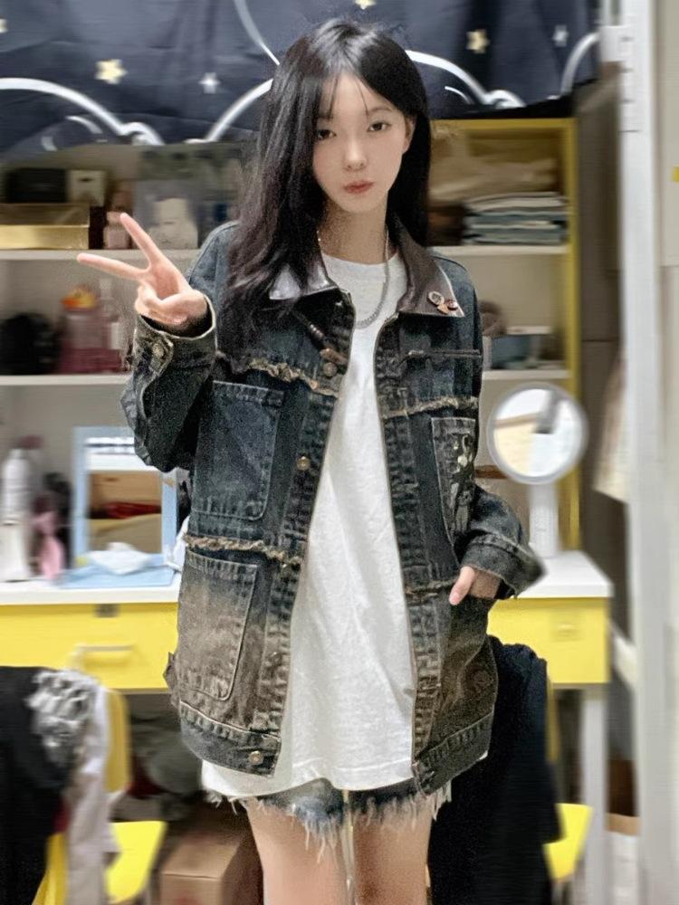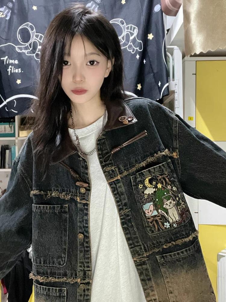 Abrigo vaquero con lijado bordado para mujer, primavera/otoño 2023, nuevo diseño vintage de High Street, top holgado