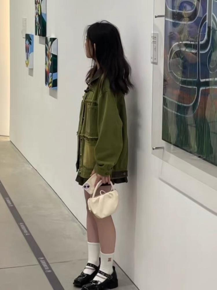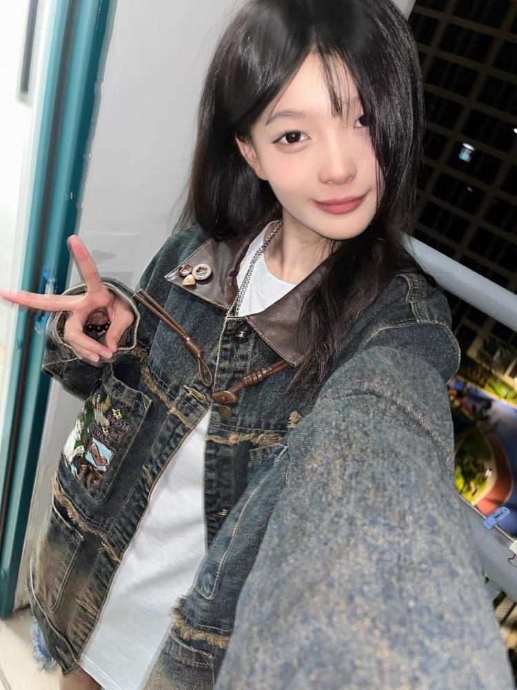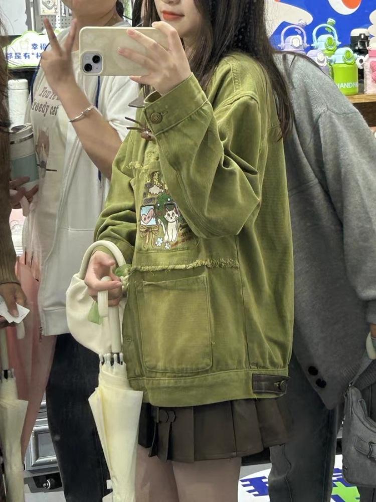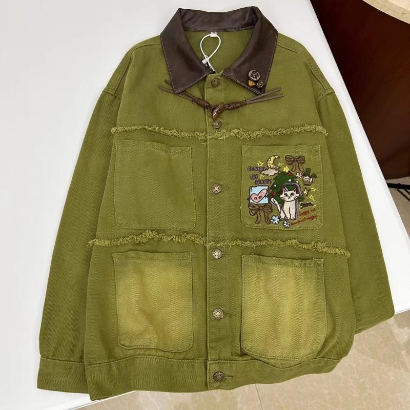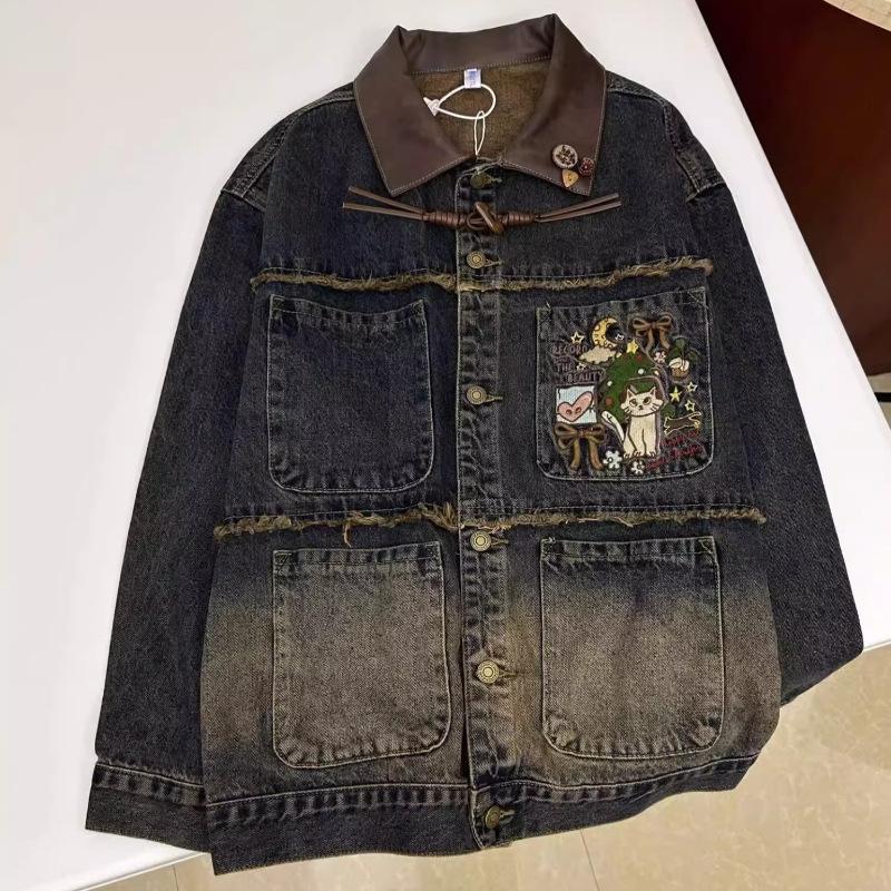 Abrigo vaquero con lijado bordado para mujer, primavera/otoño 2023, nuevo diseño vintage de High Street, top holgado