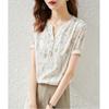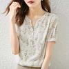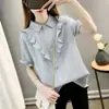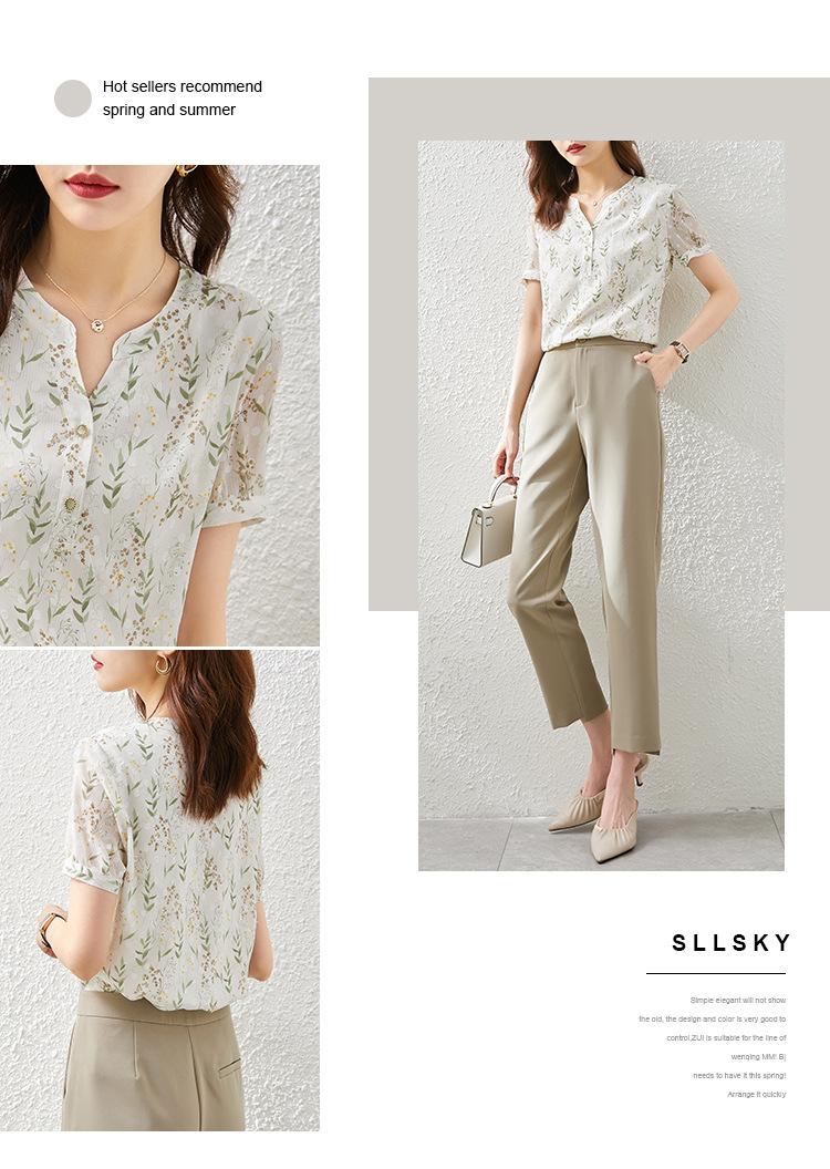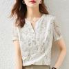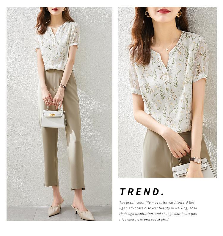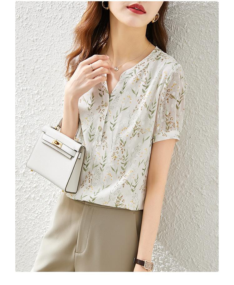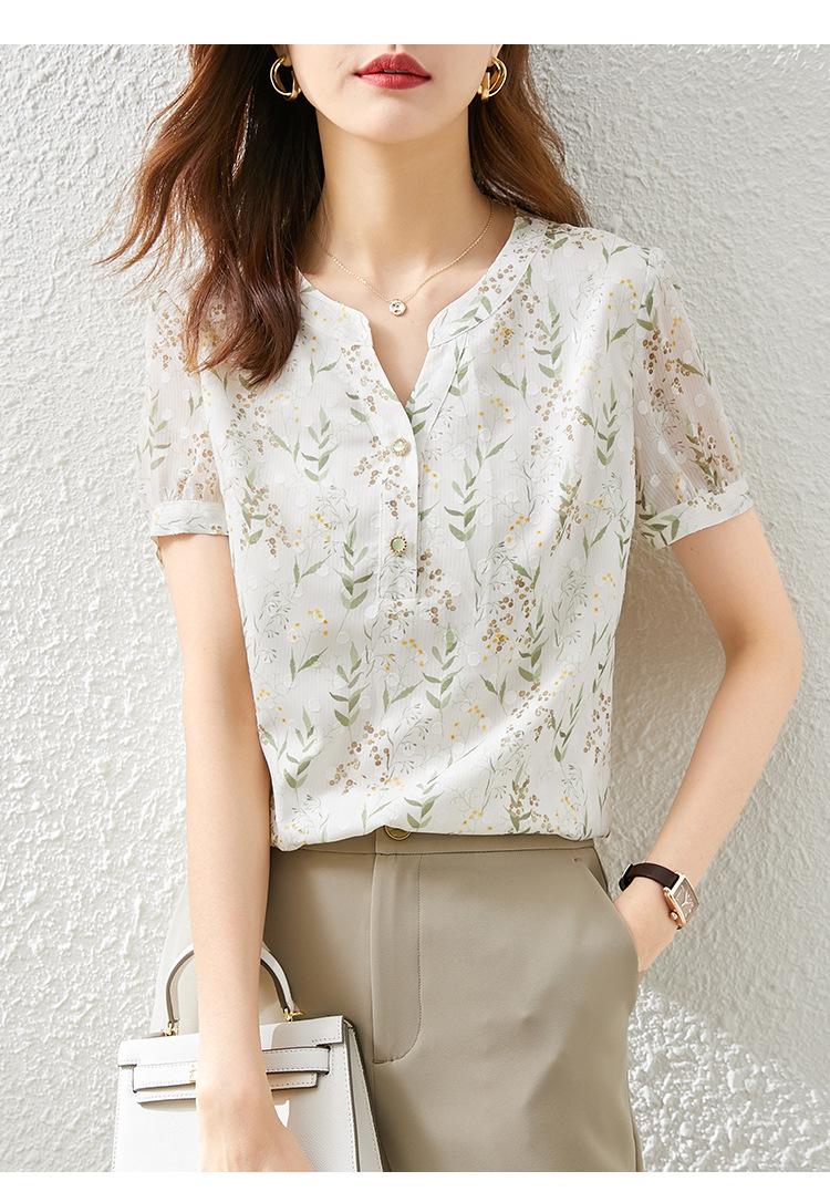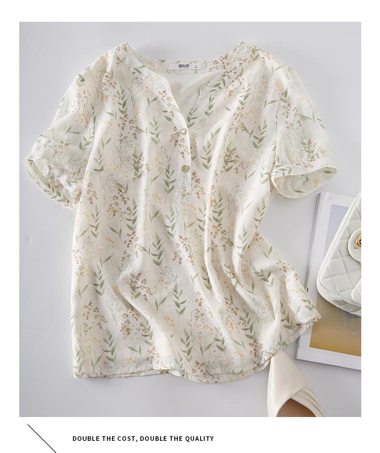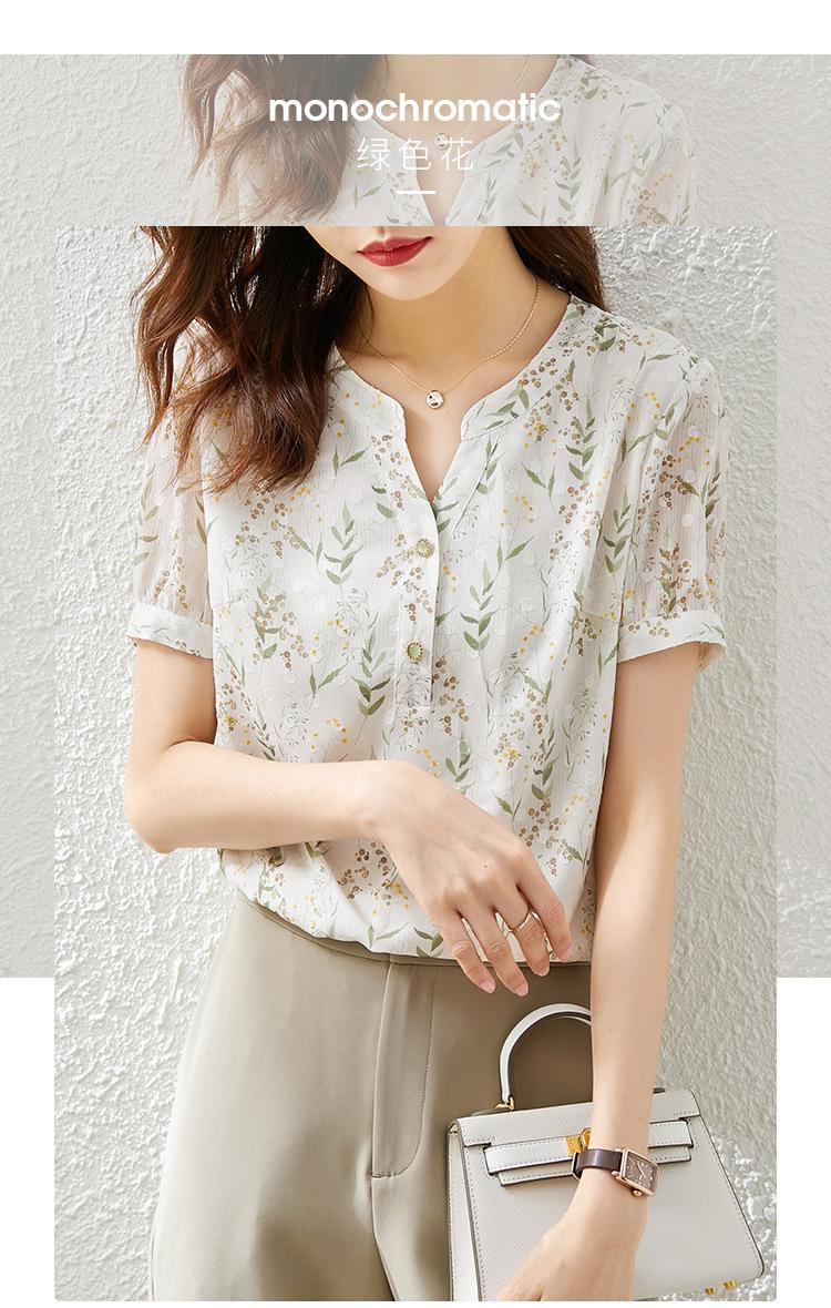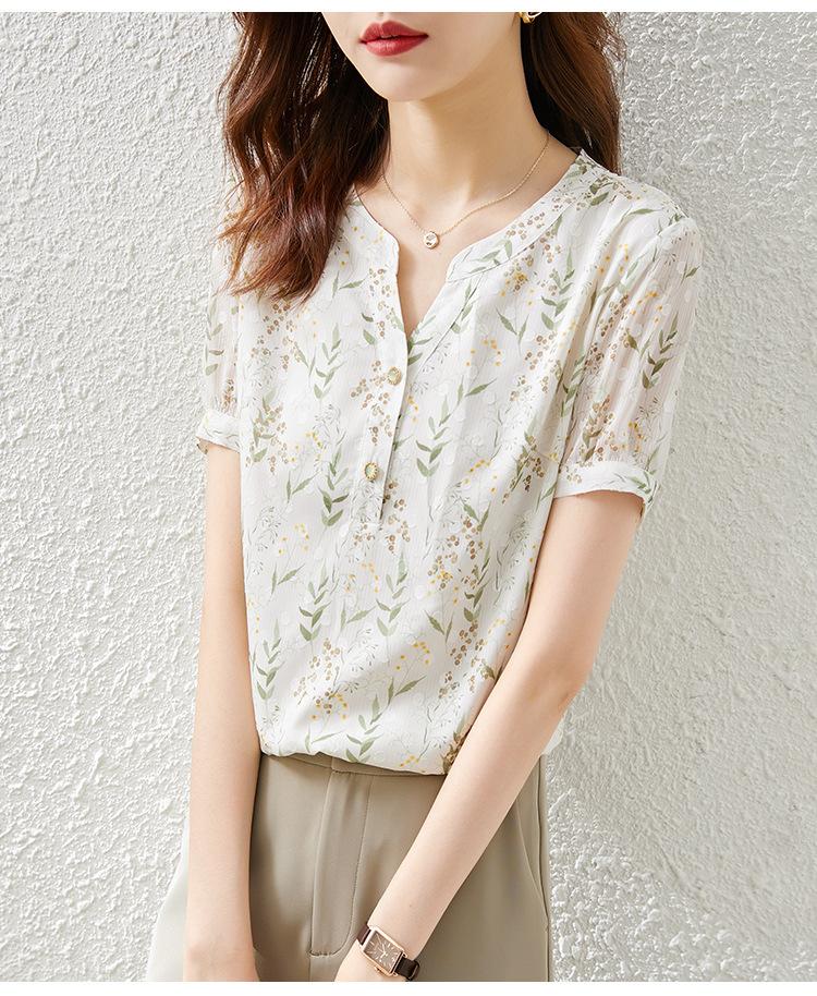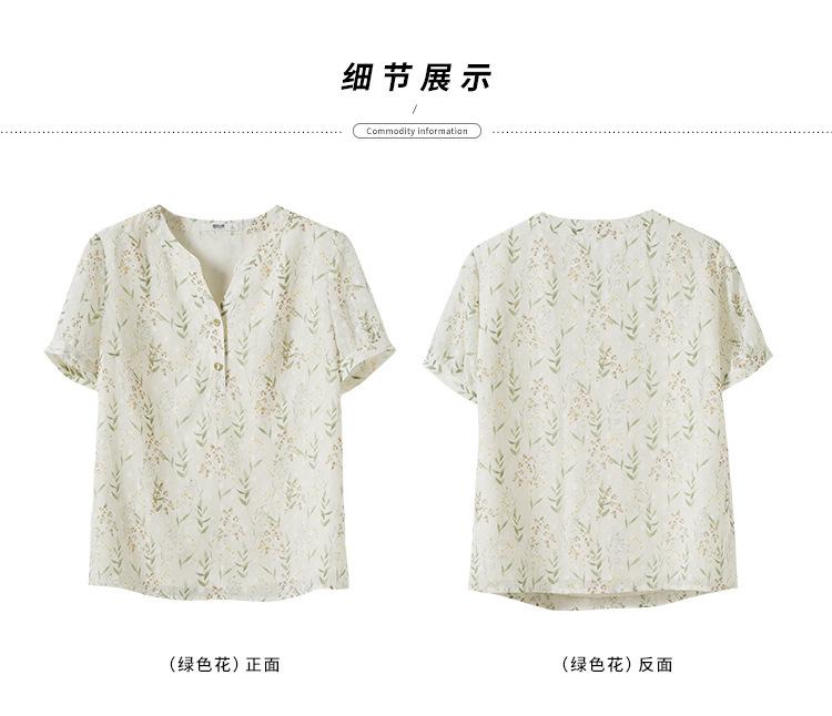 Ropa Nueva de Verano 2024, Camisas de Gasa Florales de Manga Corta con Cuello en V Ligeras y Transpirables para Mujer, Ropa Delgada y Versátil