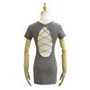 Diseño Europeo y Americano Vestido Cruzado sin Espalda con Aberturas para Mujer 2024 Verano Nuevo Sexy Ajustado Falda de Cadera