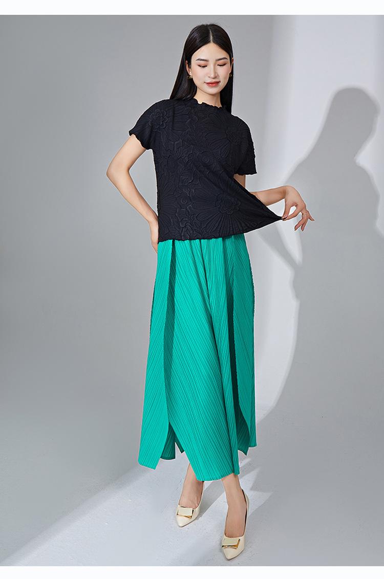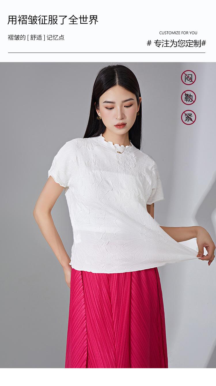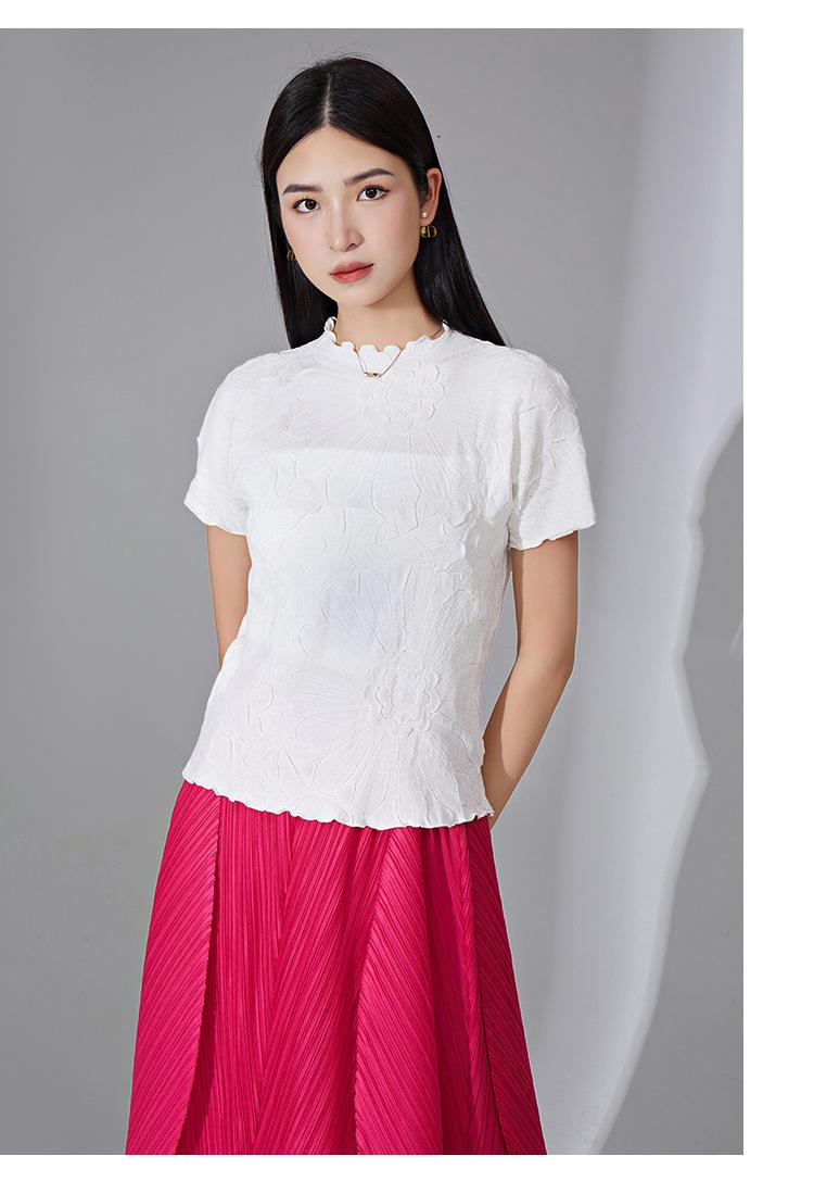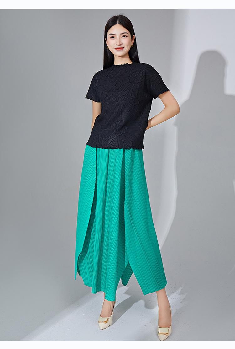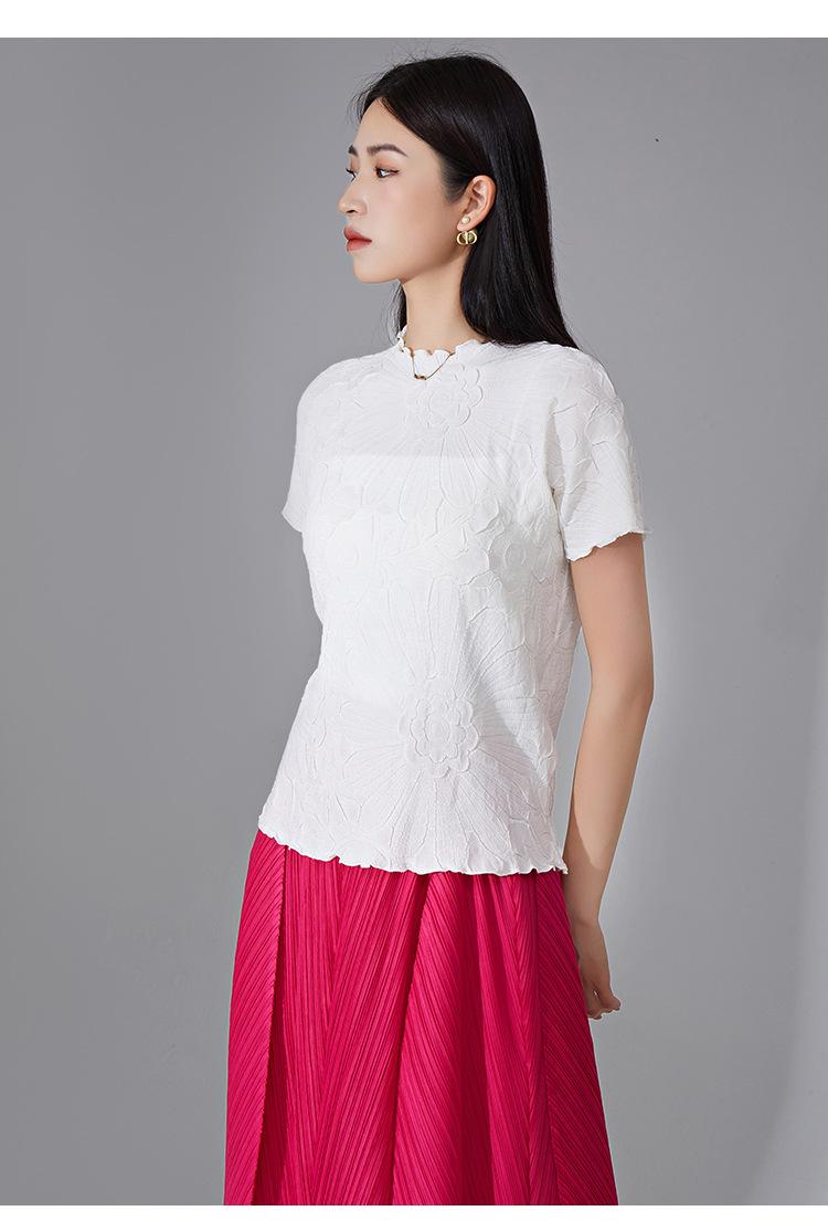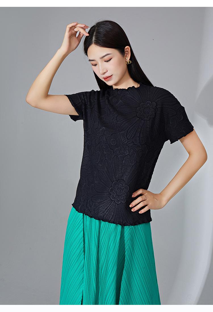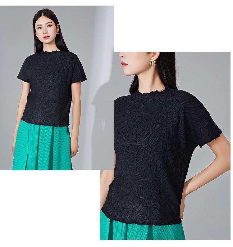 Camiseta de manga corta Miyake para mujer, diseño de ropa de nicho, color liso, combinable, de alta gama, ajustada, con pliegues para uso diario.