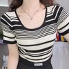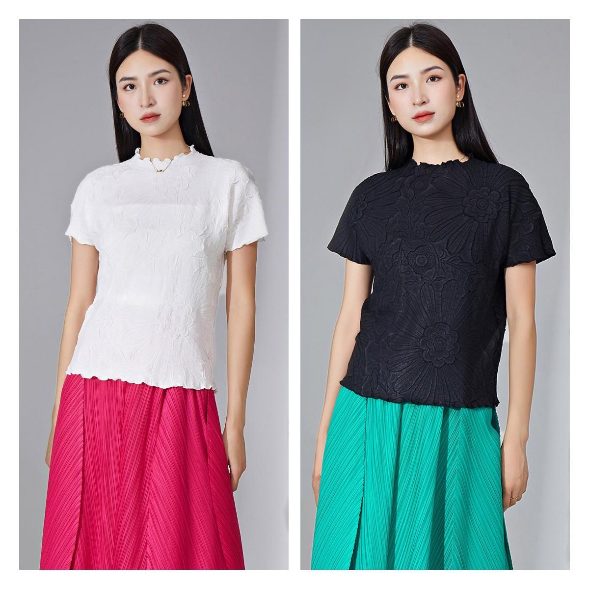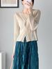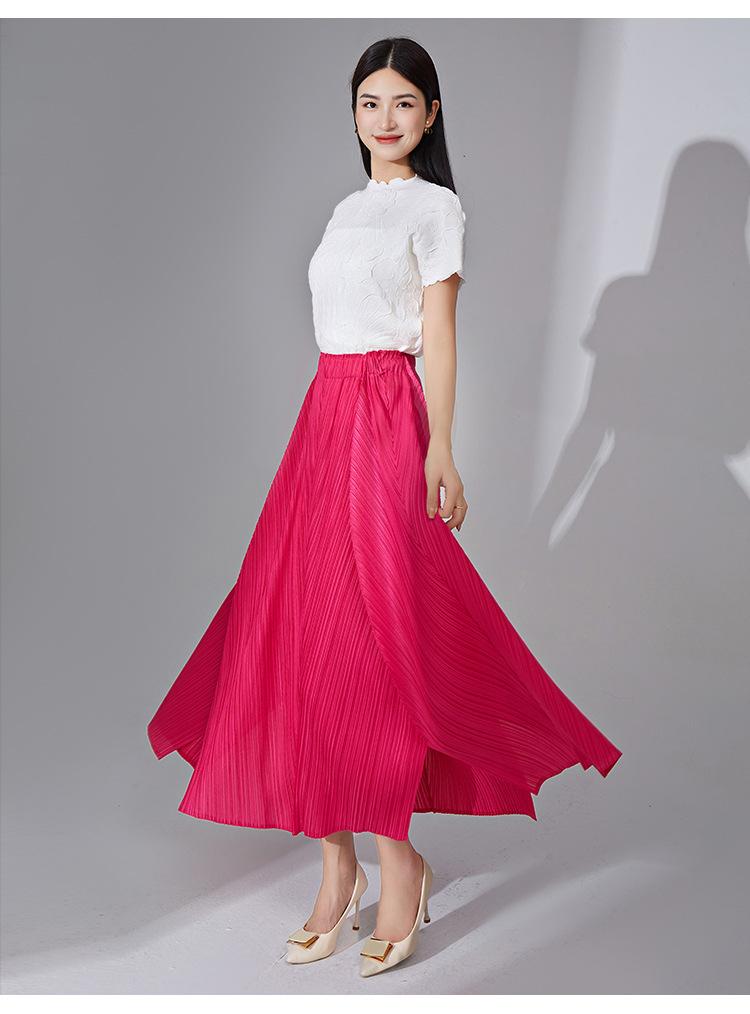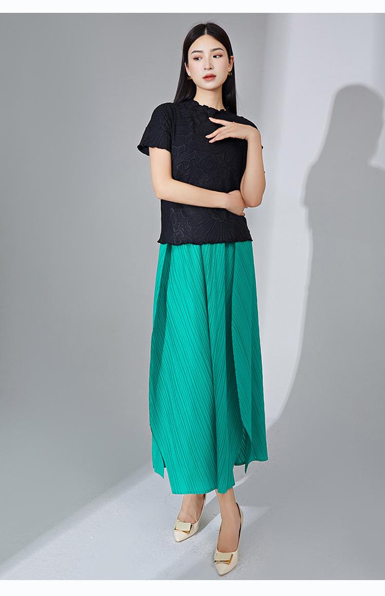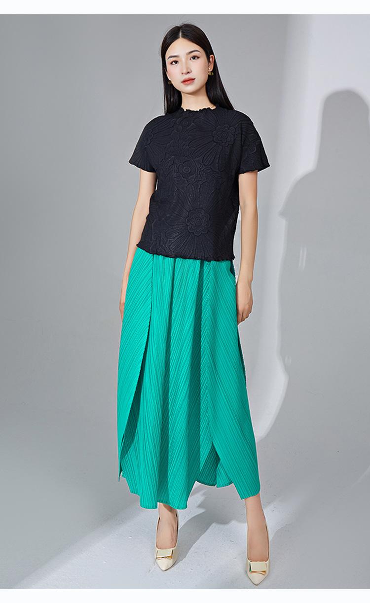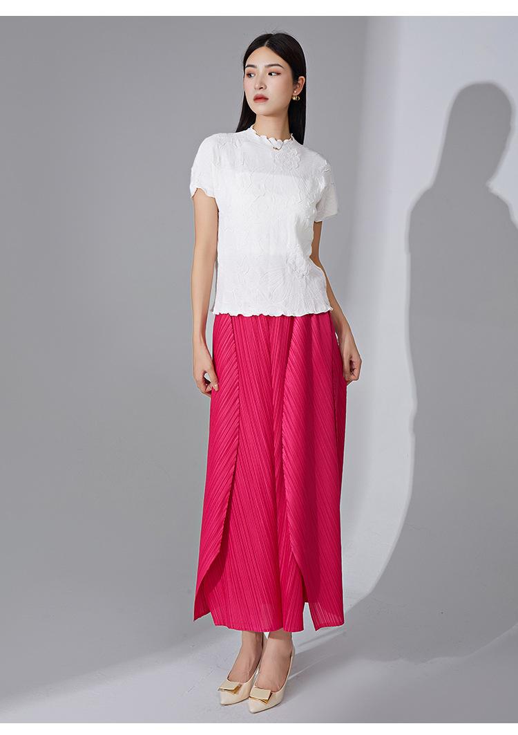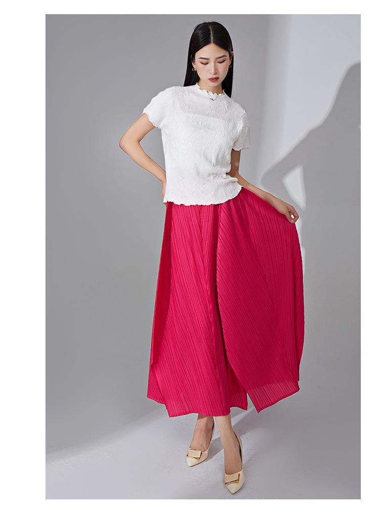 Camiseta de manga corta Miyake para mujer, diseño de ropa de nicho, color liso, combinable, de alta gama, ajustada, con pliegues para uso diario.