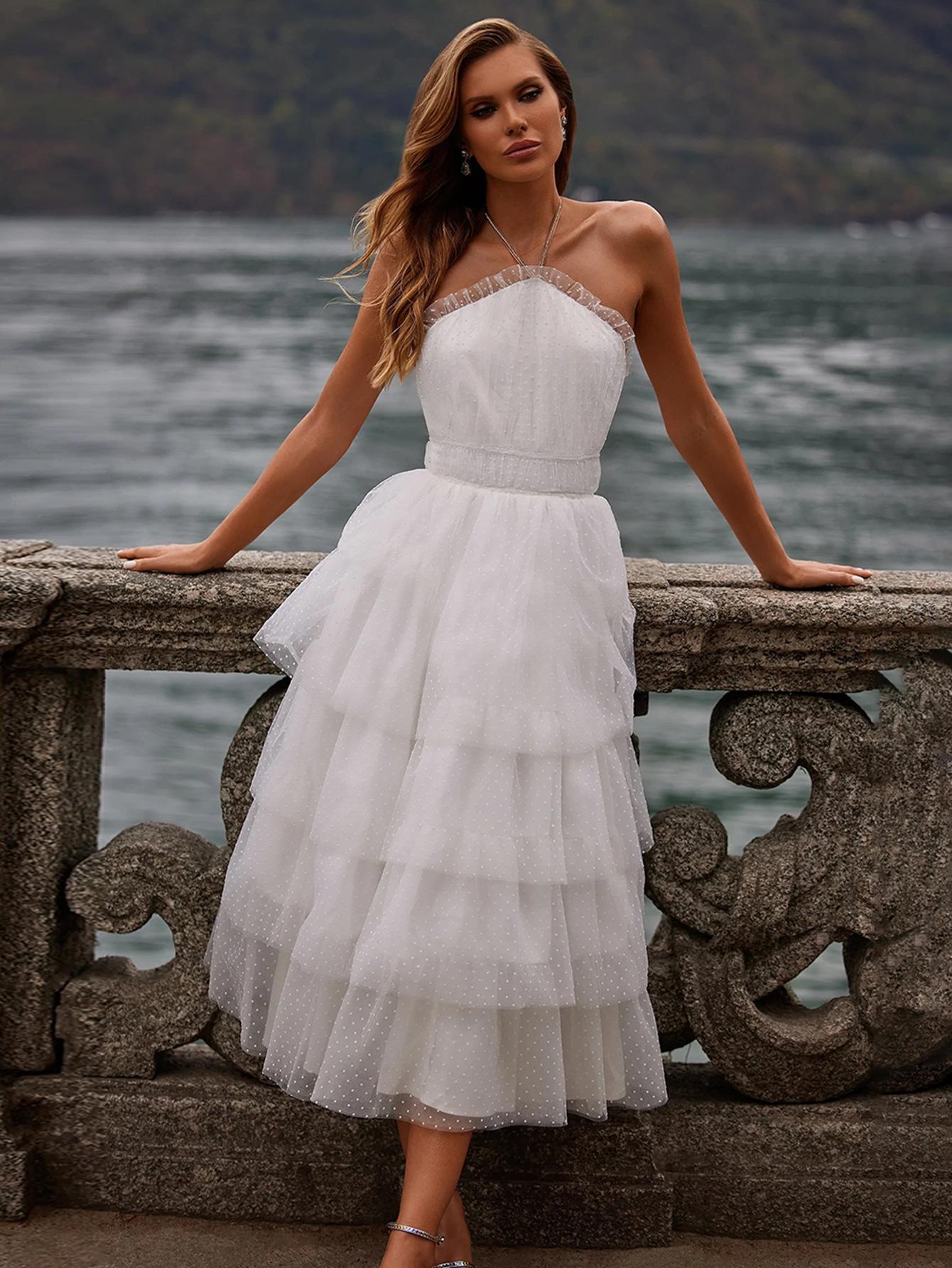 Vestido sin espalda y sin mangas con cuello en V para mujer, comercio exterior de Amazon, Europa y América, 2023
