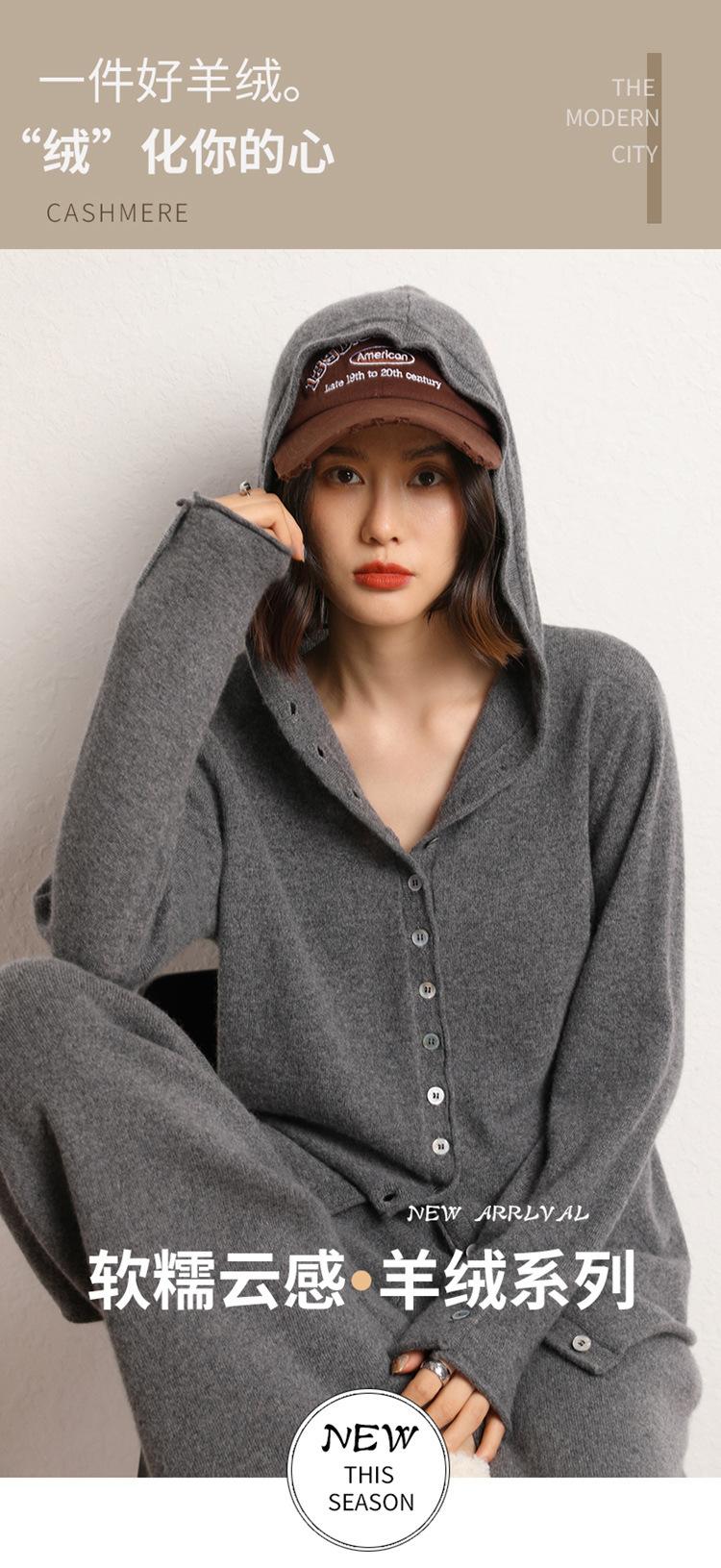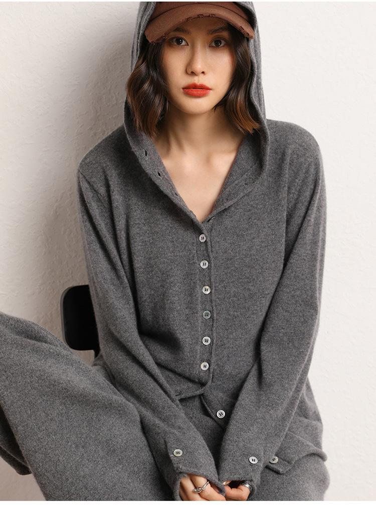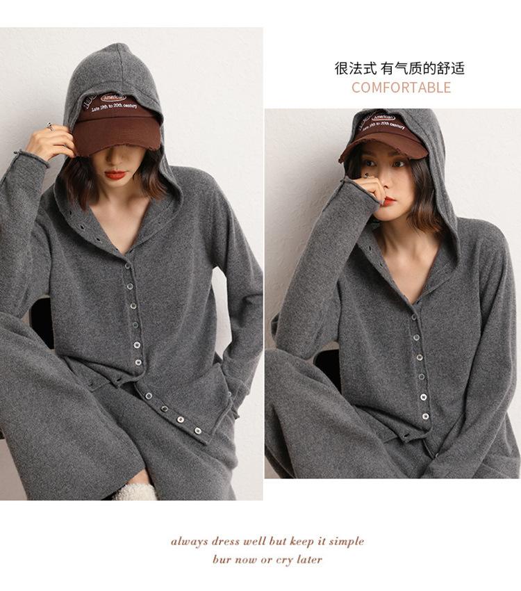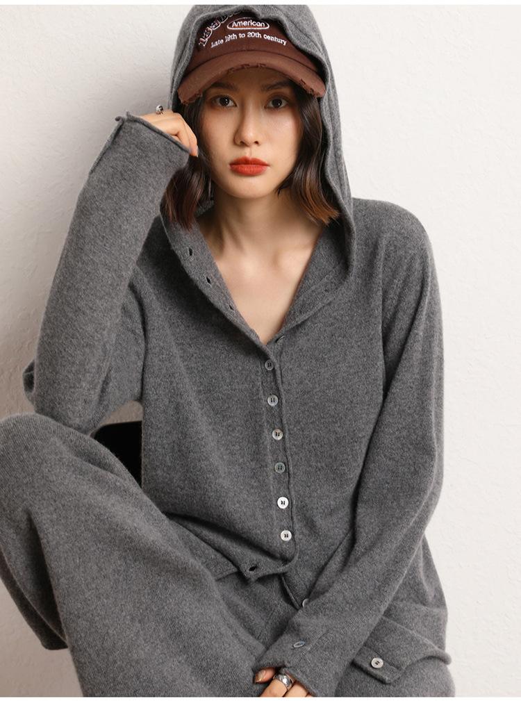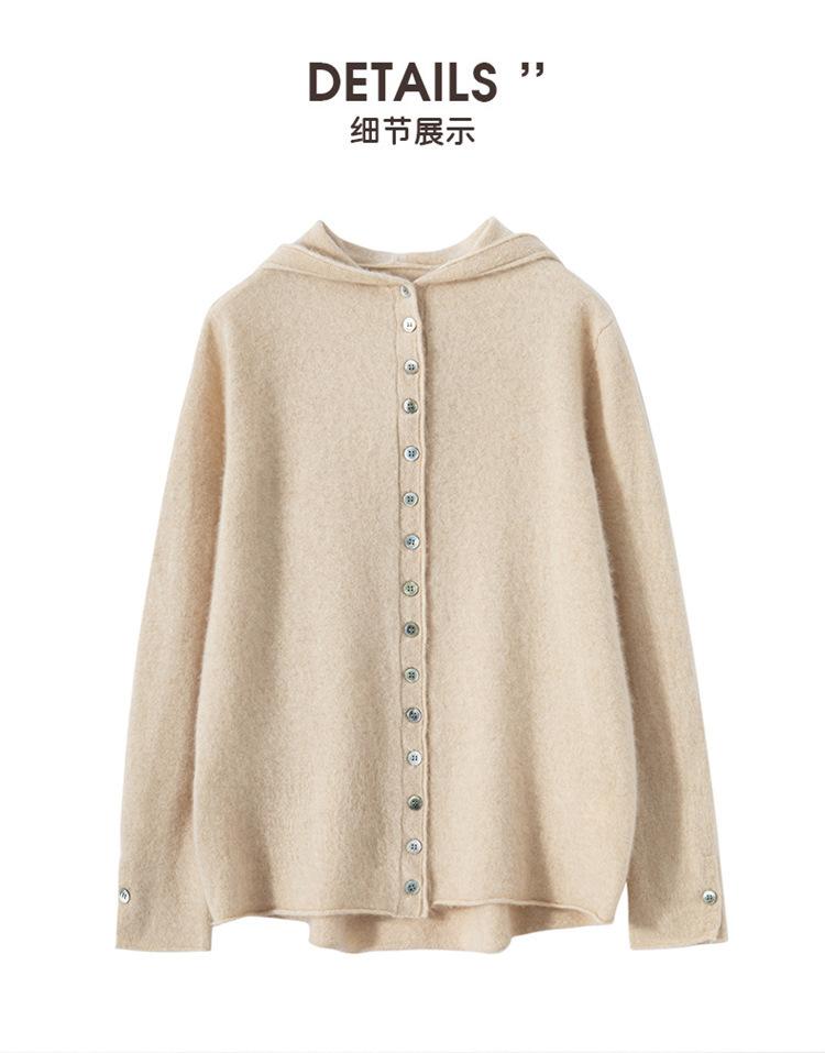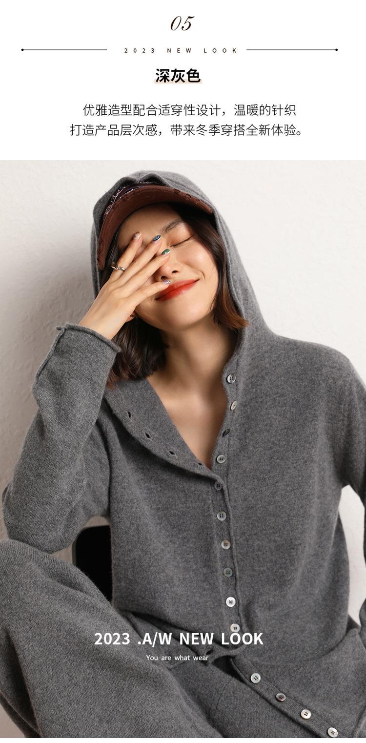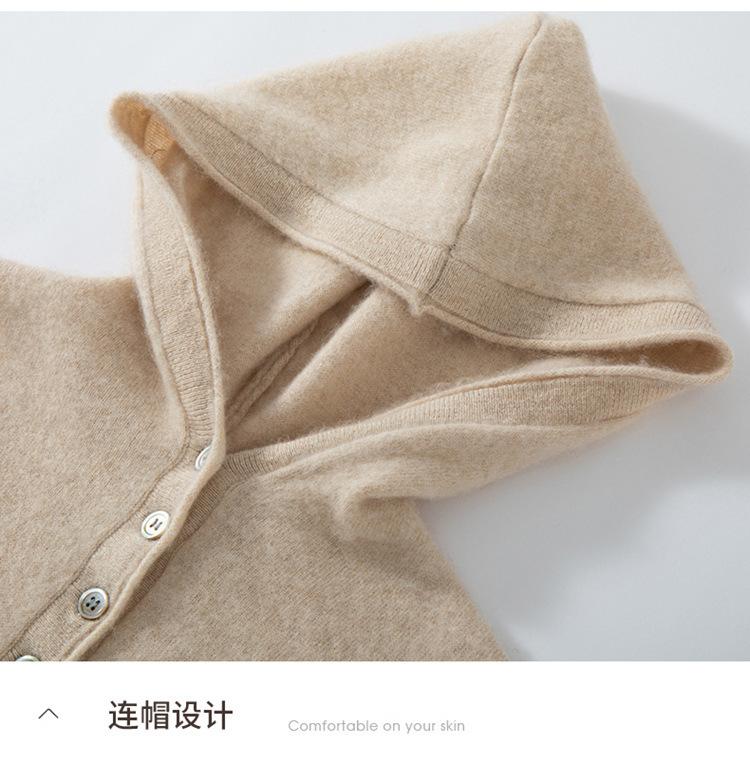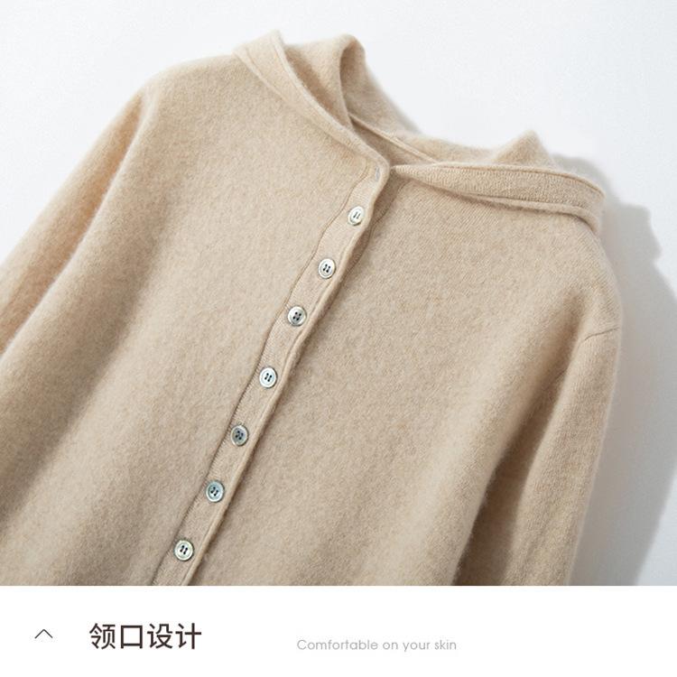 2025 Nuevo Otoño e Invierno Cachemira Mujer Suéter Cárdigan Tejido Holgado Corto con Capucha Monoprenda Color Puro