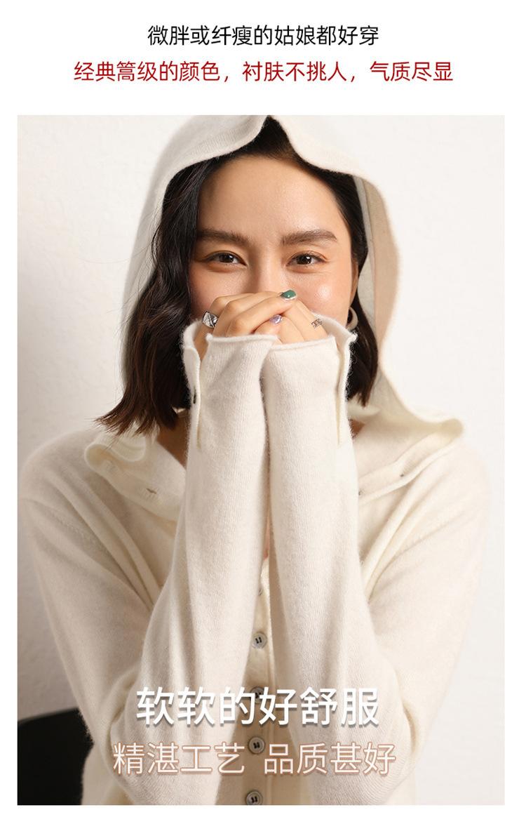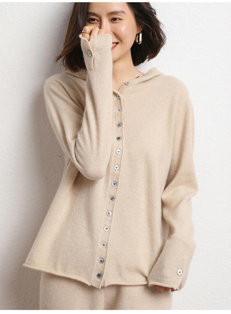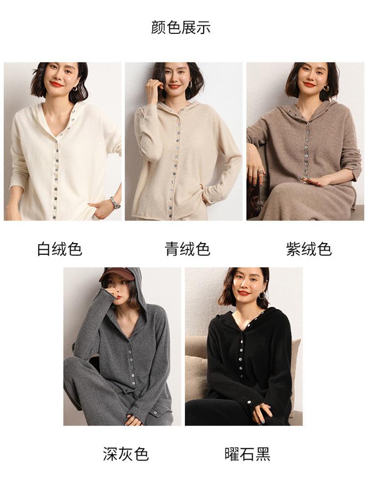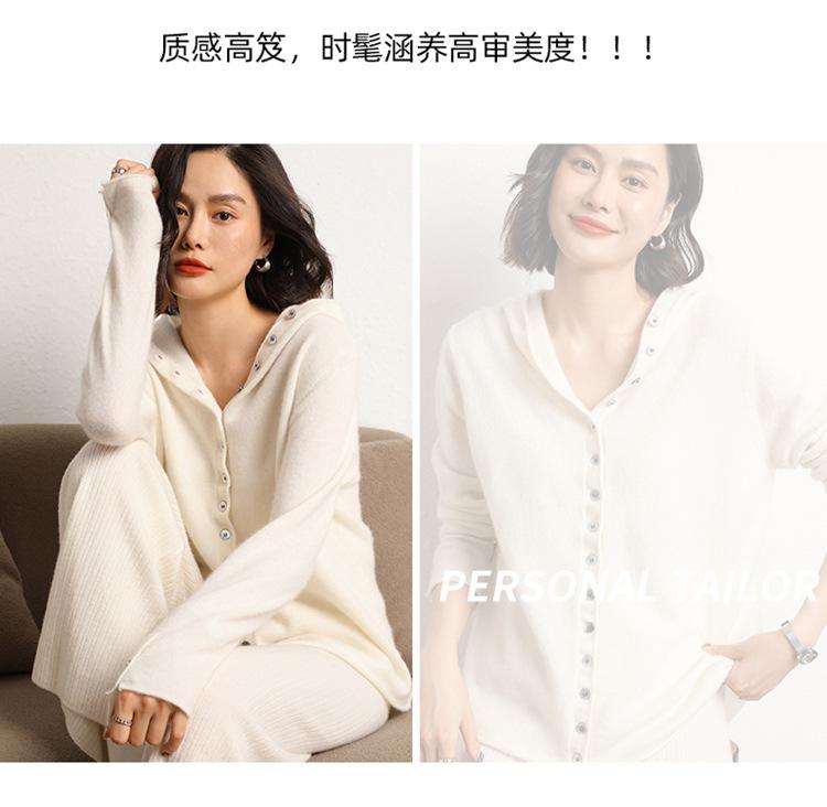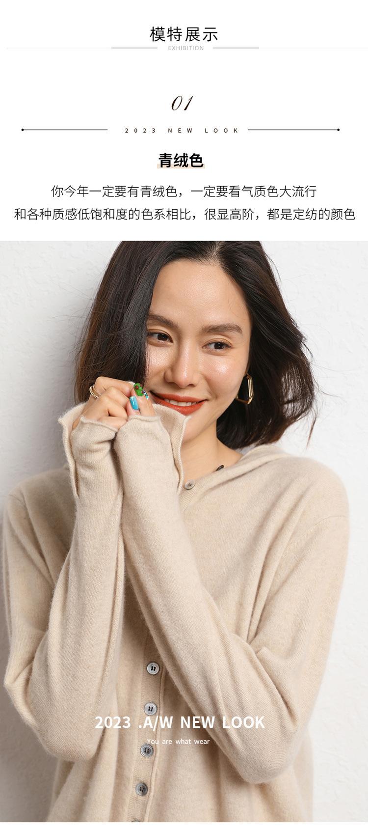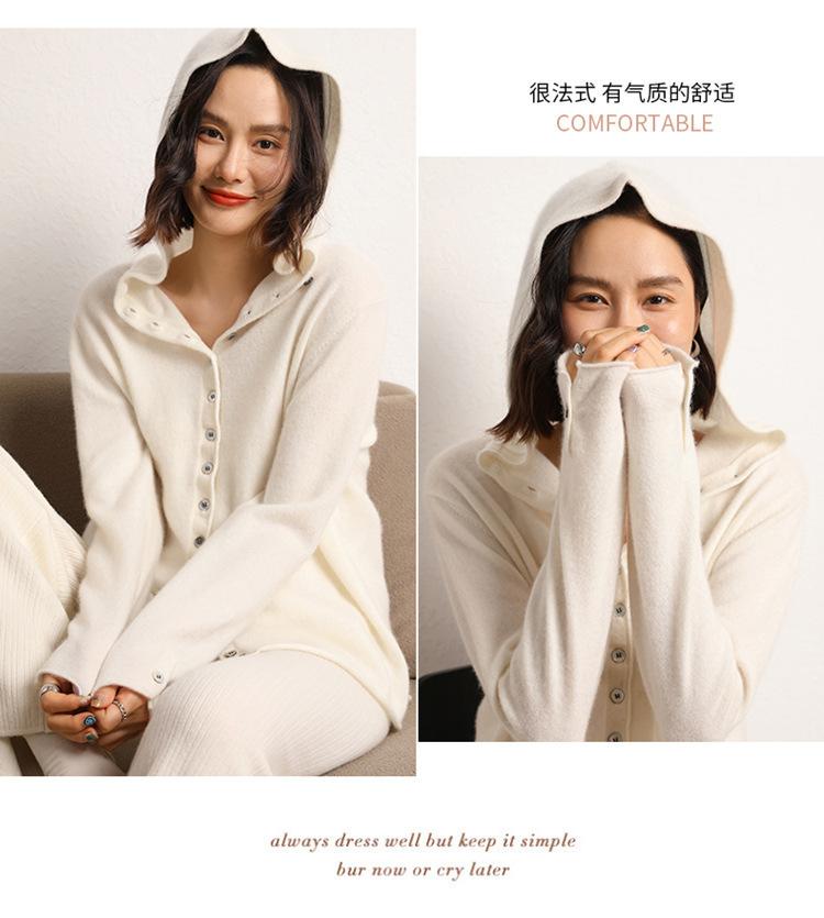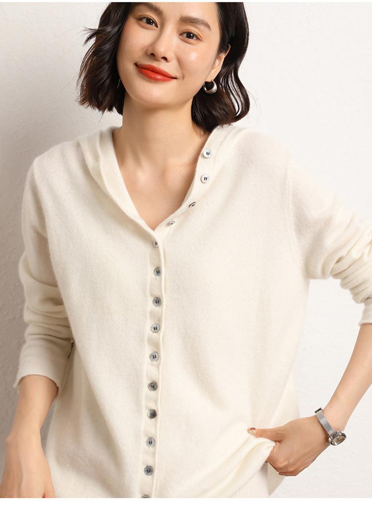 2025 Nuevo Otoño e Invierno Cachemira Mujer Suéter Cárdigan Tejido Holgado Corto con Capucha Monoprenda Color Puro