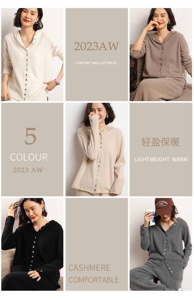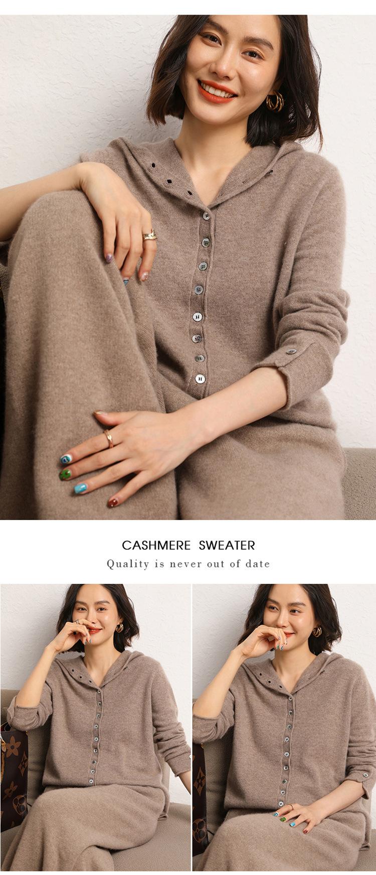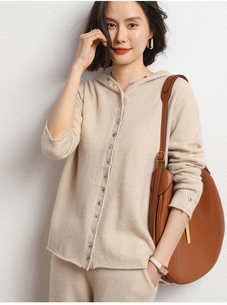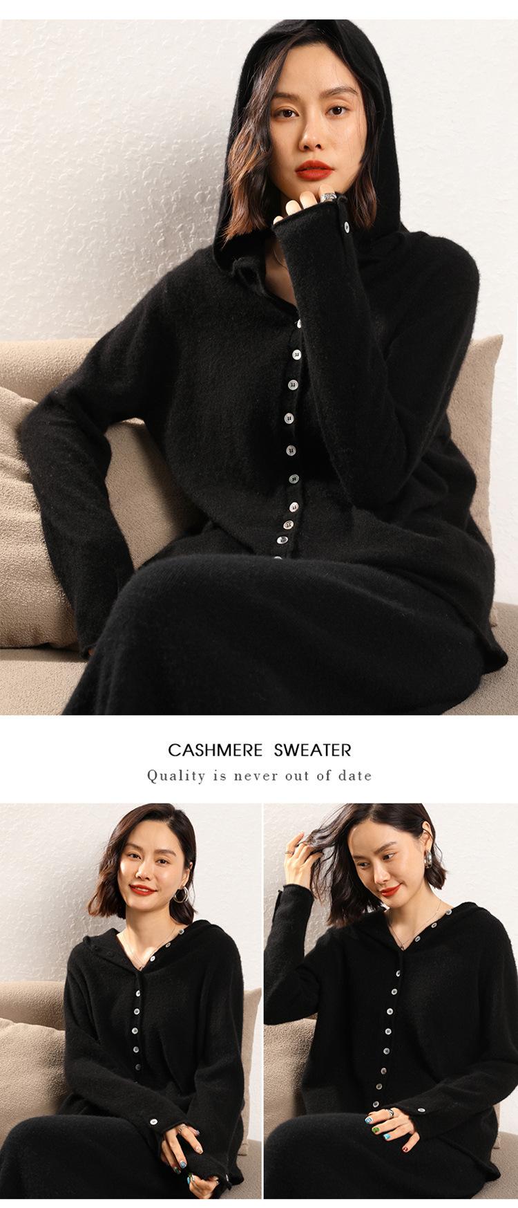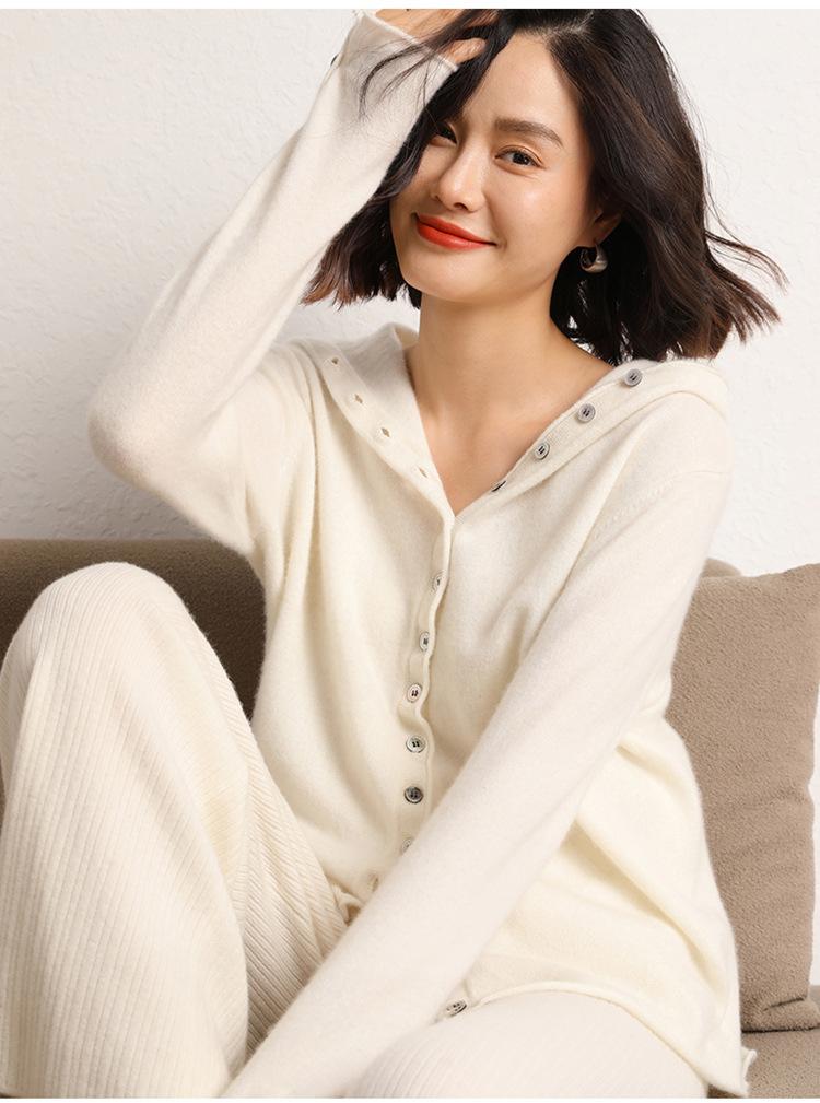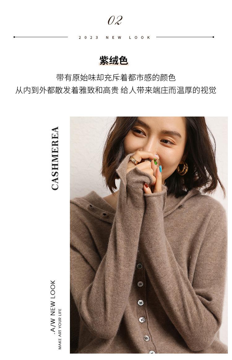 2025 Nuevo Otoño e Invierno Cachemira Mujer Suéter Cárdigan Tejido Holgado Corto con Capucha Monoprenda Color Puro