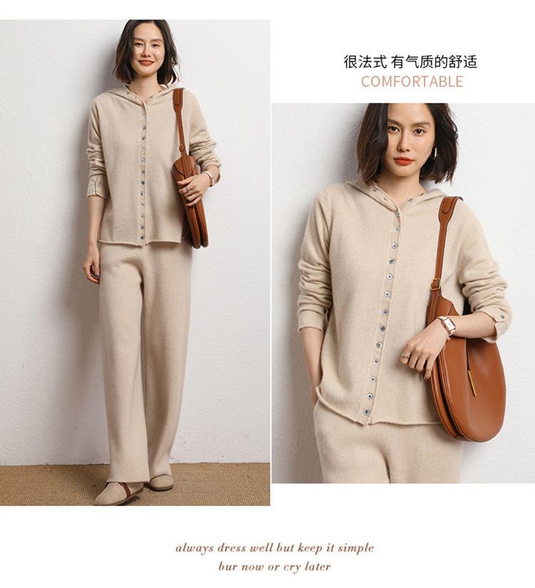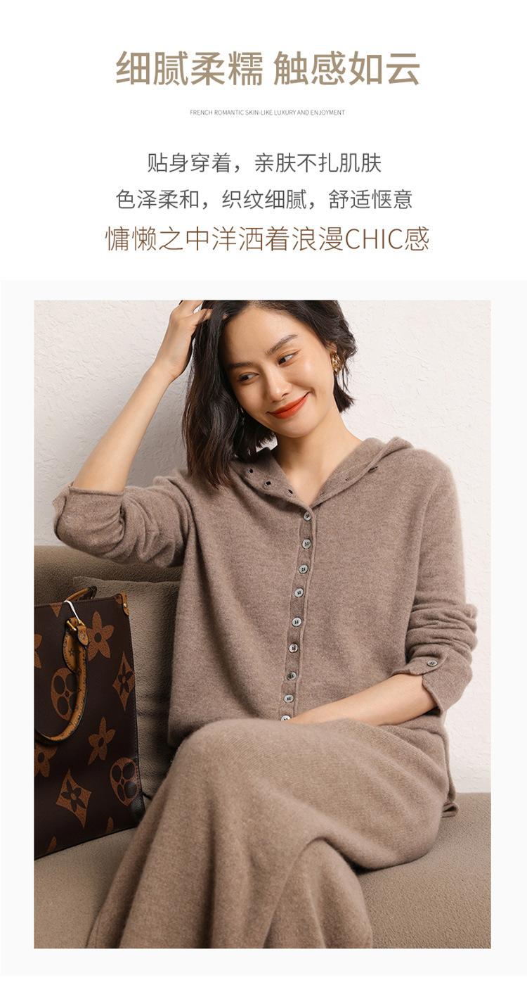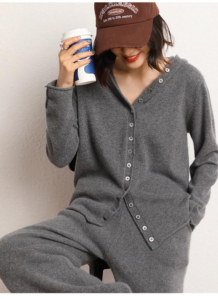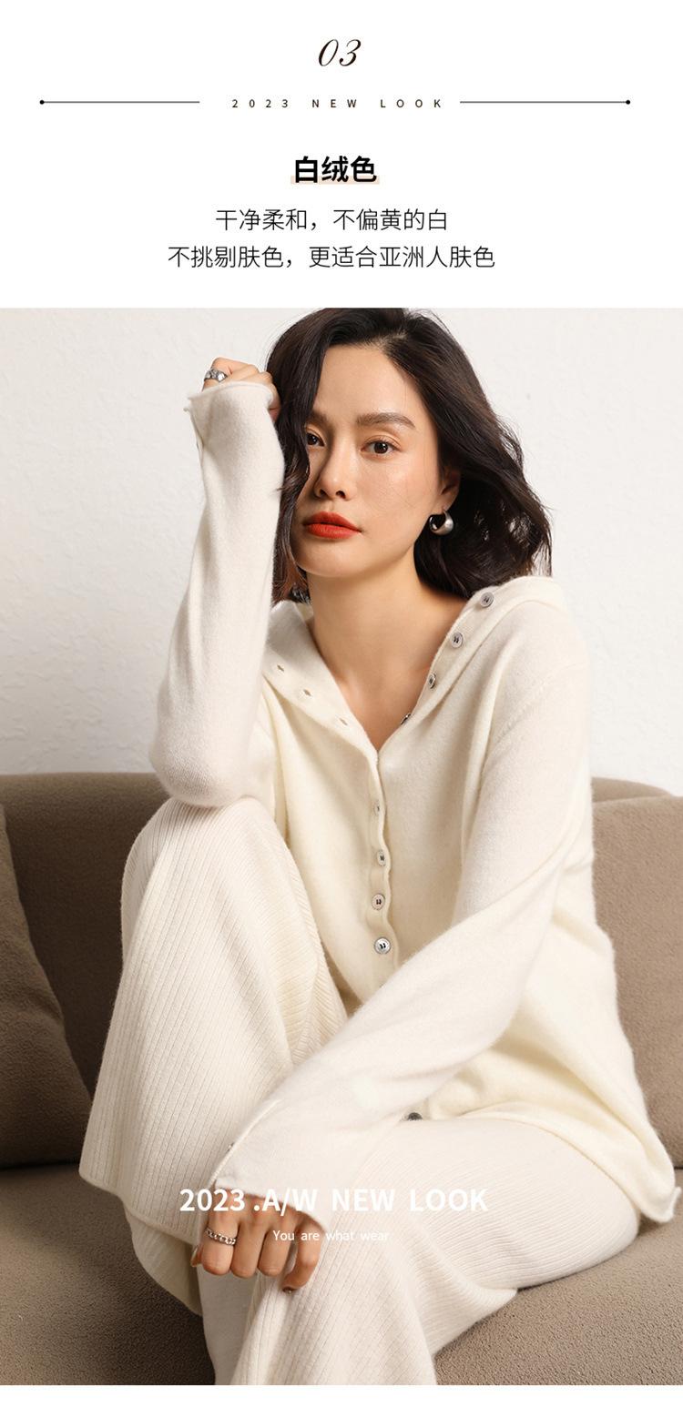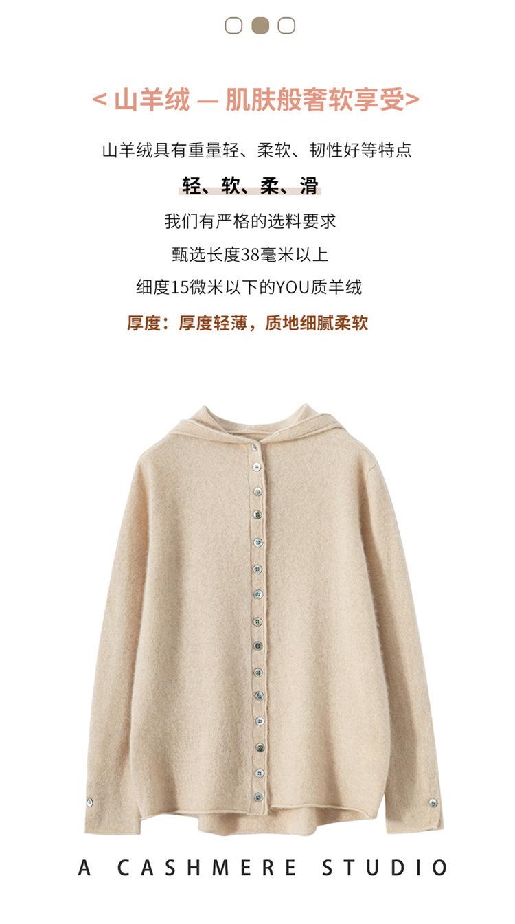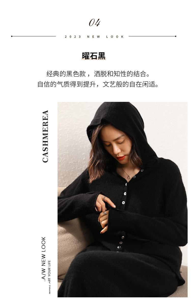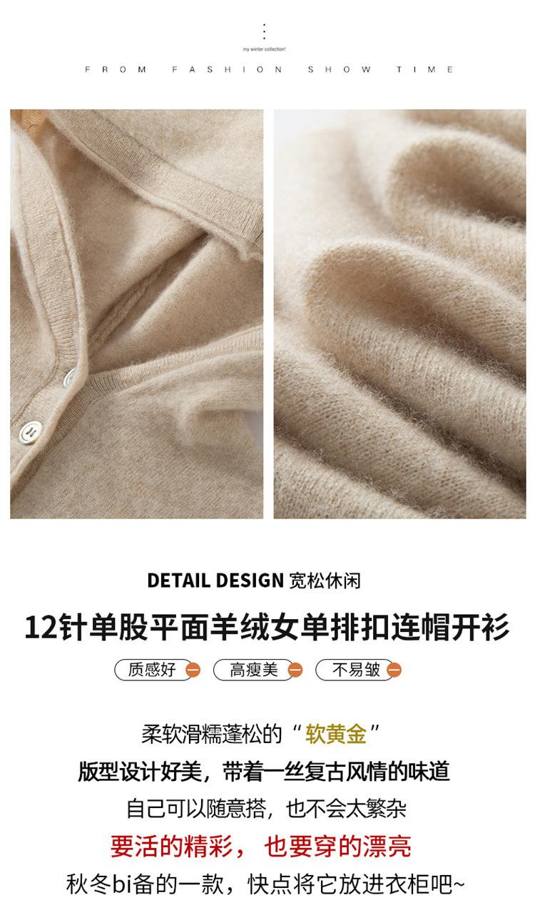 2025 Nuevo Otoño e Invierno Cachemira Mujer Suéter Cárdigan Tejido Holgado Corto con Capucha Monoprenda Color Puro