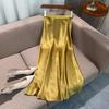 Nueva Falda Larga Amarilla Estampada de Satén para Mujer China 2025 Nueva Cintura Alta Adelgazante Línea A
