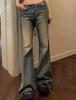 Pantalones vaqueros de estilo americano vintage lavados con microcampana para mujer, otoño 2023, sexys, de cintura baja y pierna ancha.