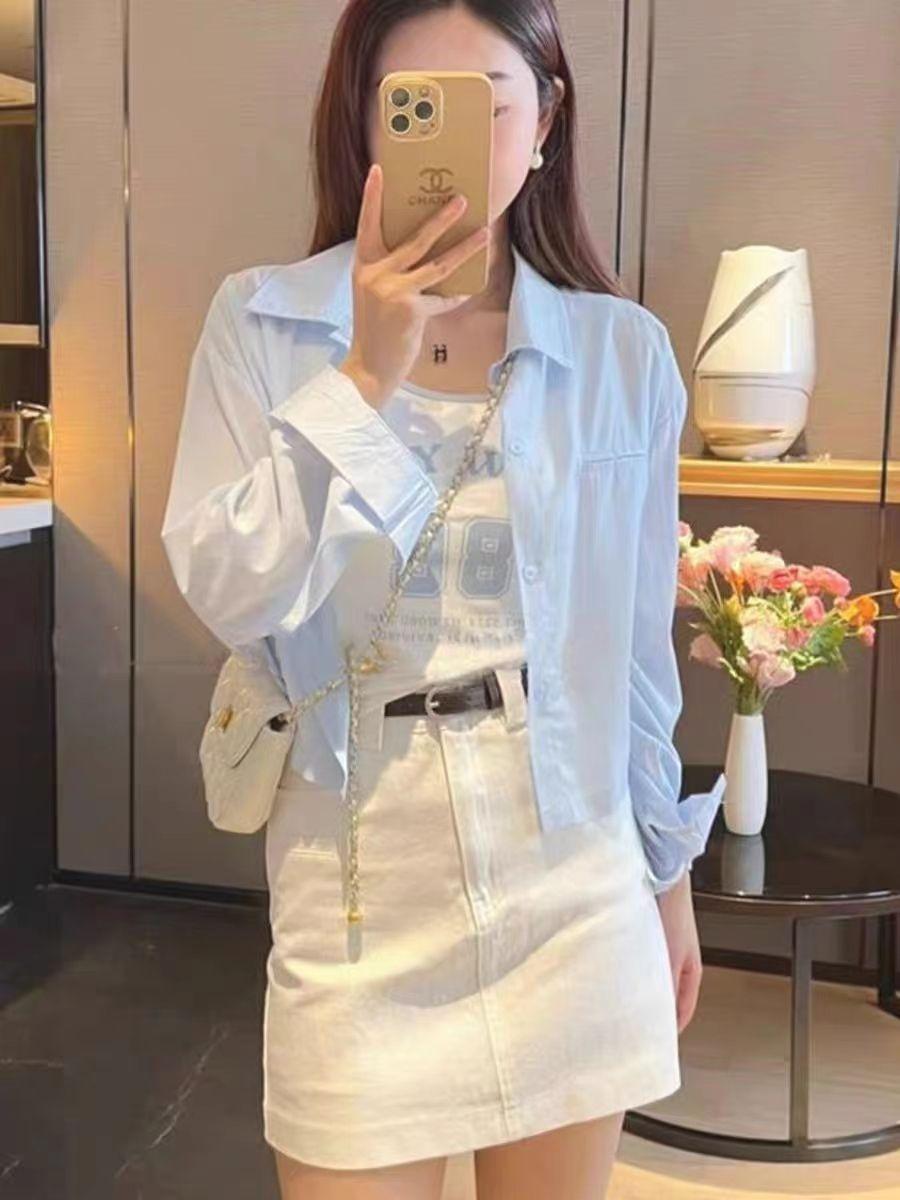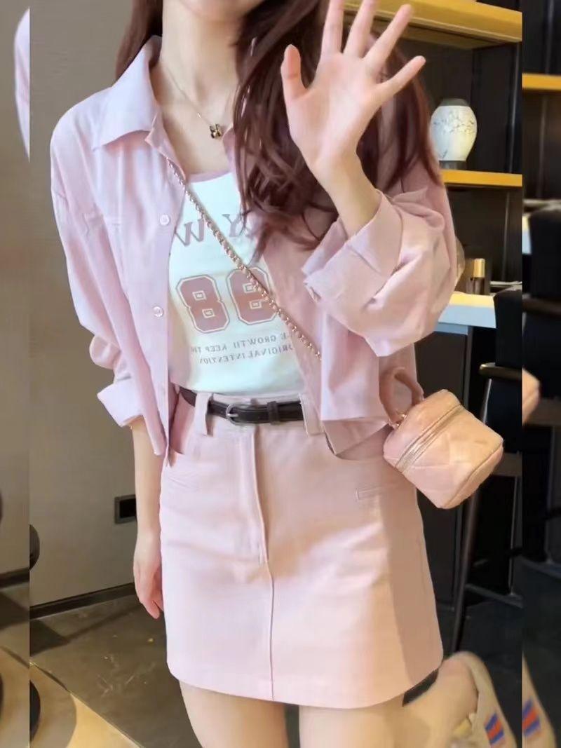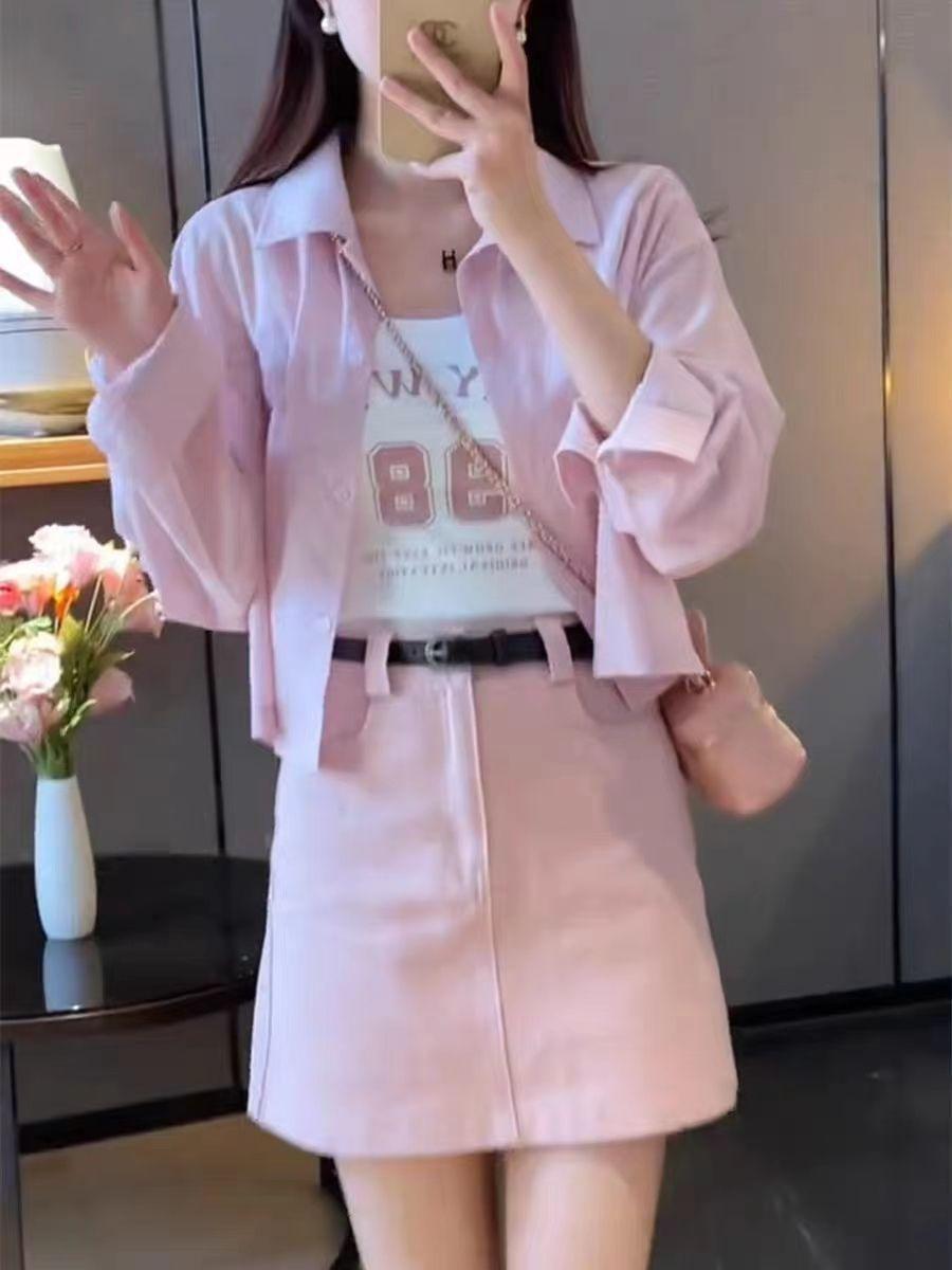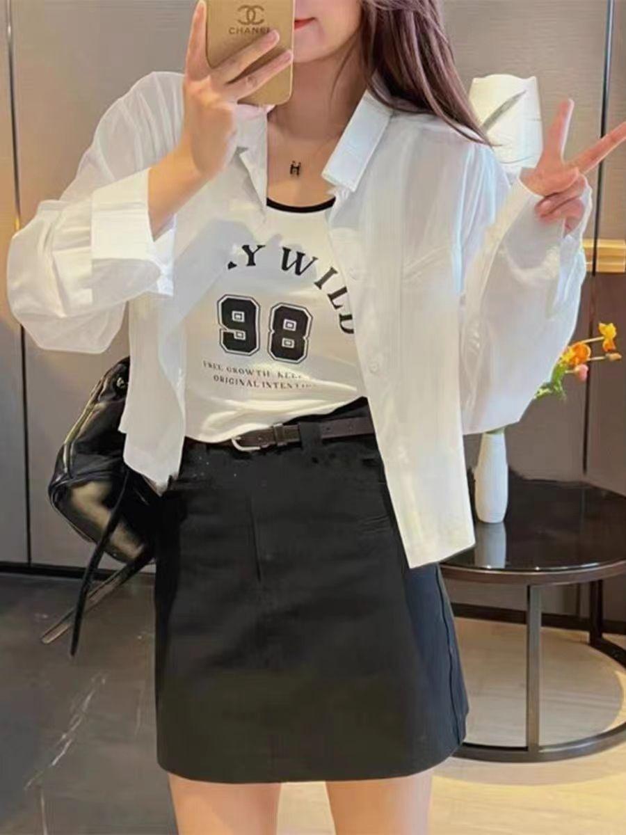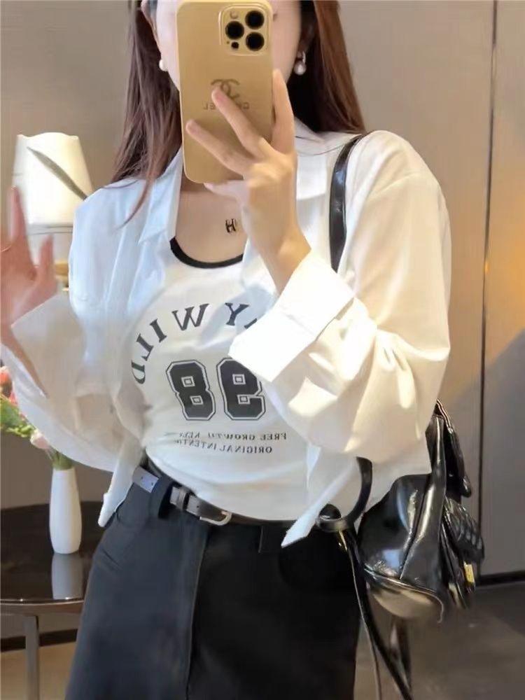 2025 Primavera y Otoño Nueva Moda Estilo Coreano Más Fácil de Combinar Camisa Casual de Color Sólido + Chaleco Corto Conjunto de Dos Piezas para Mujer