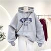 Sudadera con capucha forrada de polar estilo coreano nuevo para otoño/invierno 2025 para mujer, top chaqueta holgado moderno estilo estudiante, ropa de mujer al por mayor