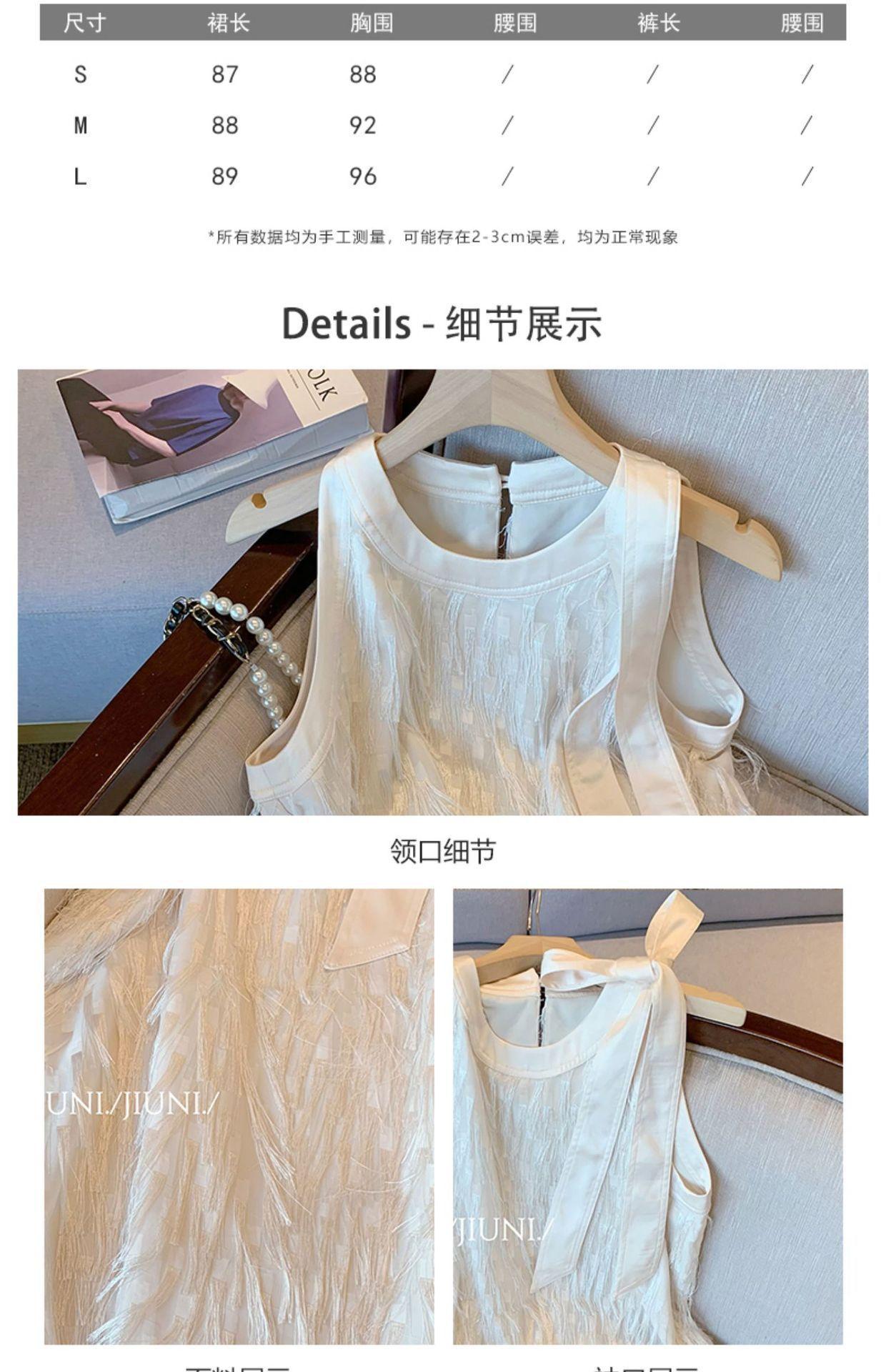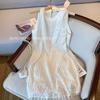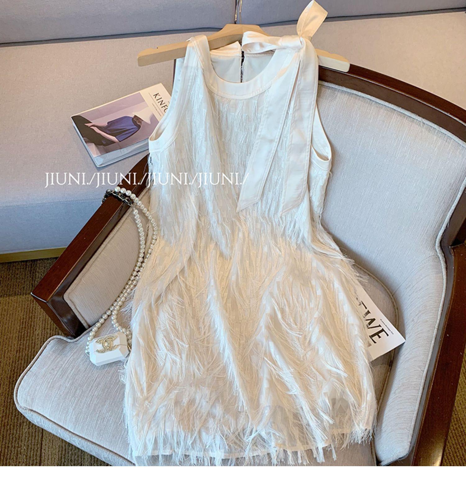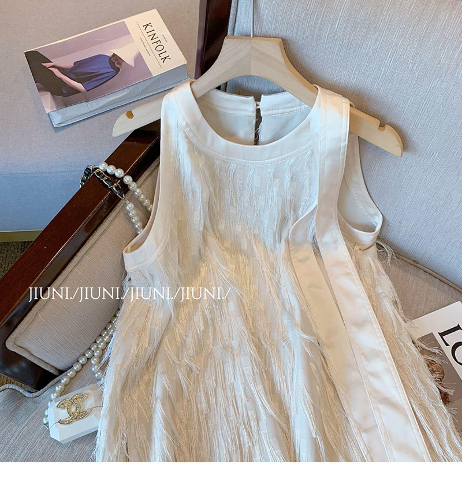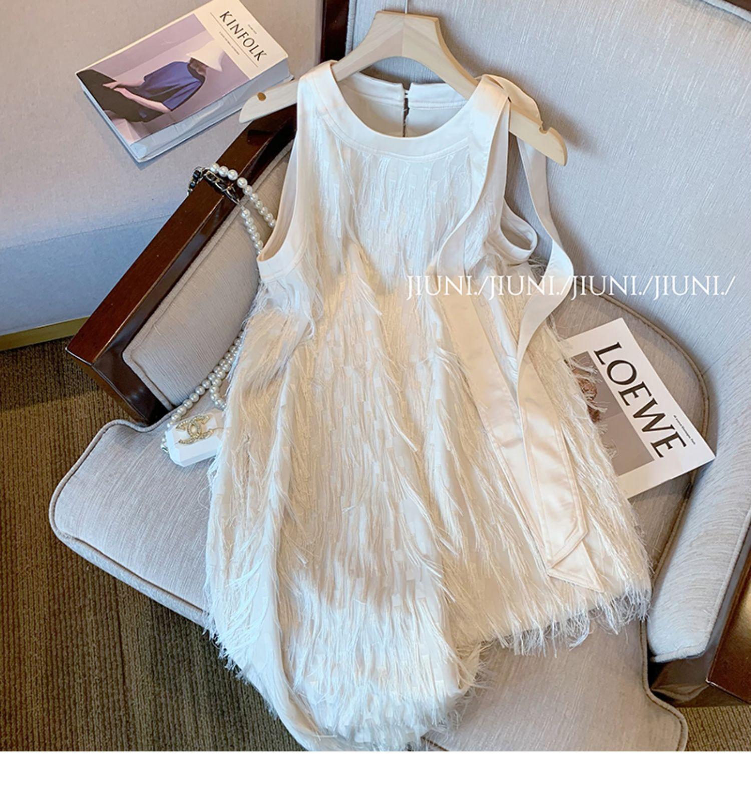 Vestido halter sin mangas con borlas blancas francesas para mujer 2025 Verano Nuevo Elegante Dama Falda con tirantes de alta gama