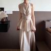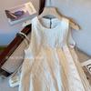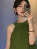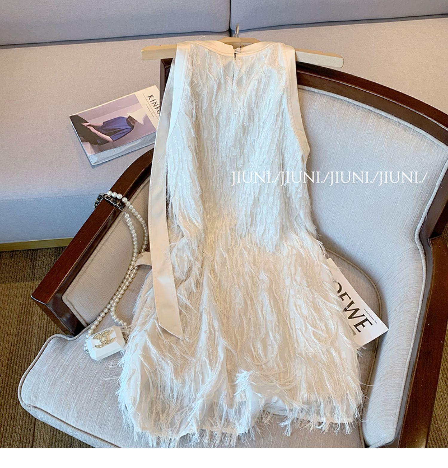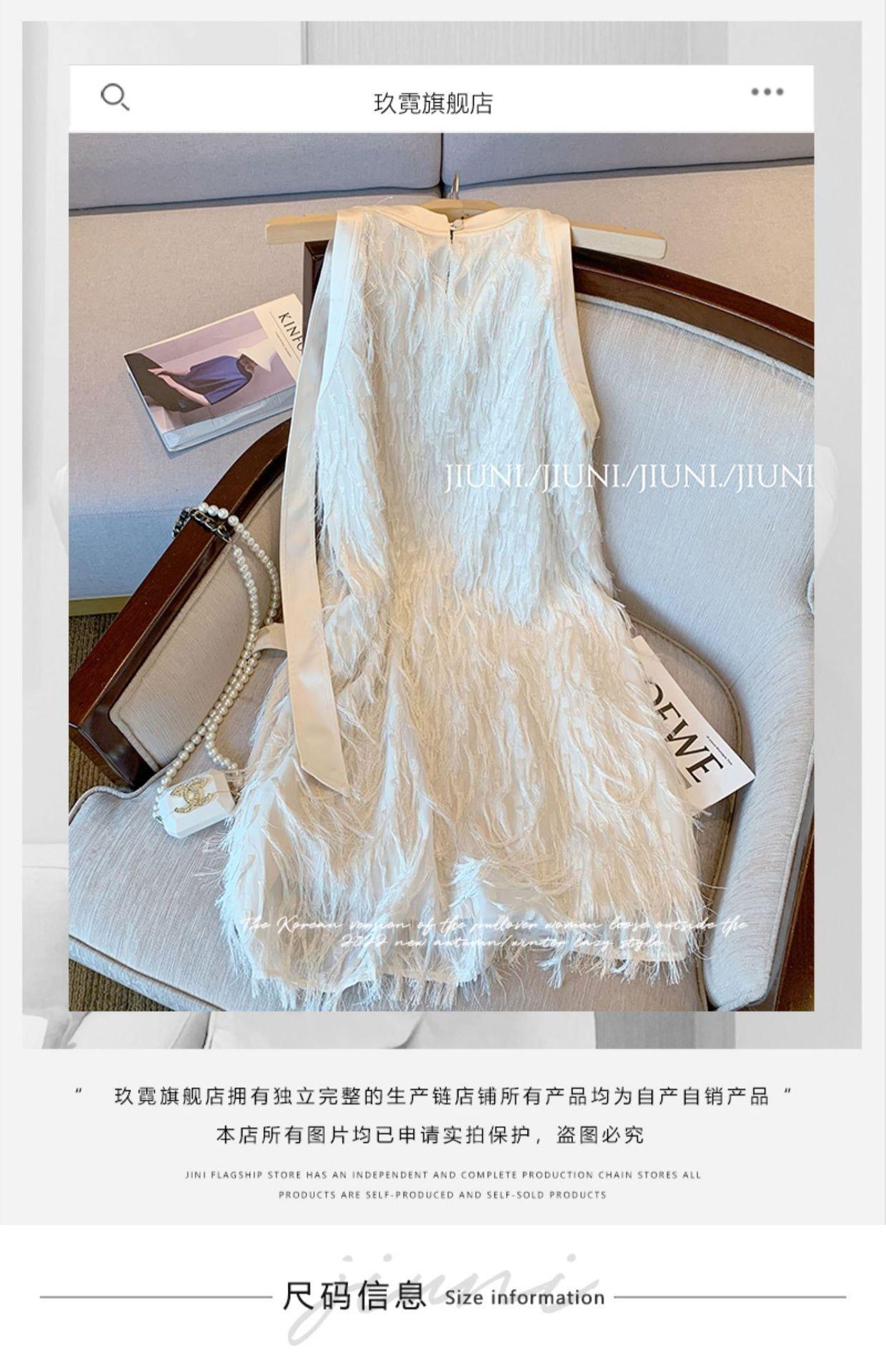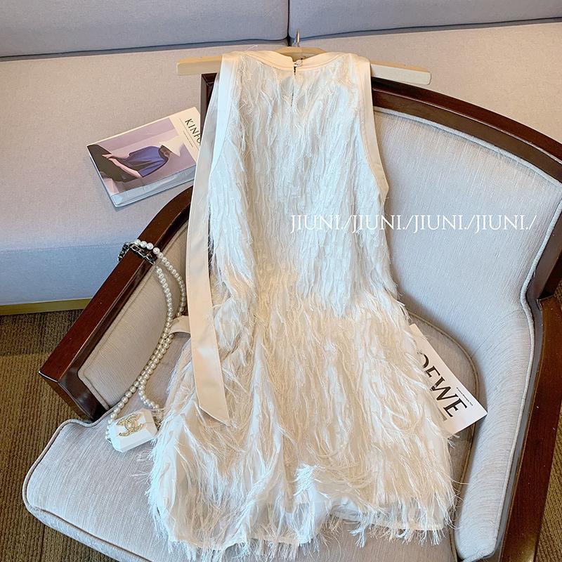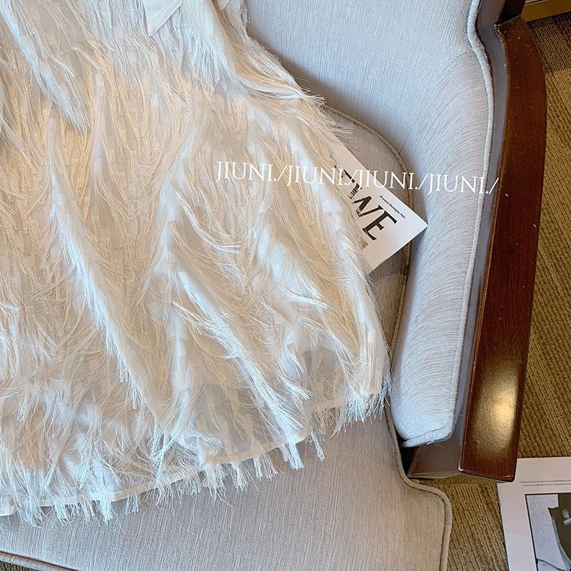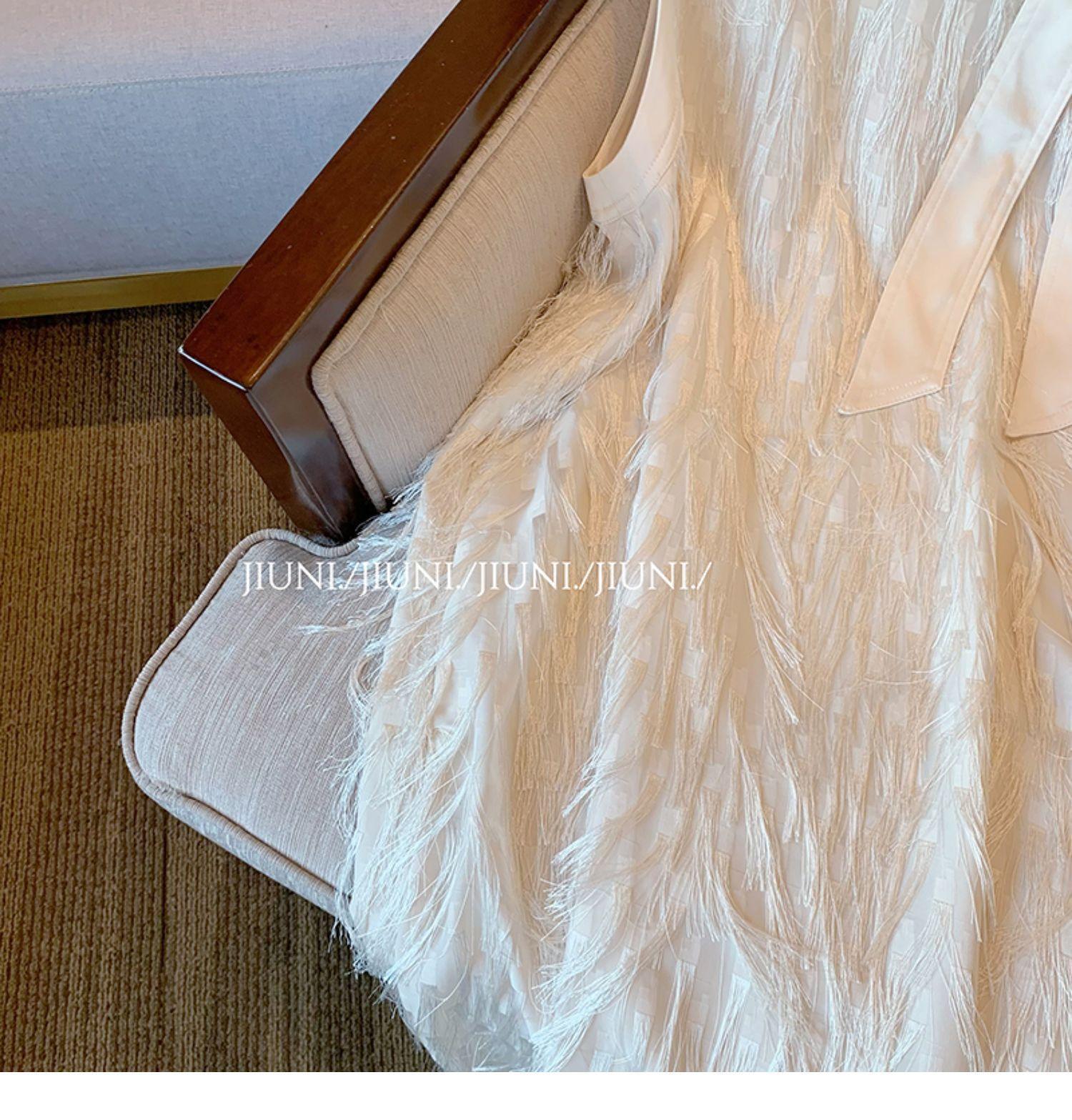 Vestido halter sin mangas con borlas blancas francesas para mujer 2025 Verano Nuevo Elegante Dama Falda con tirantes de alta gama