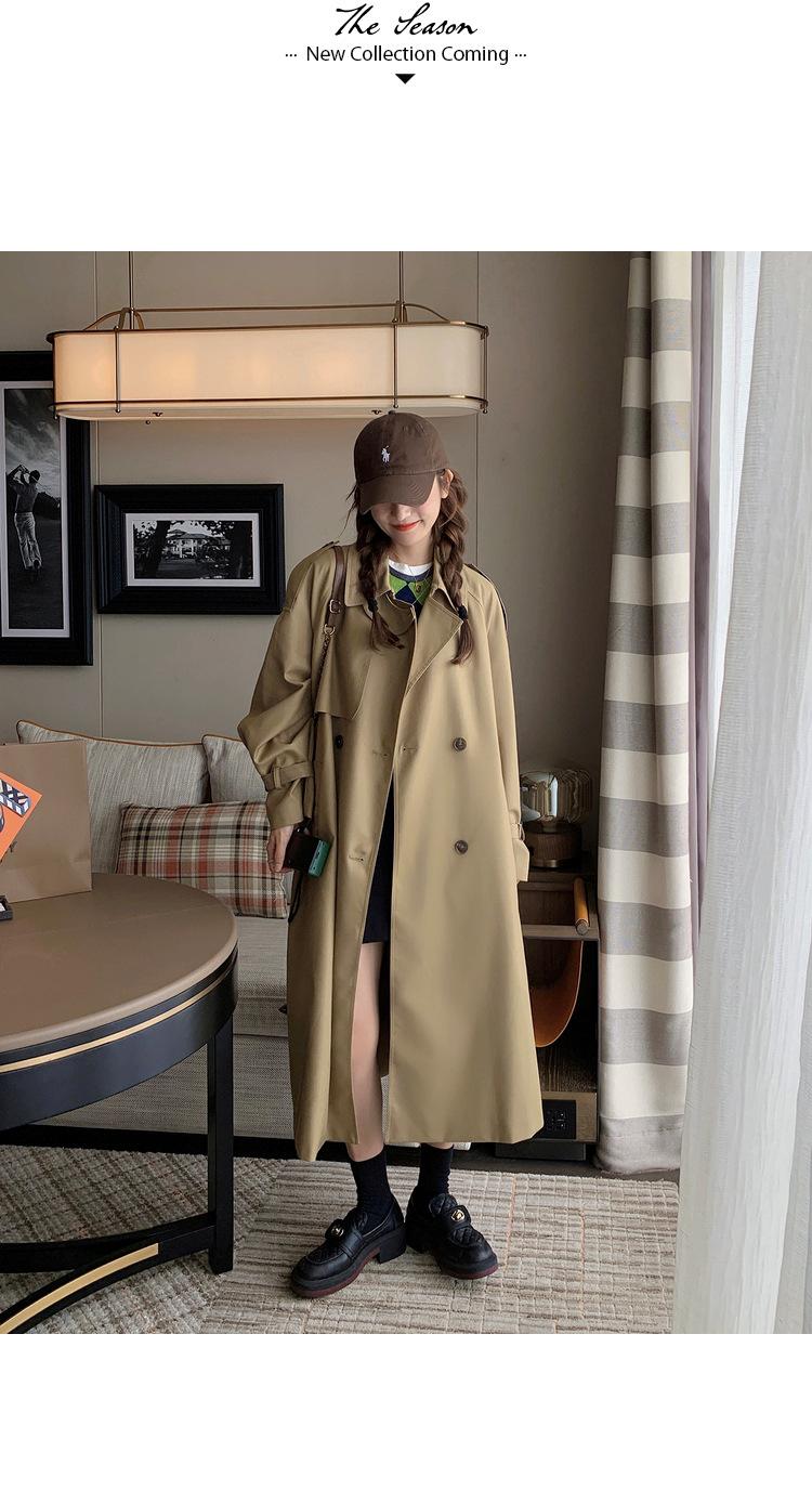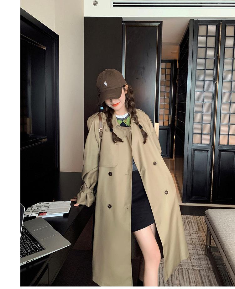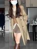 Rompevientos Caqui para Mujer Largo Medio Estilo Británico 2024 Primavera y Otoño Nuevo Estilo Coreano Suelto Elegante Chaqueta Rompevientos para Mujer