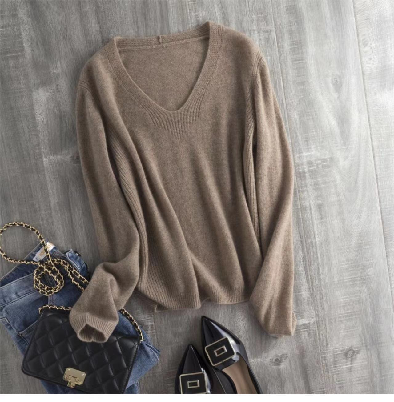 25 Otoño y Primavera Nuevo Cárdigan de Cuello en V Suéter de Fondo de Terciopelo para Mujer Estilo Occidental con 100 Jersey Tejido Top de Fondo