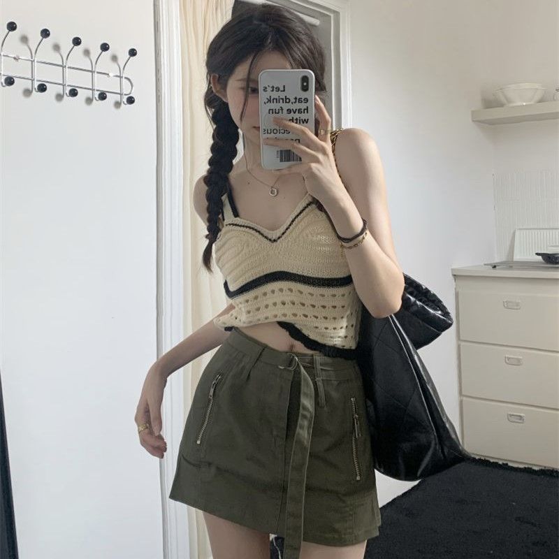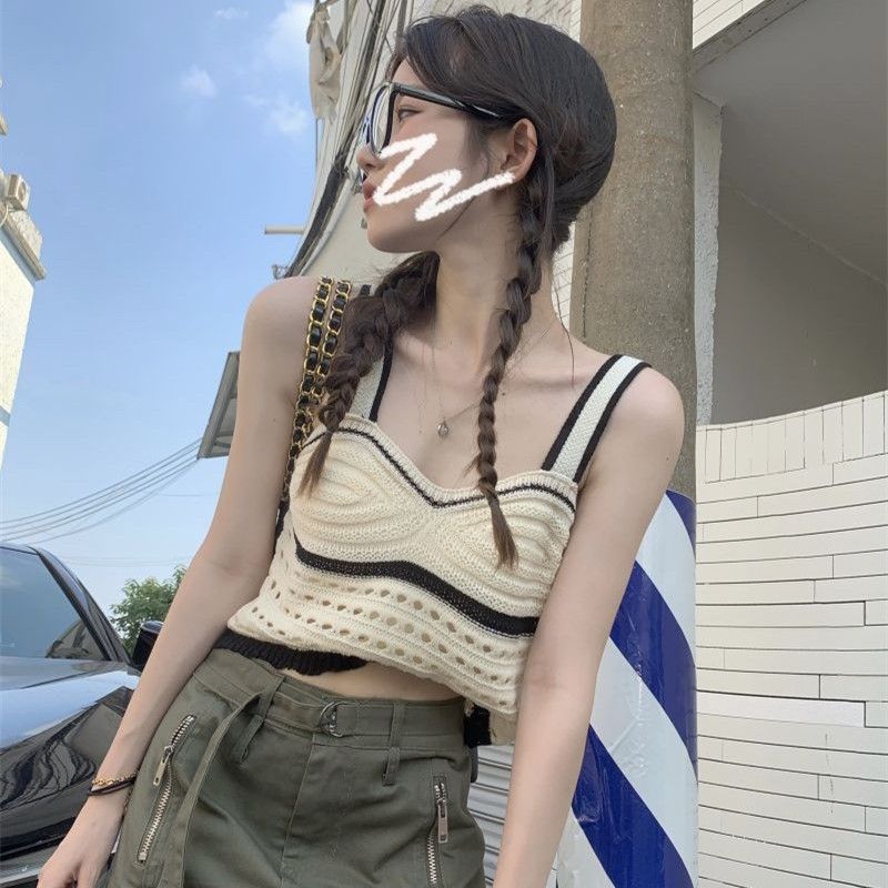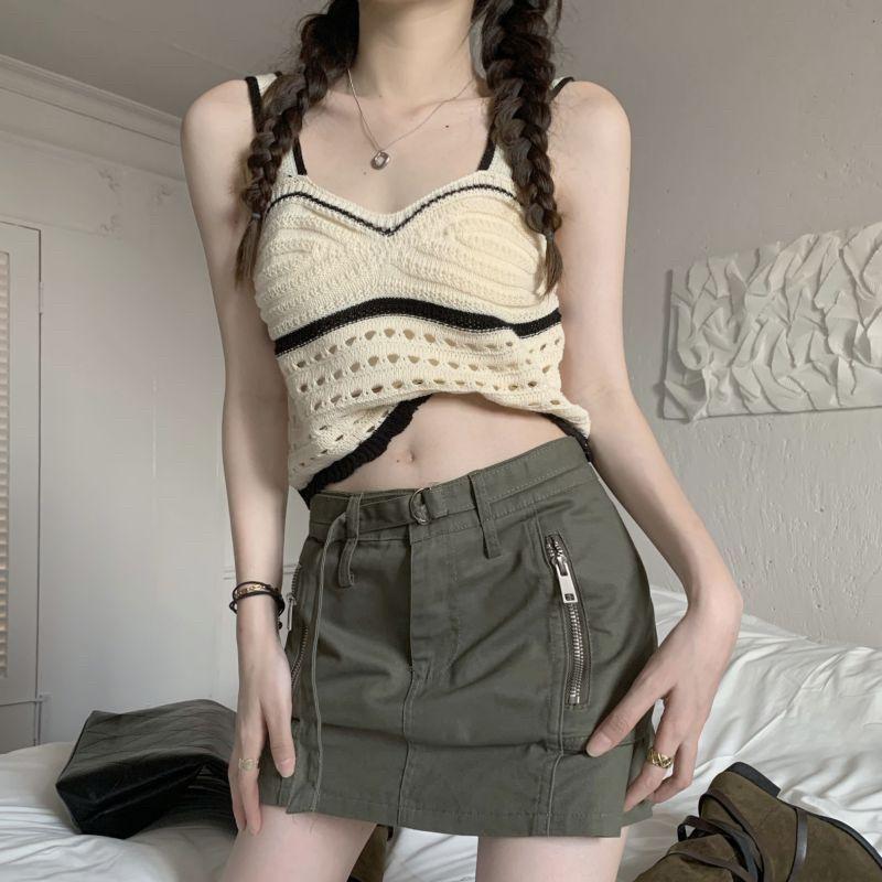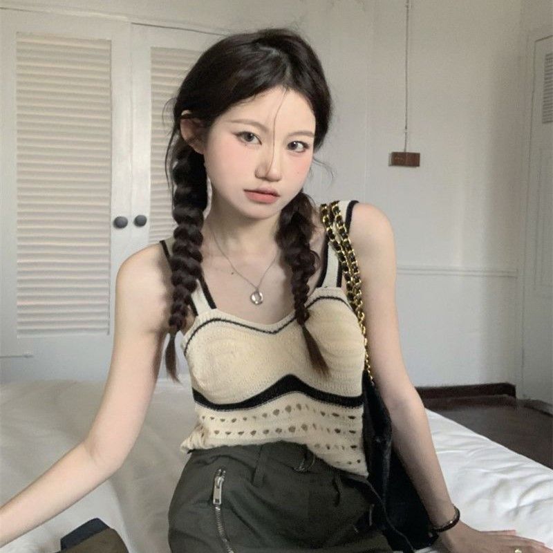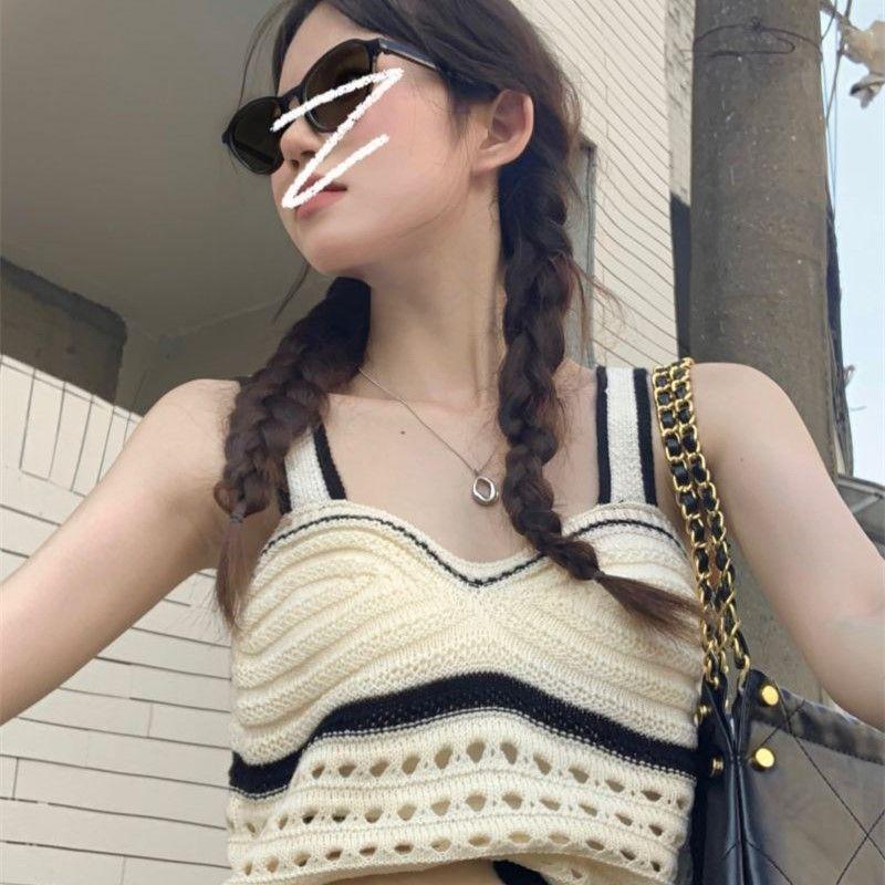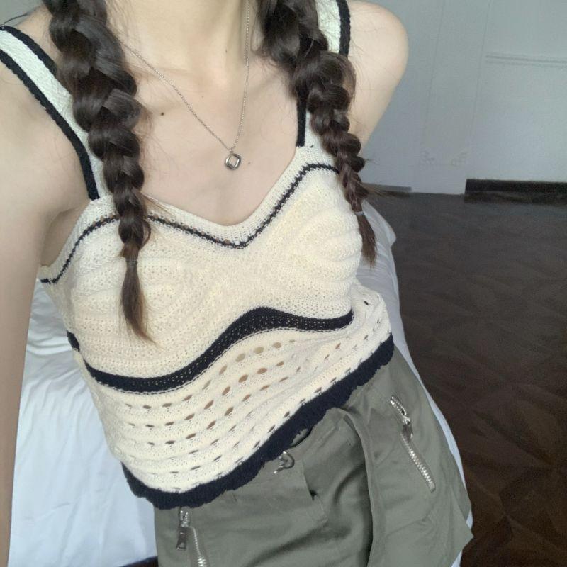 Camisola de punto corta con aberturas estilo Pure Desire, prenda de verano para mujer, top sin mangas elegante de estilo nicho