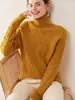 Camiseta interior de punto pesado 100% lana para mujer, cuello medio alto, otoño e invierno, nuevo suéter holgado grueso para mujer