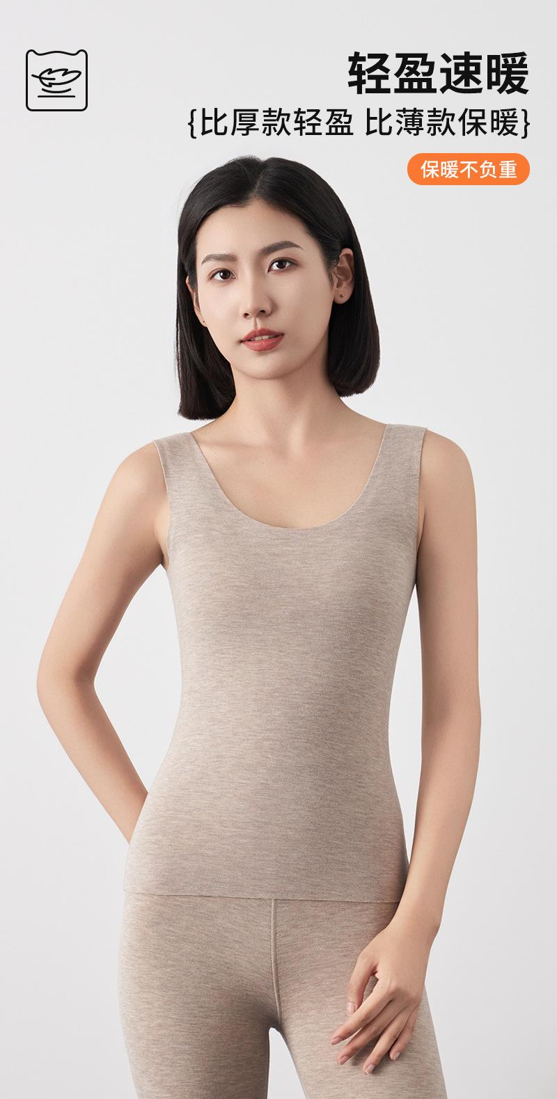 Chaleco para Mujer Otoño e Invierno Nuevo Chaleco Interior Térmico Autocalentable Ajustado para Mujer Cuello Redondo Seda Cálido