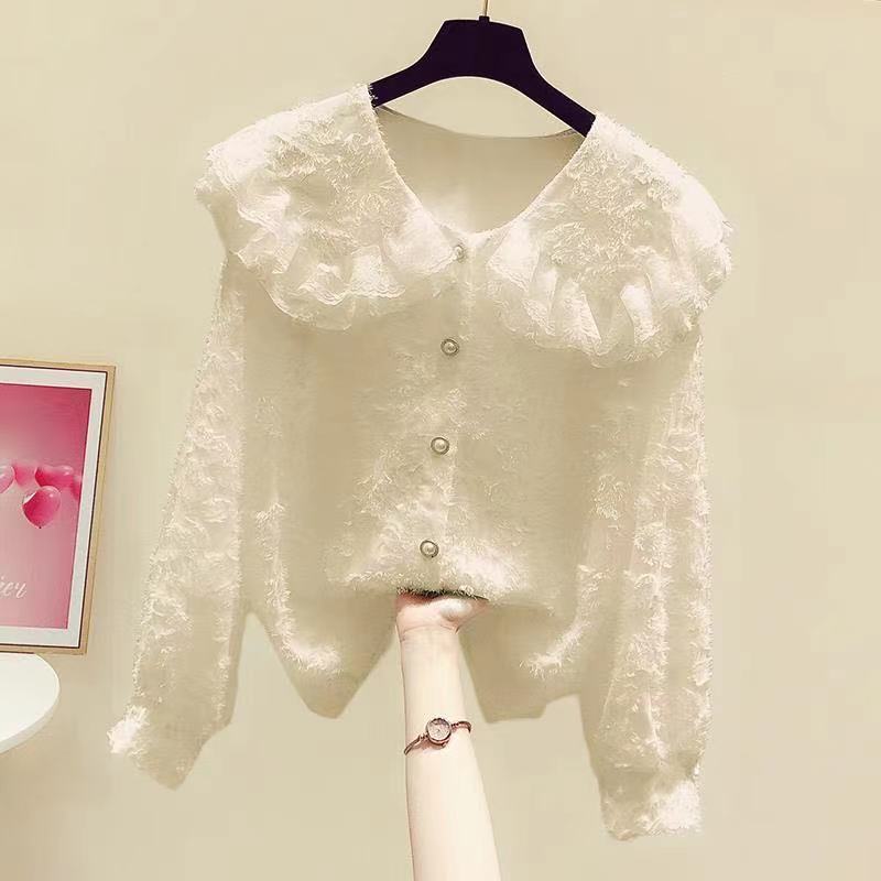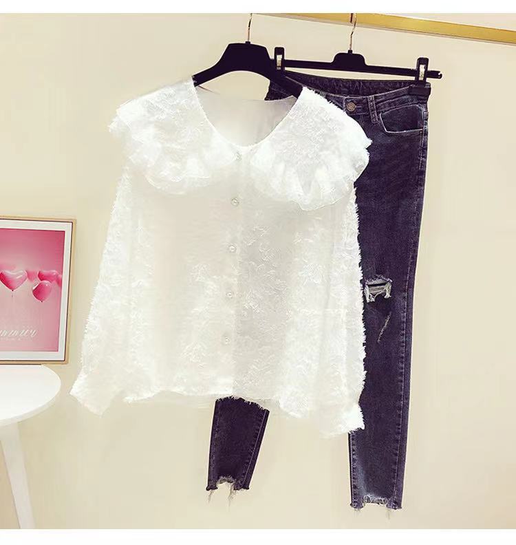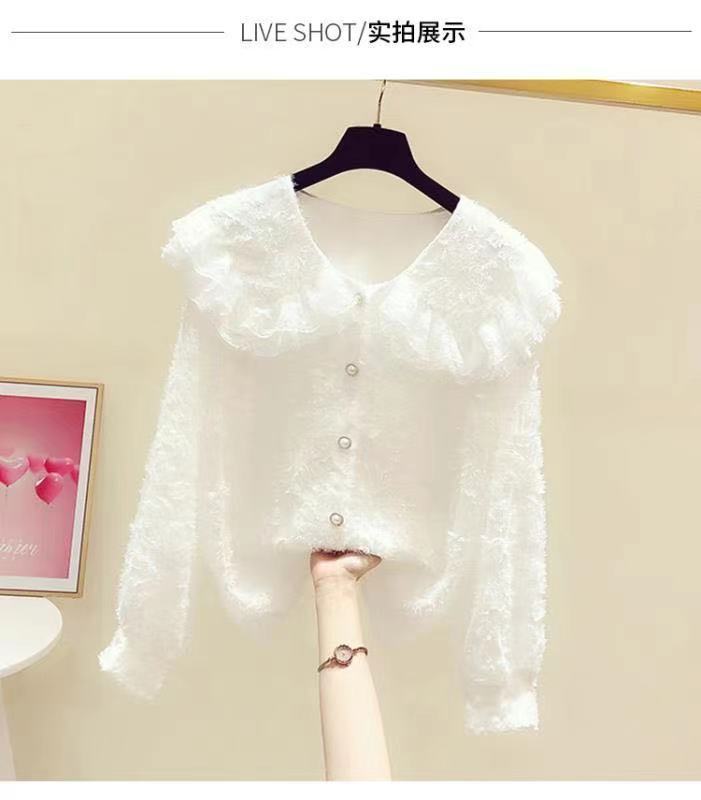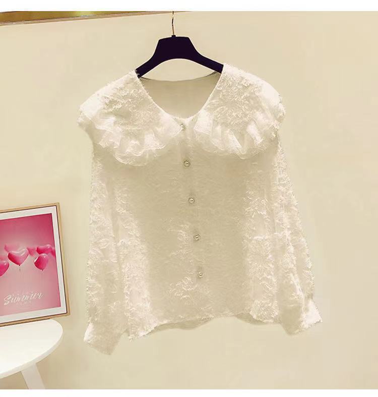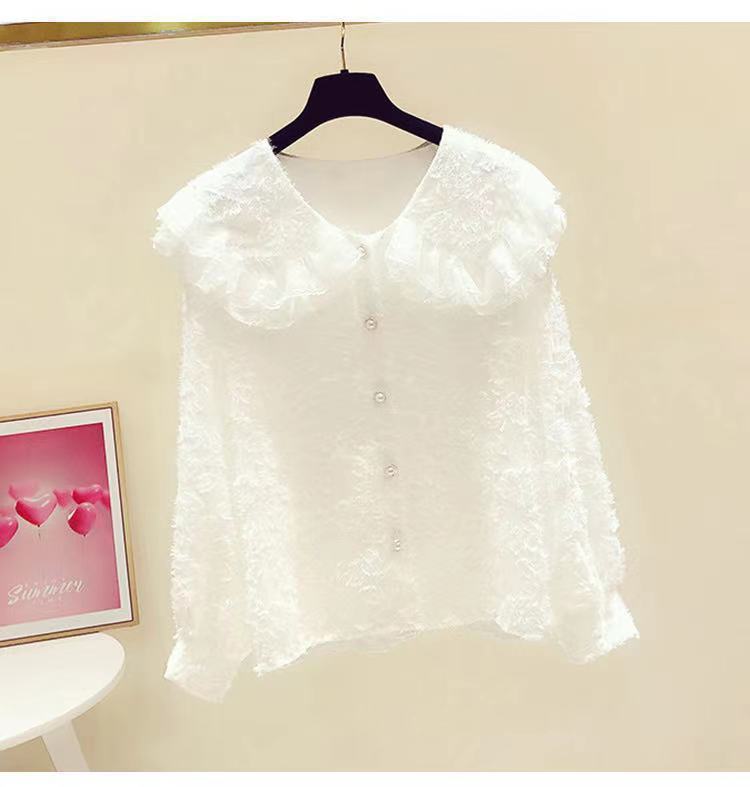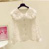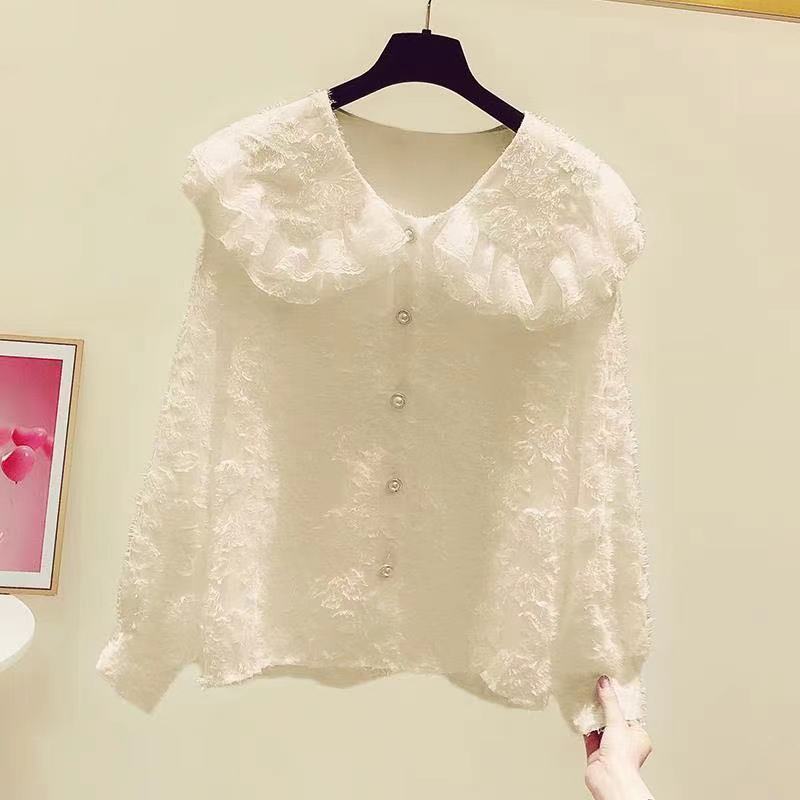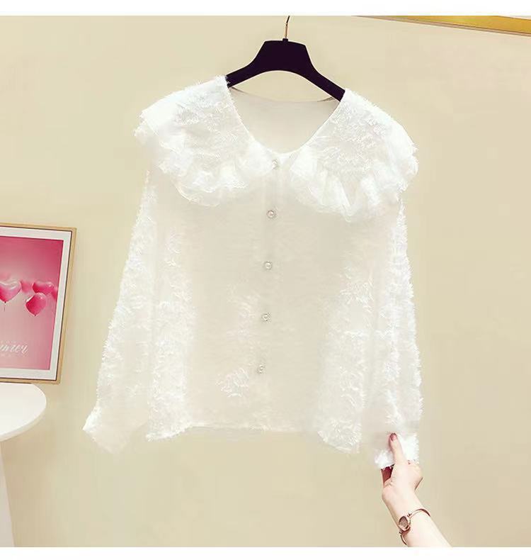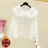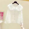 Camisa de solapa de encaje de talla grande de nueva moda coreana para otoño e invierno de 2021, camisa informal que combina con todo para mujer, a la moda