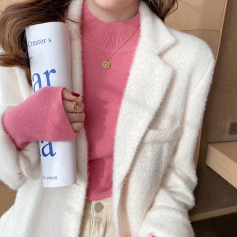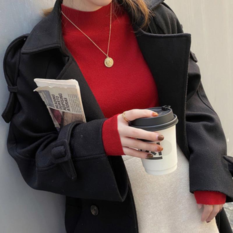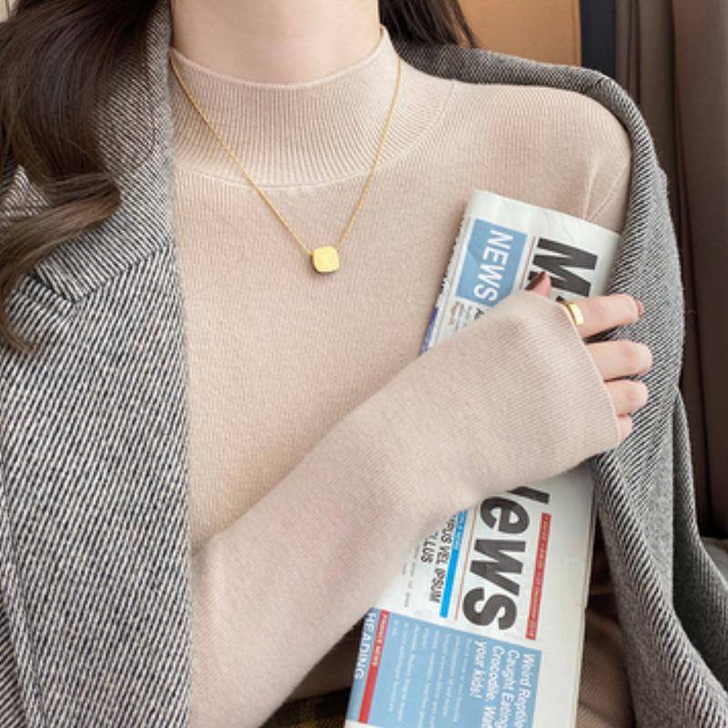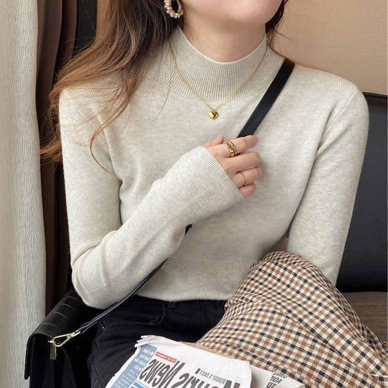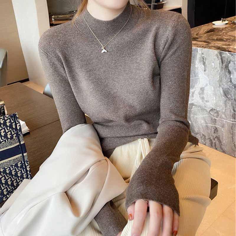 Suéter de lana de cuello medio alto para mujer, camisa básica de otoño e invierno, estilo occidental, combinable con todo, con mangas largas y corte entallado.