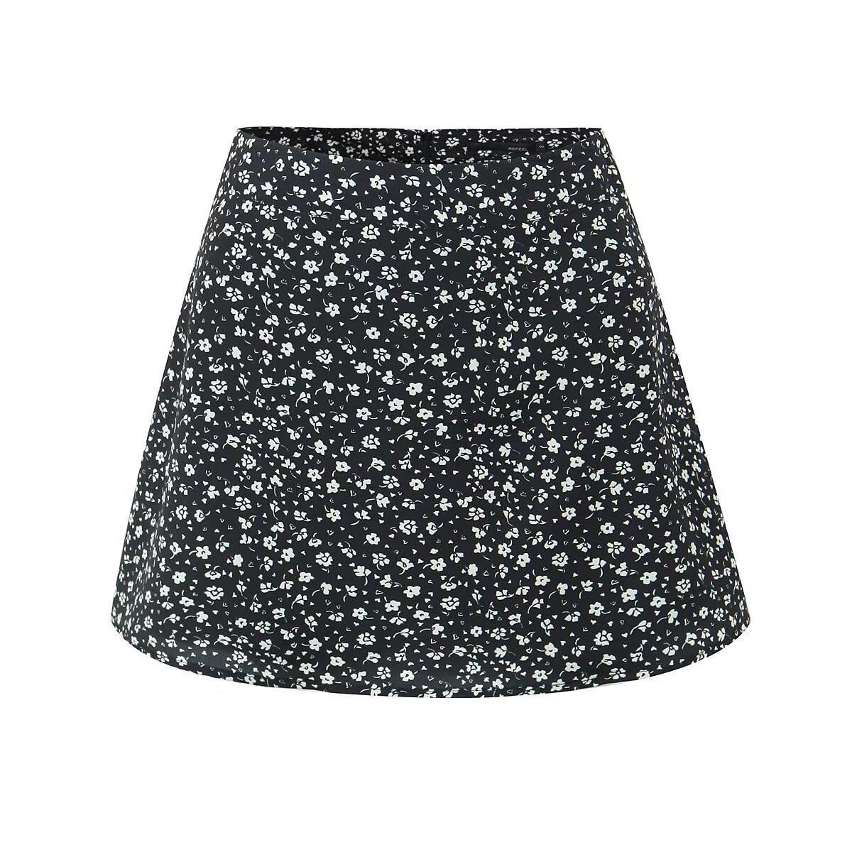 Falda corta de verano con estampado floral de estilo europeo y americano para mujer S12891