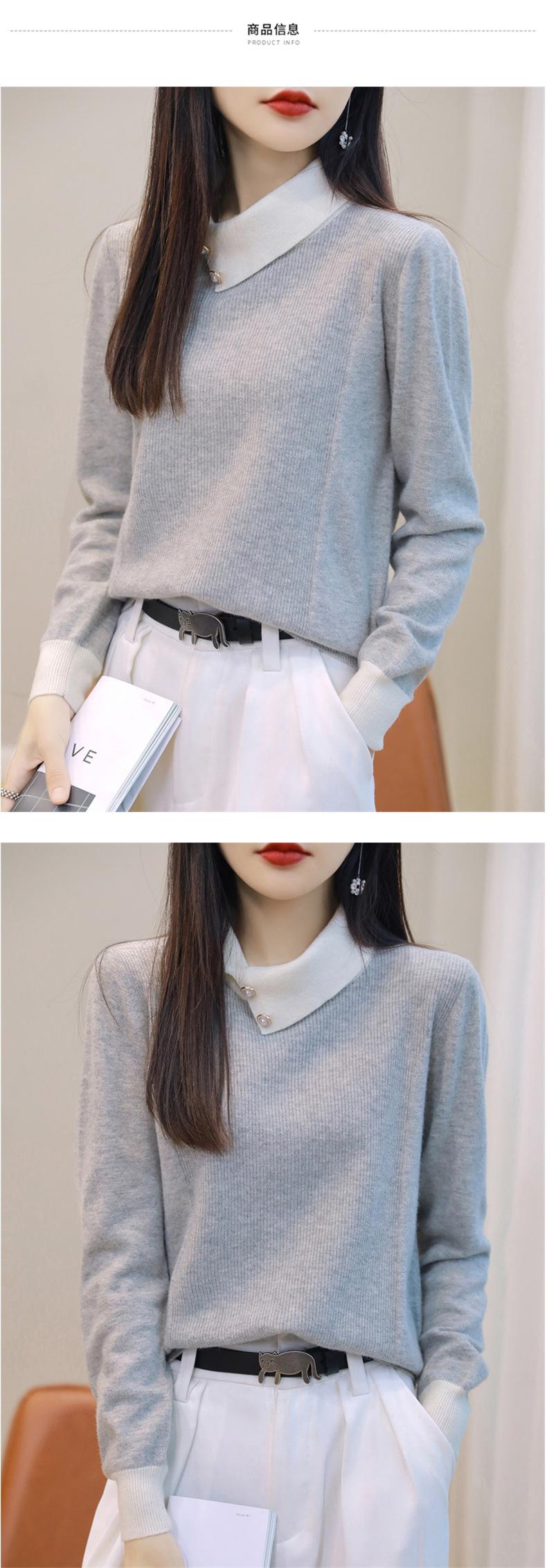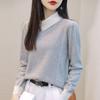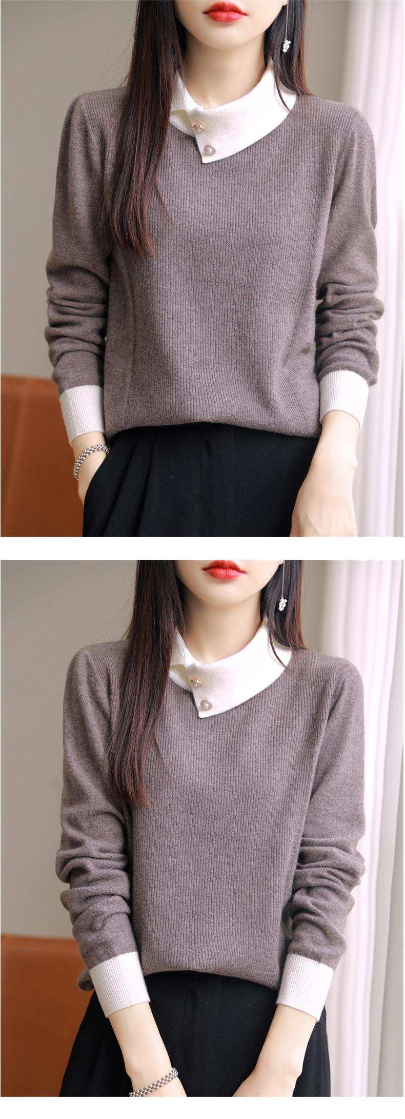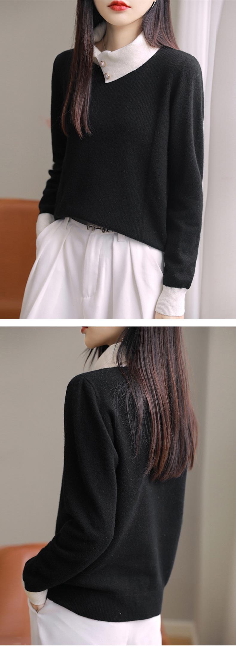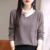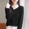 Suéter de solapa de otoño estilo francés para mujer, jersey de manga larga, prenda exterior, camiseta interior de lana