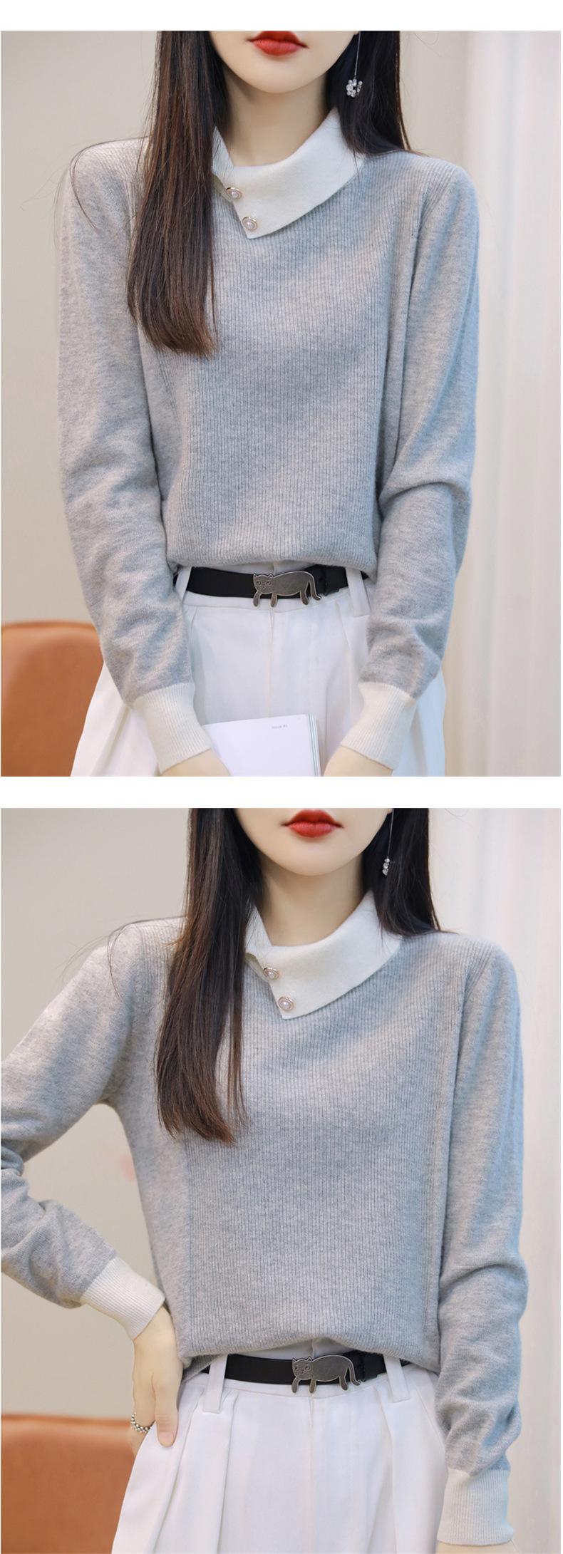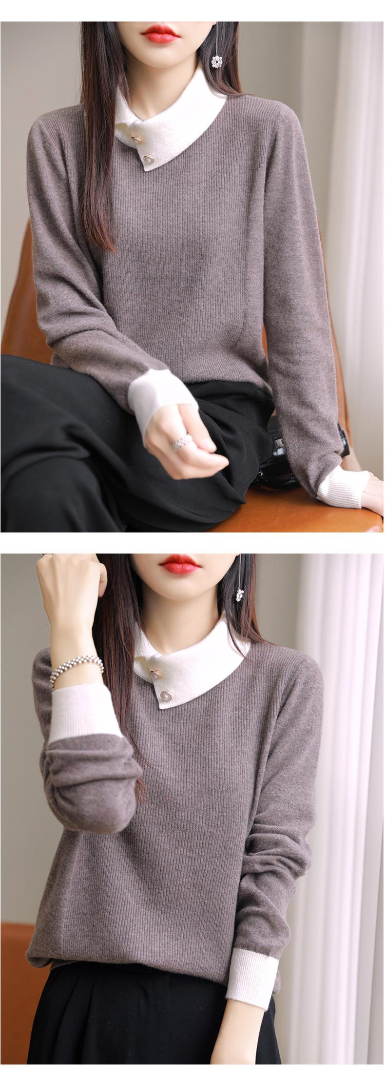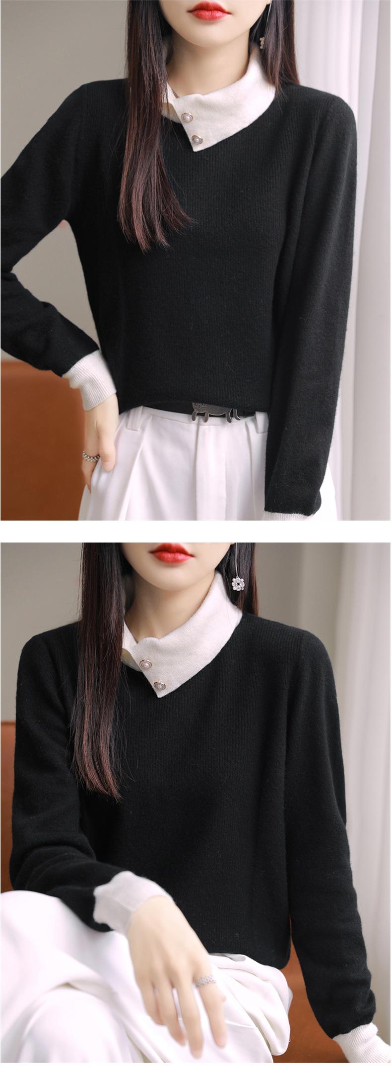 Suéter de solapa de otoño estilo francés para mujer, jersey de manga larga, prenda exterior, camiseta interior de lana